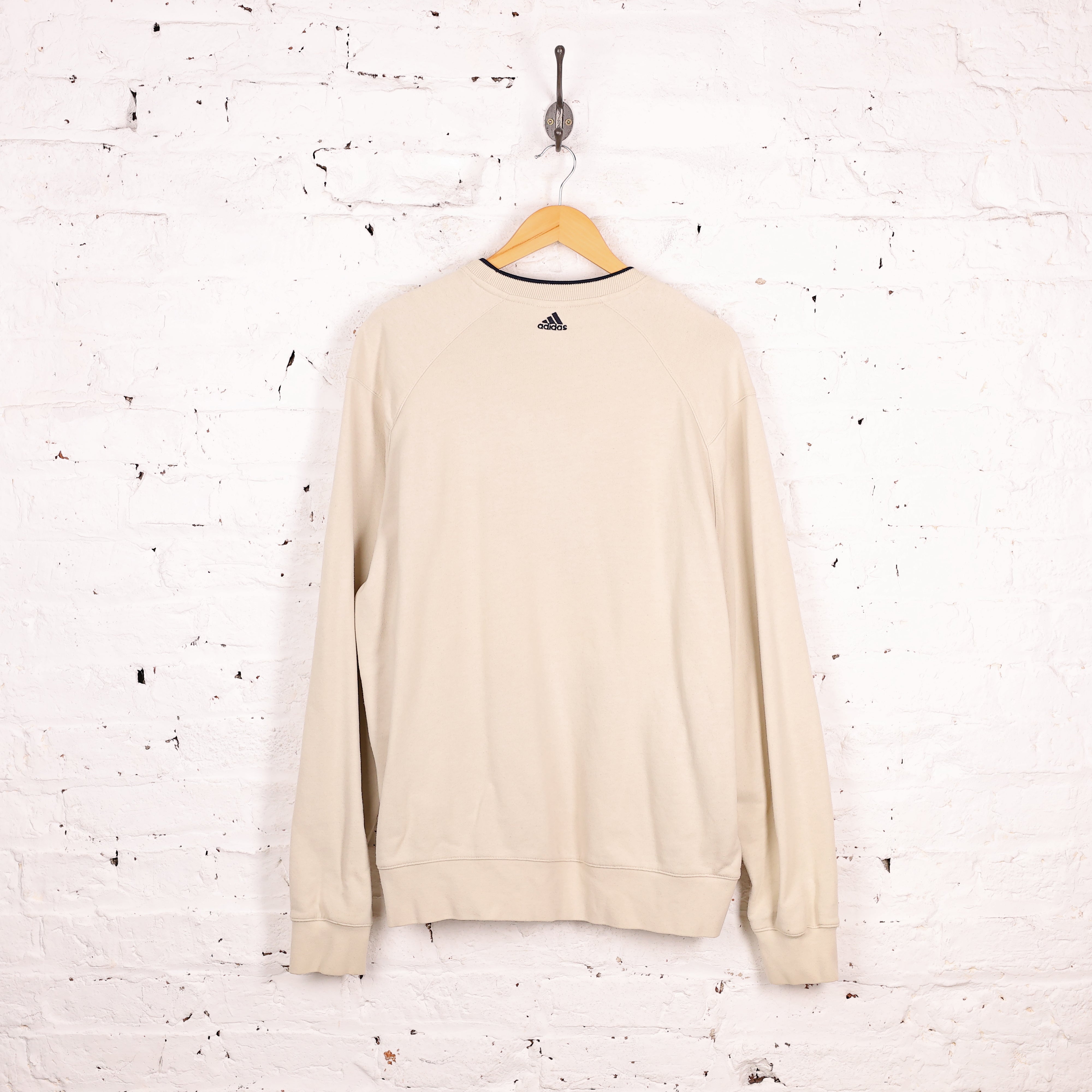 Good condition. 90s Adidas sweatshirt in cream with stitched logo on the chest.
