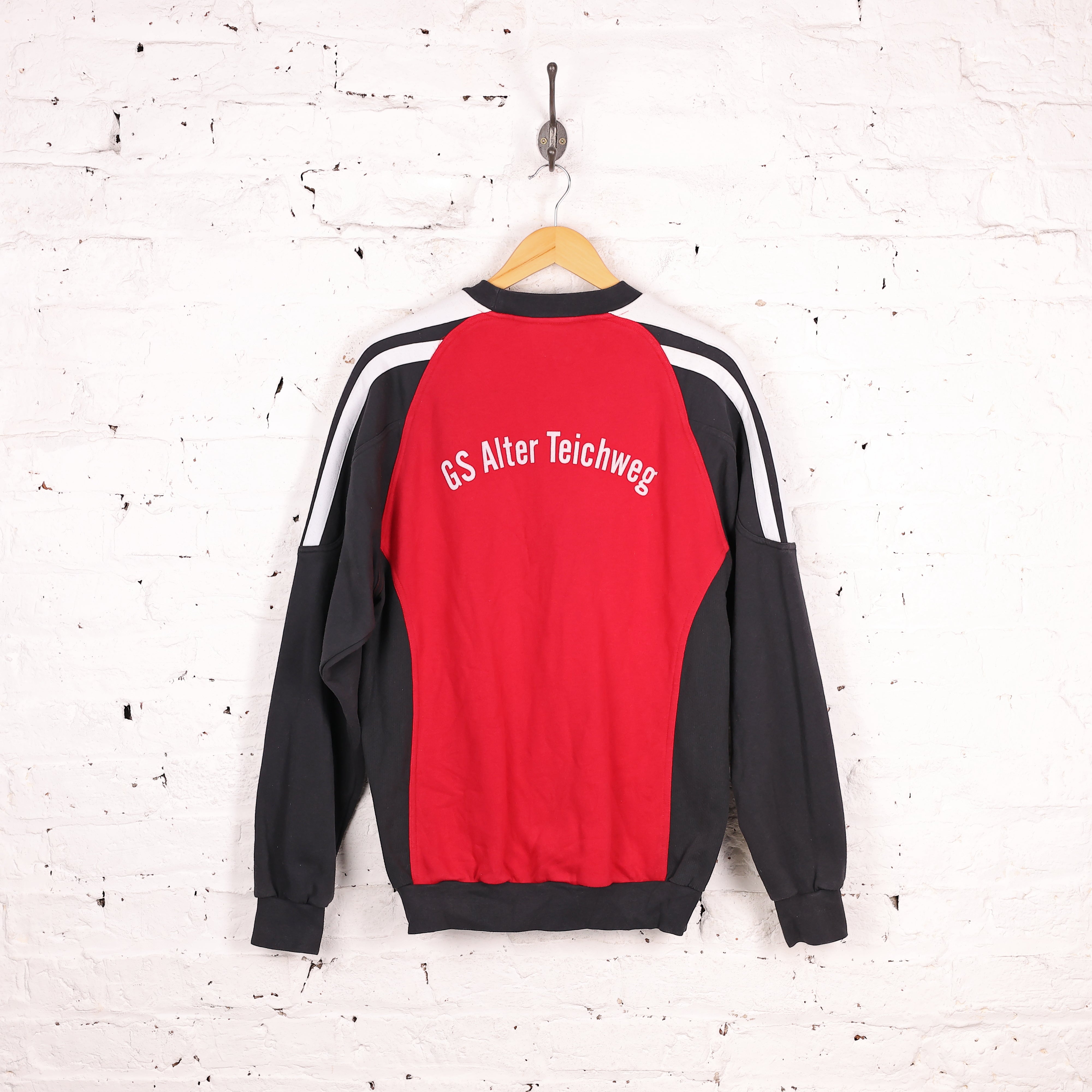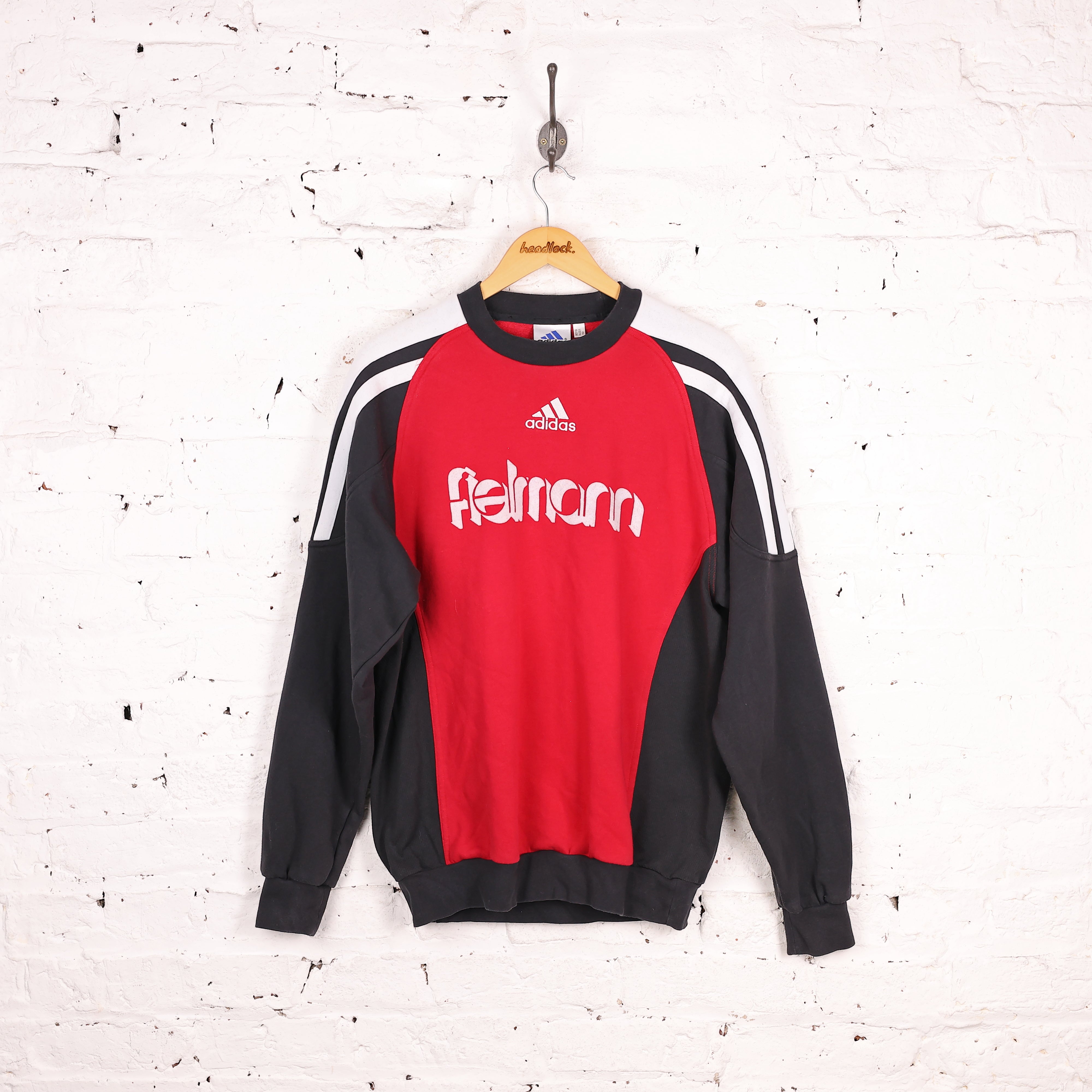 Good condition. 90s Adidas sweatshirt in red with stitched logo on the chest.