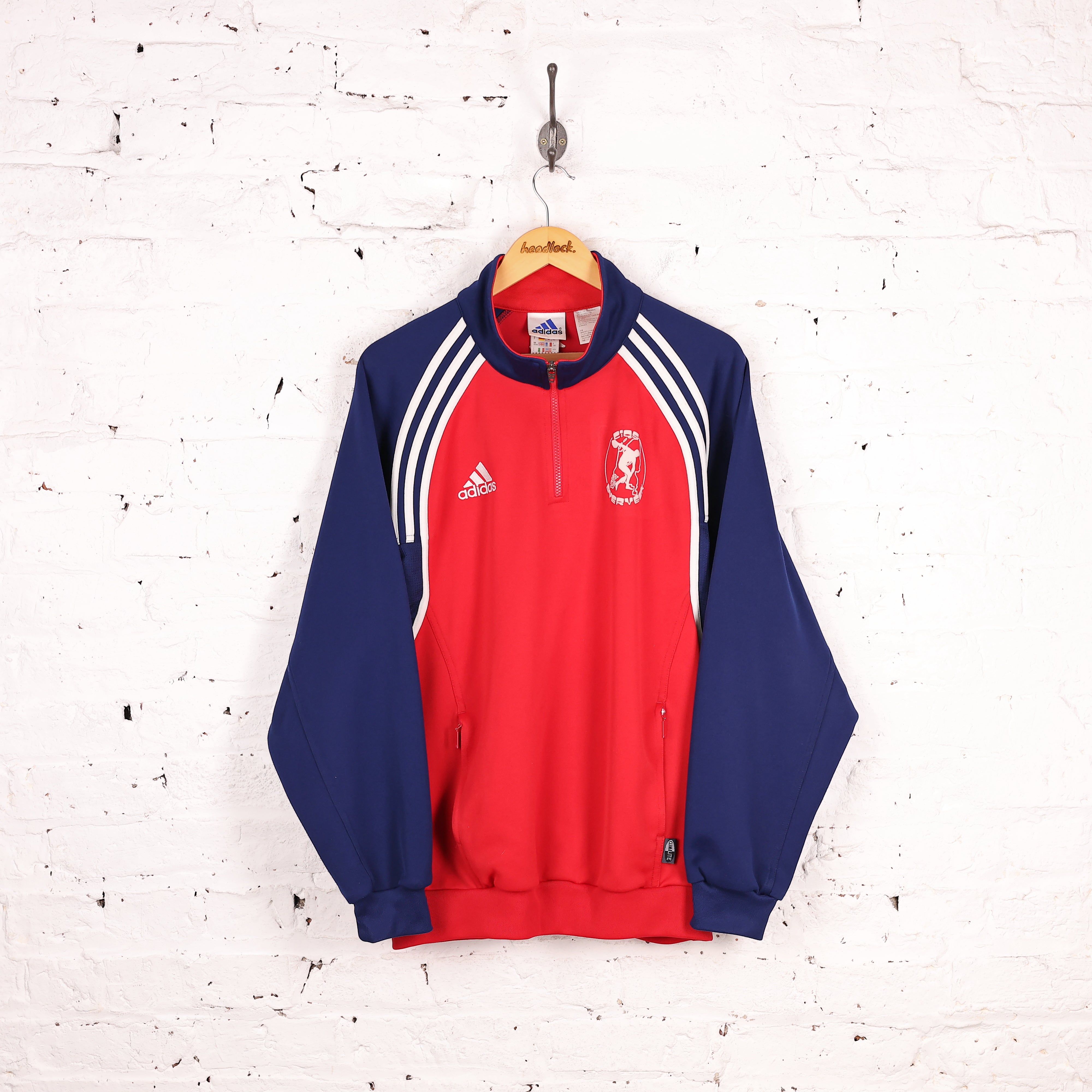 90s Adidas Template 1/4 Zip Tracksuit Top Sweatshirt - Red - L
