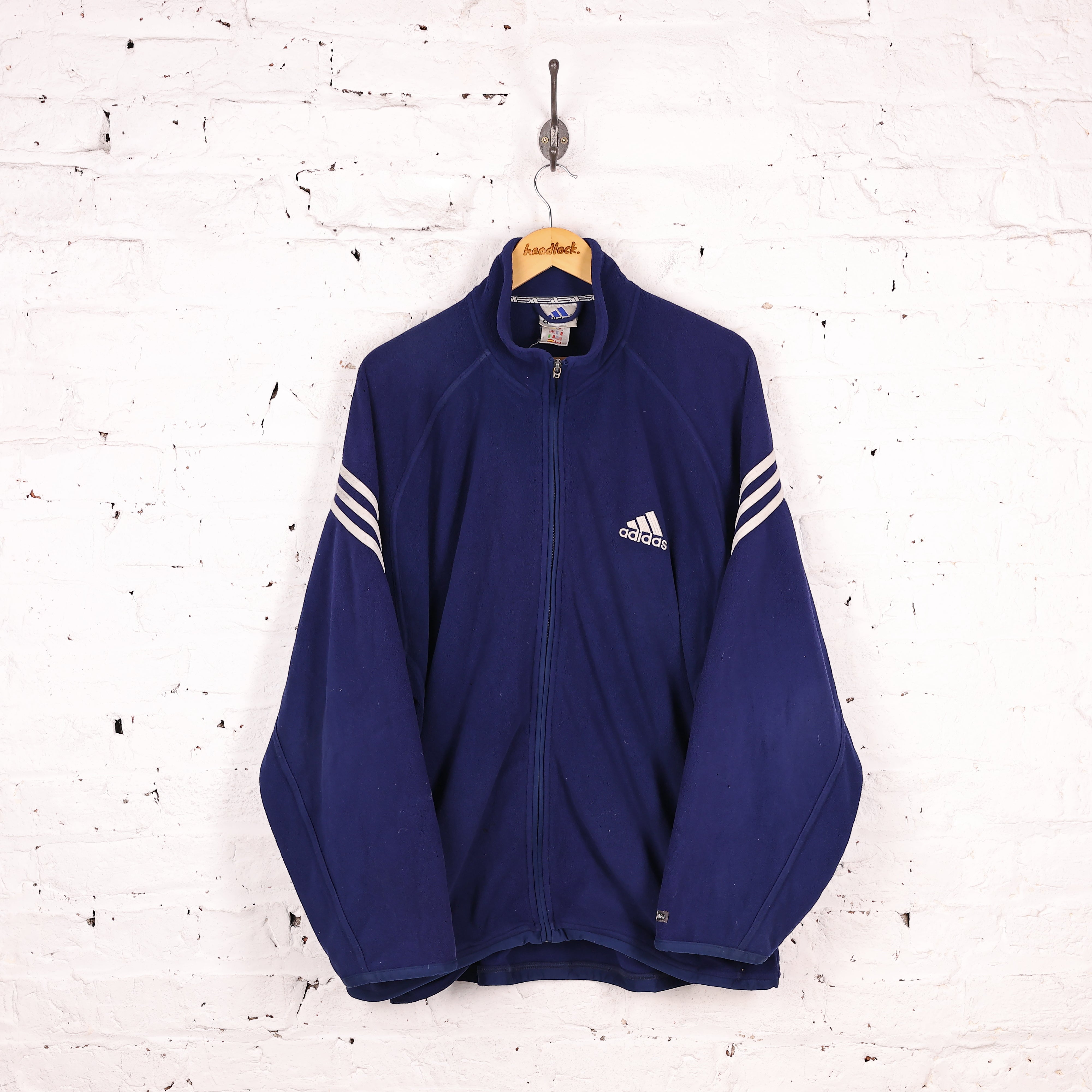 90s Adidas Full Zip Fleece Tracksuit Top - Blue - L