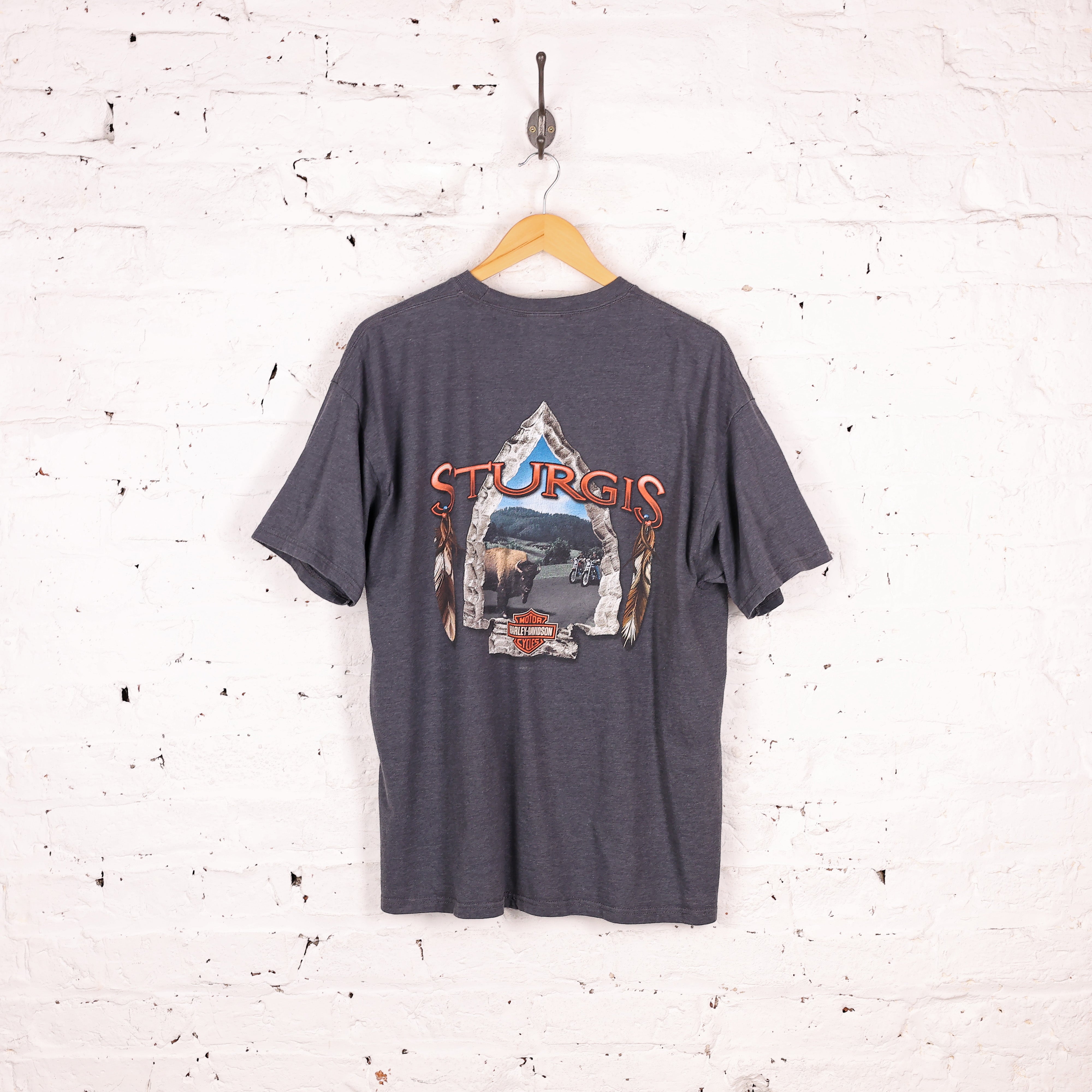 Good condition. Harley Davidson, Sturgis, South Dakota T shirt in grey.