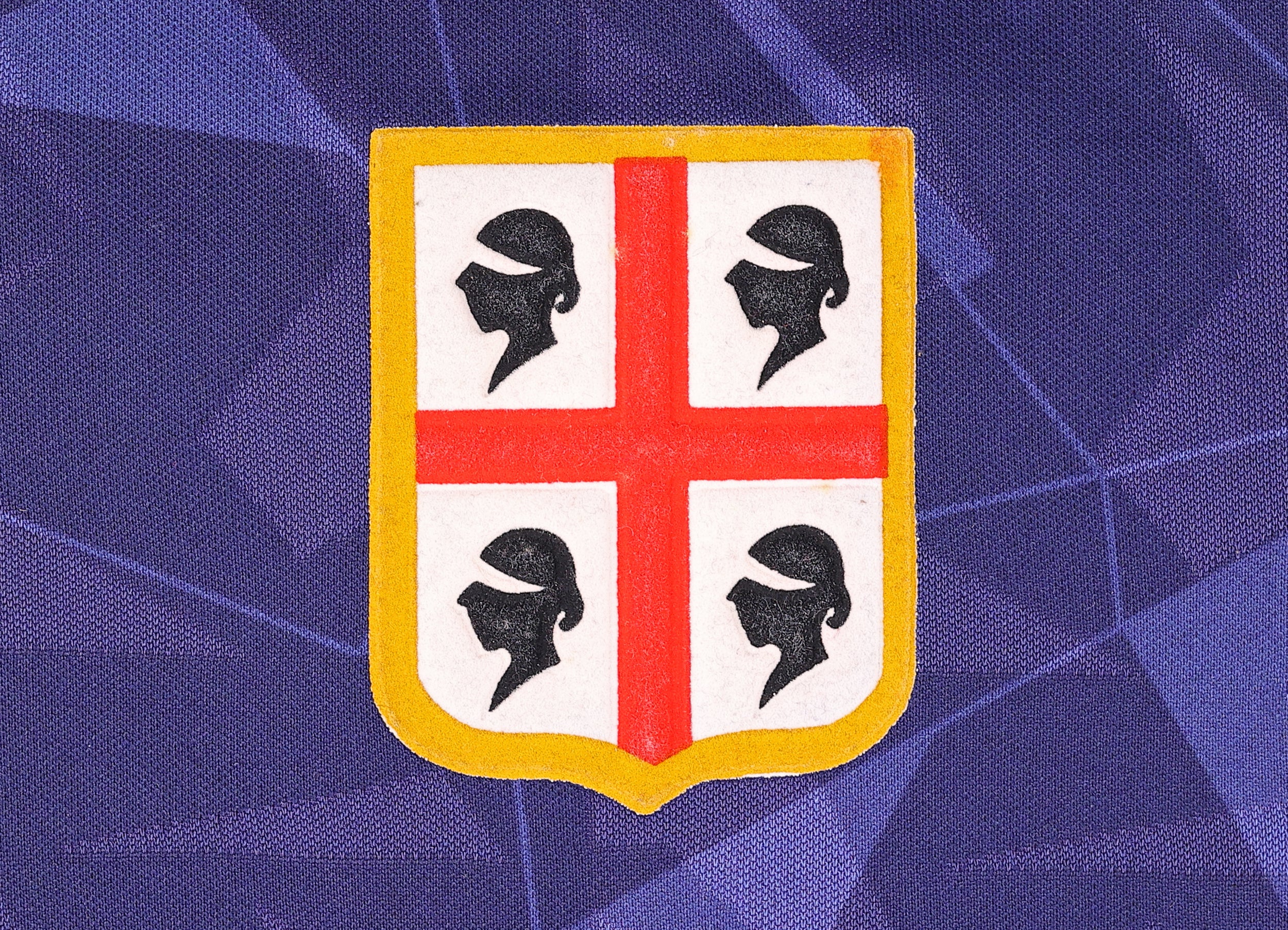 Excellent condition. 1990 Cagliari home shirt made by Umbro with button down collar and felt feel badges.