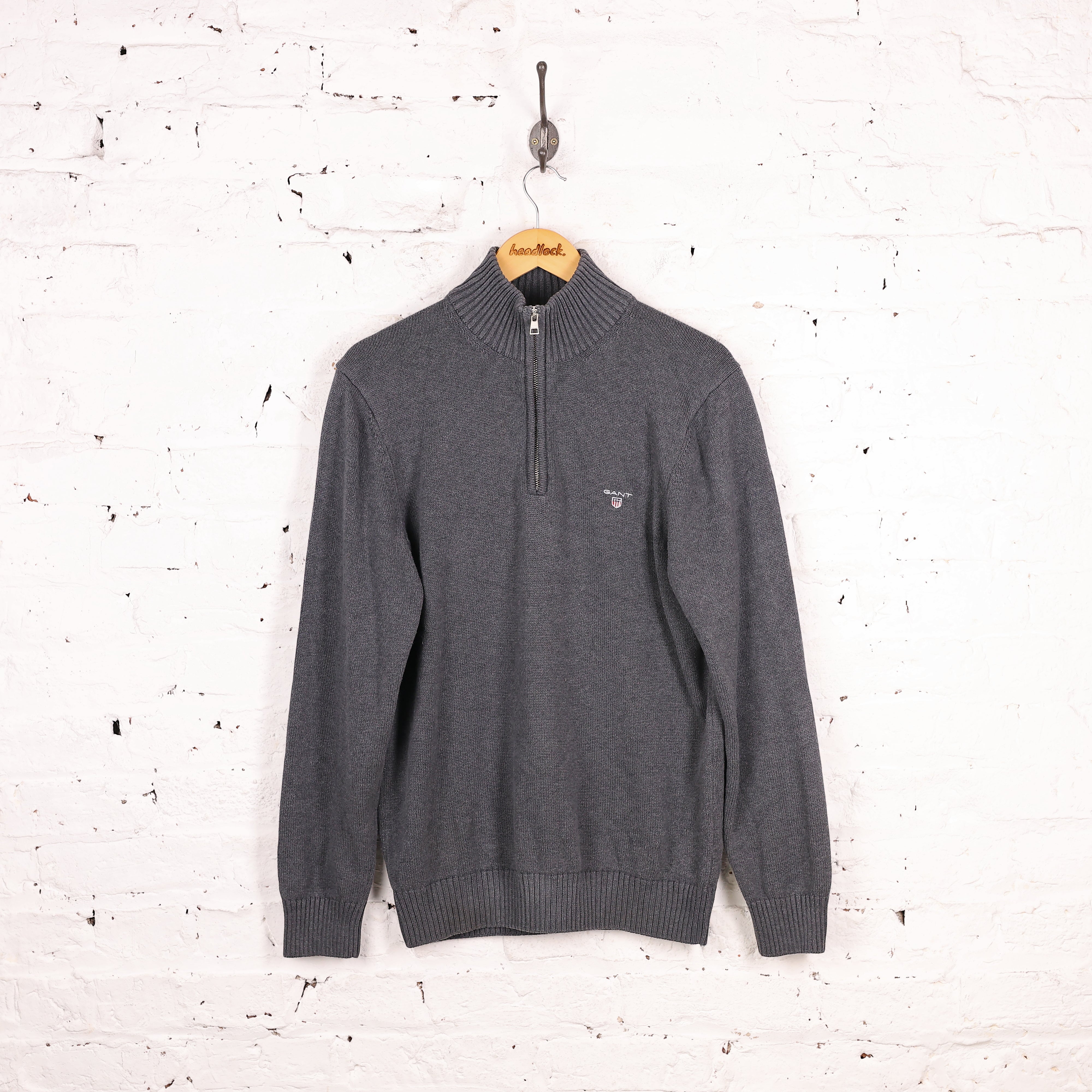 Good condition. Gant 1/4 zip knit jumper in grey with stitched logo on the chest.