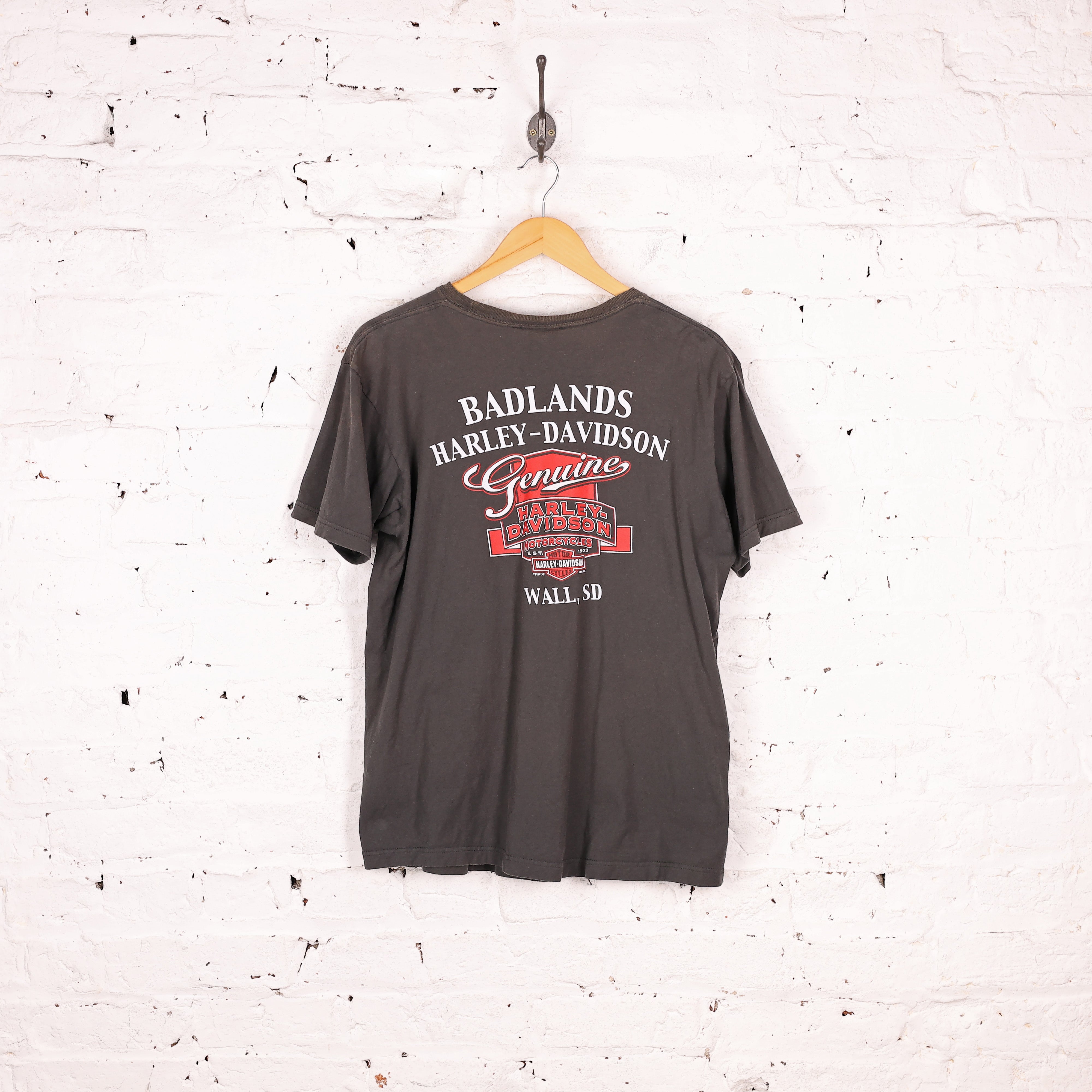 Good condition. Harley Davidson, Wall, South Dakota T shirt in grey.