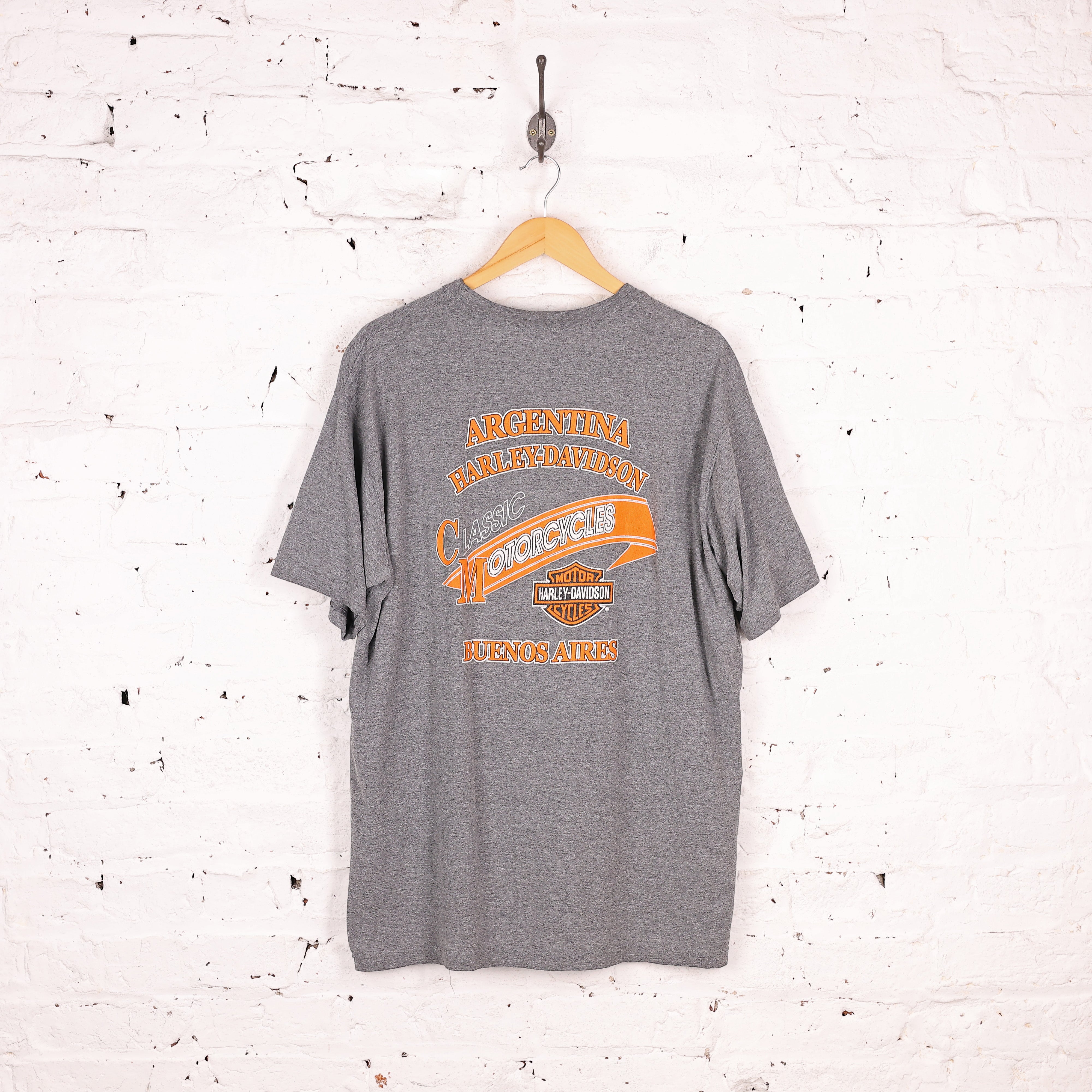 Good condition. Harley Davidson, Buenos Aires T shirt in grey with logo on the chest.