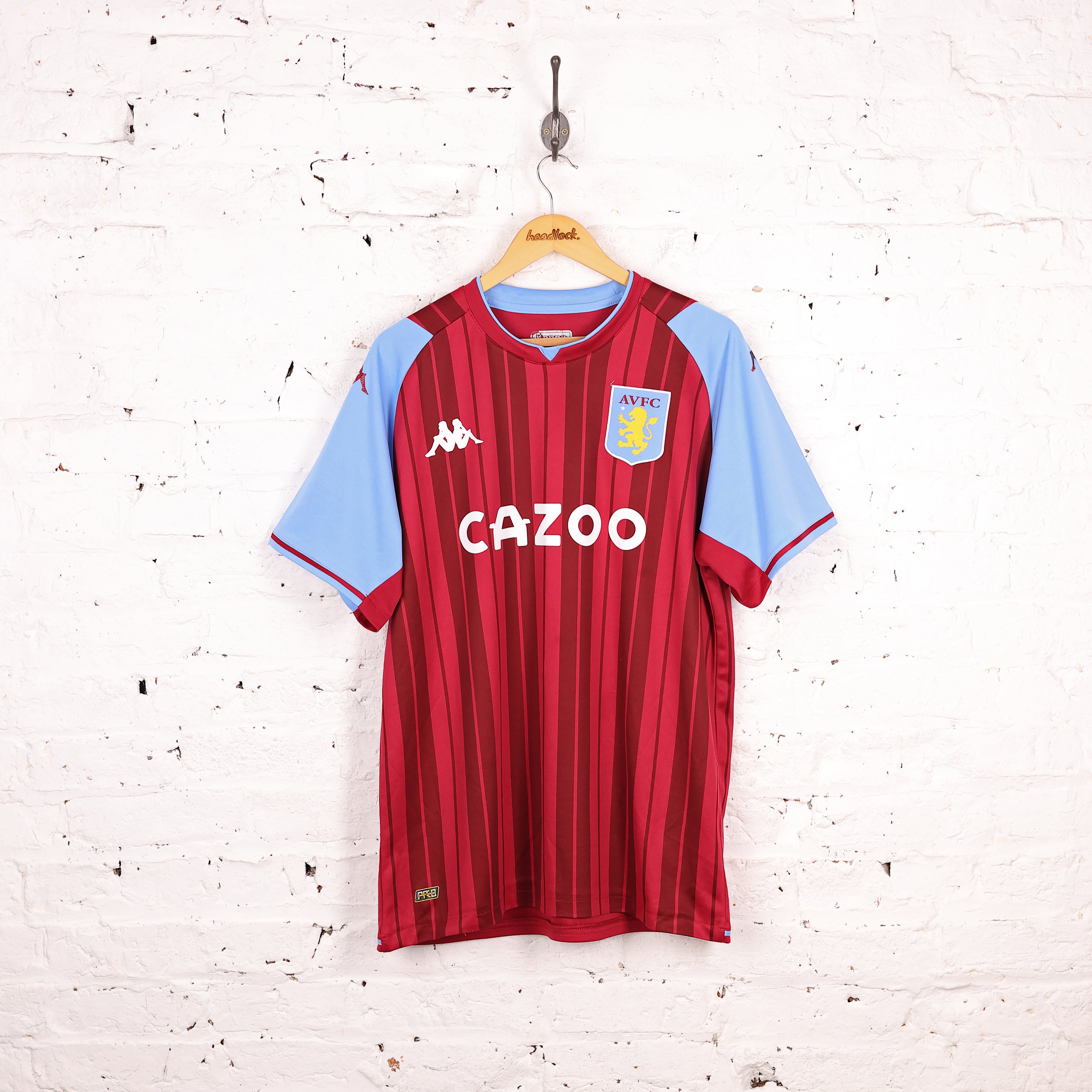 Good condition. Aston Villa home shirt from 2021 Premier League season. Made by Kappa with stitched badge on the chest and 'CAZOO' sponsor.
