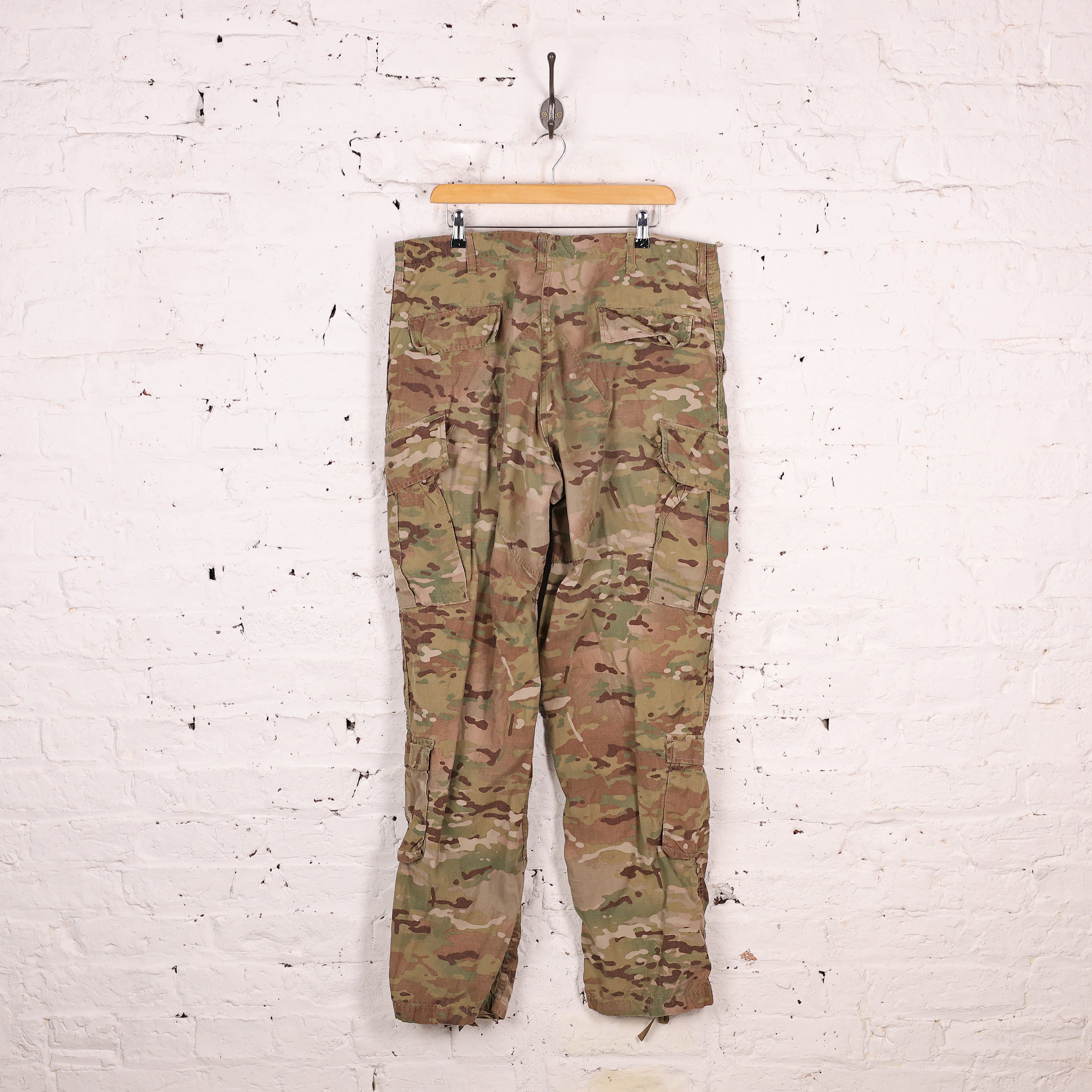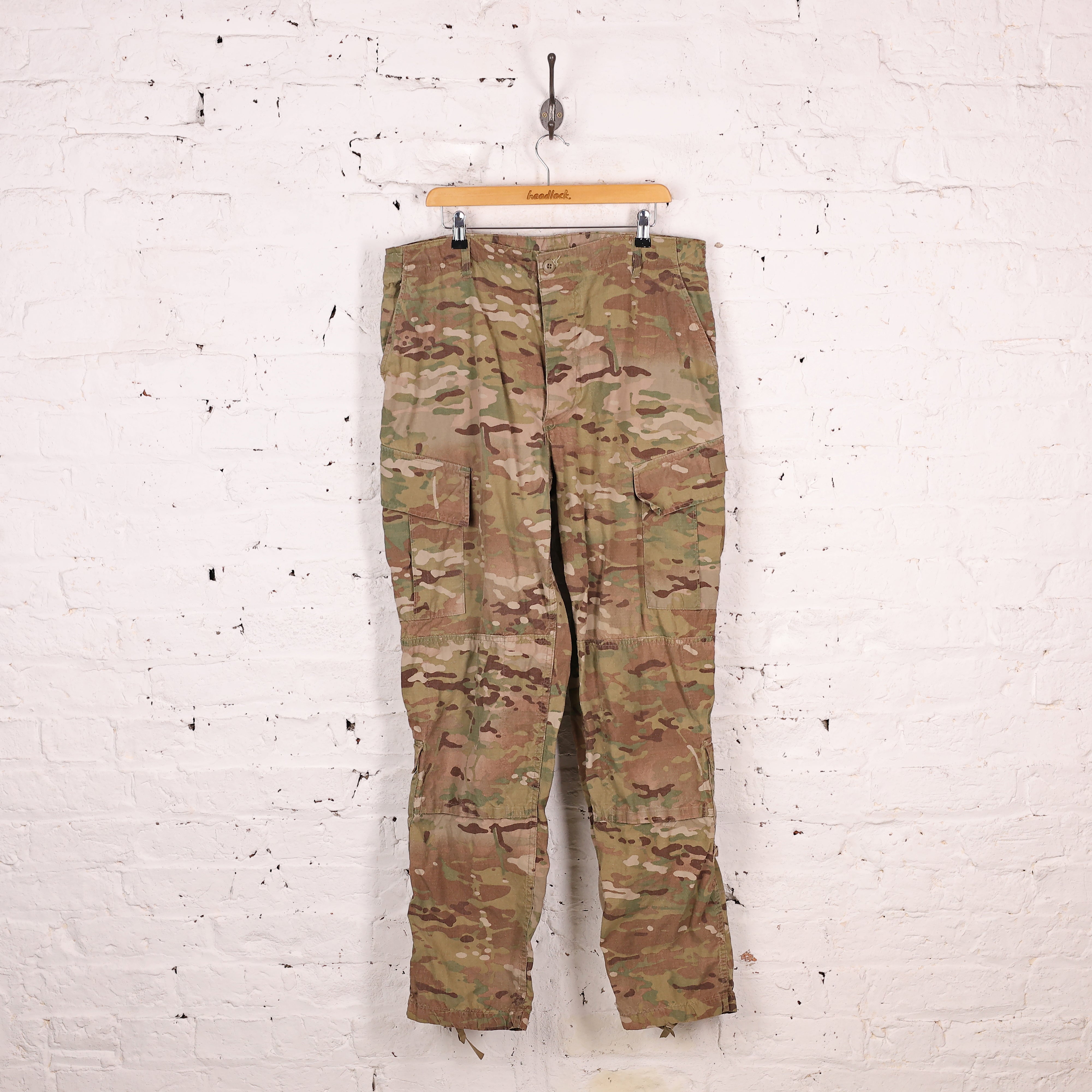 Excellent condition. Military combat pants in green with button flies, knee pockets and tie ankles.