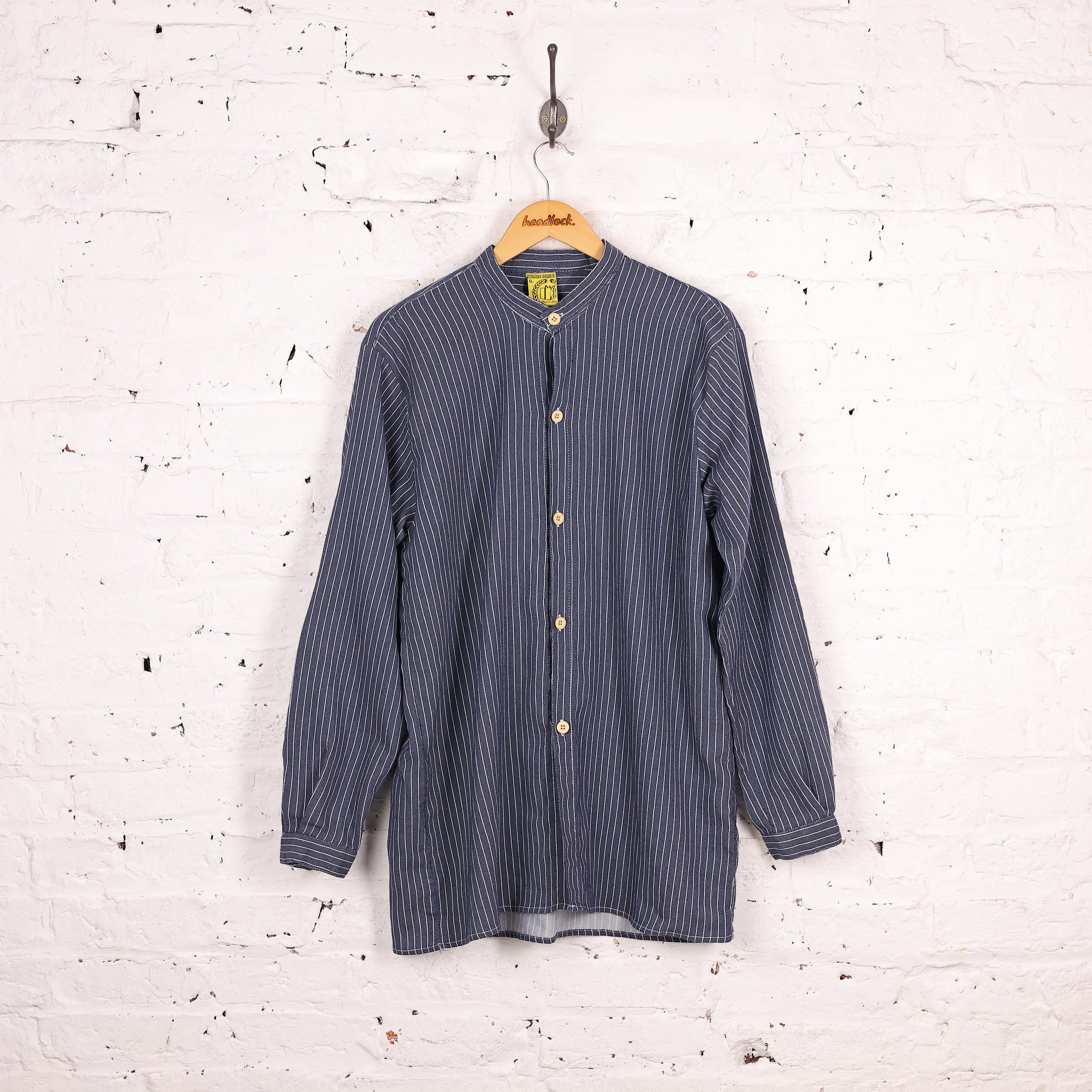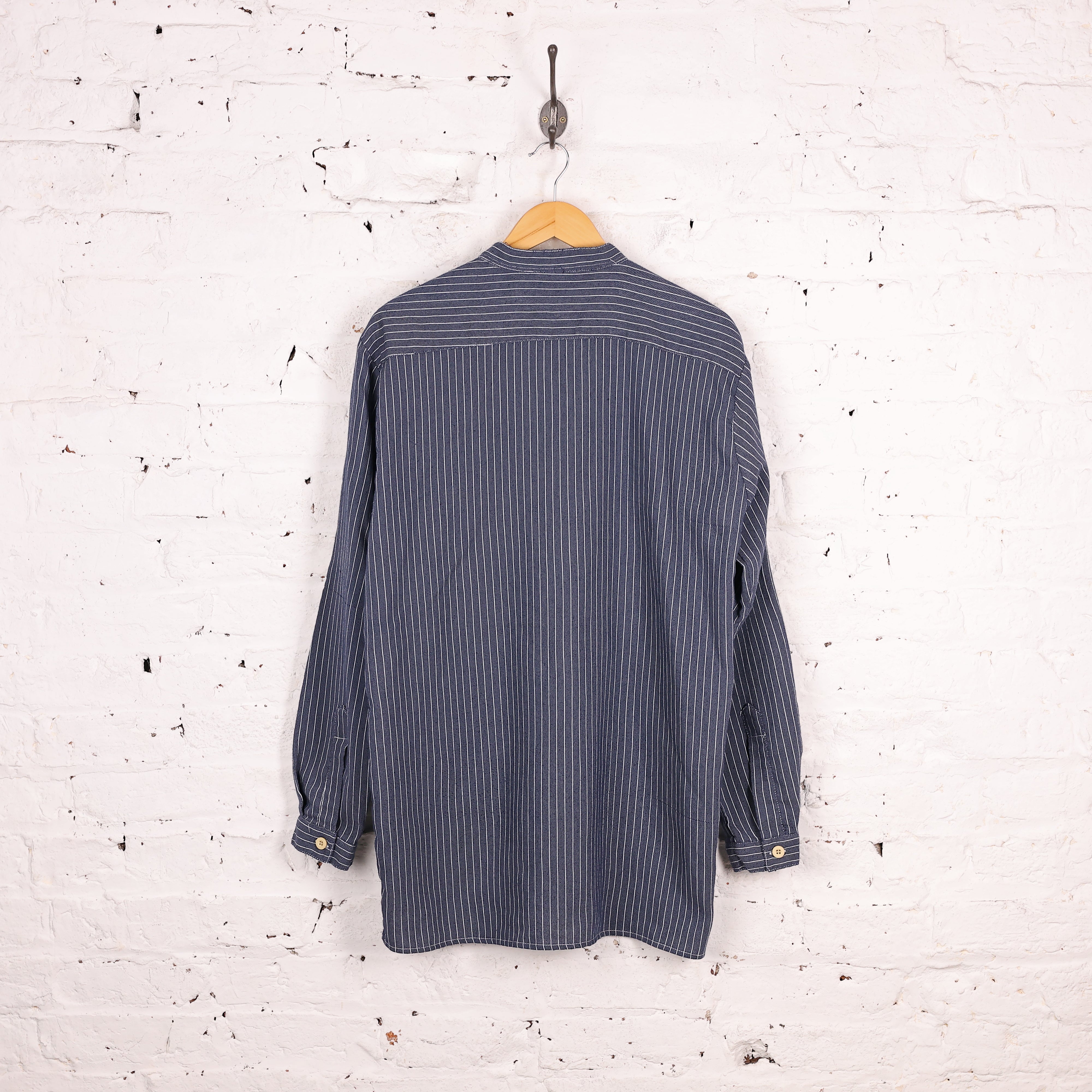 Striped Grandad Collar Fisherman Worker Shirt - Blue - XL