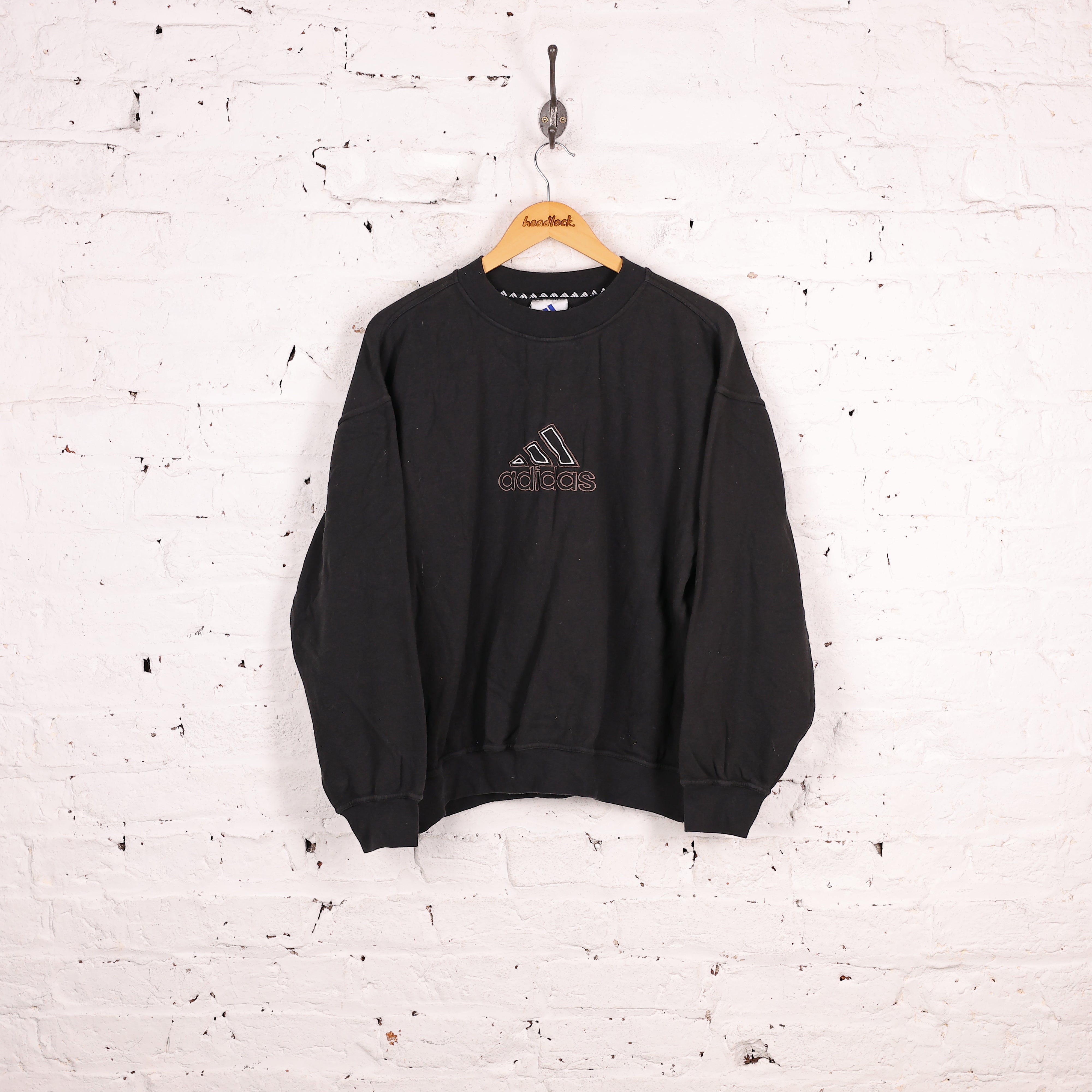 Good condition, Adidas 90s sweatshirt in black with stitched logo on the chest.