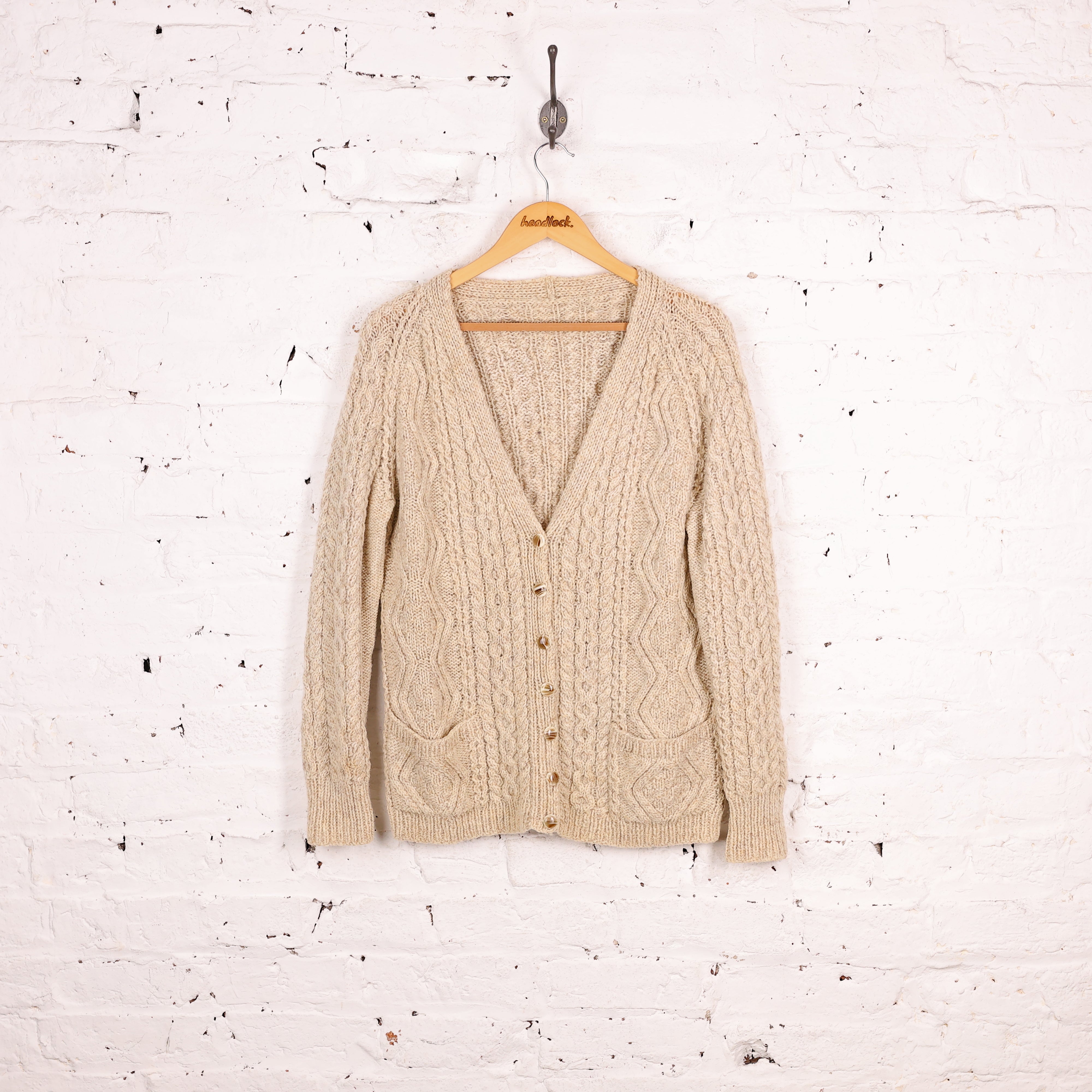 Women's Aran Cable Knit Cardigan - Beige - Women's M