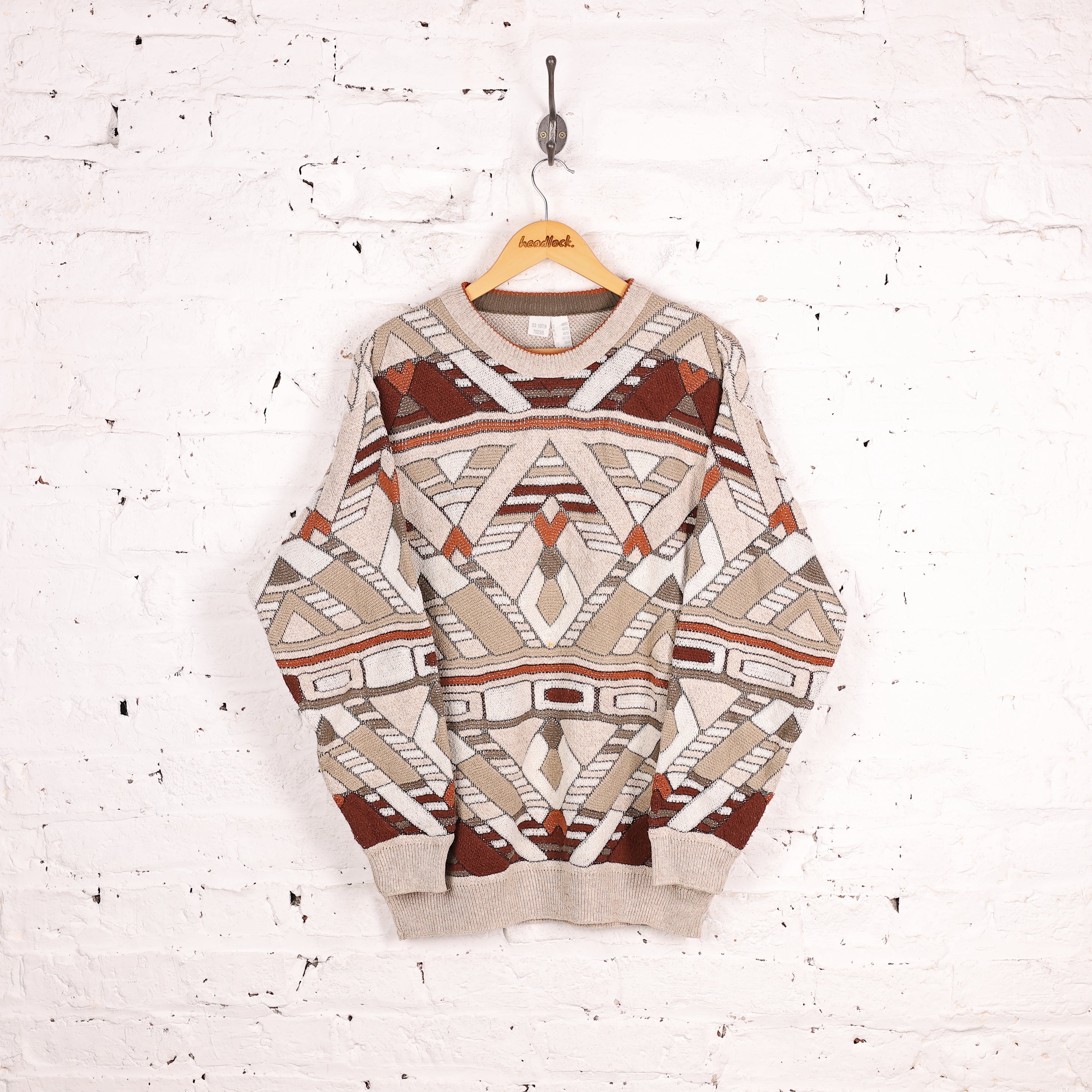 Good condition. 90s pattern knit jumper in beige and orange colours, loose fitting