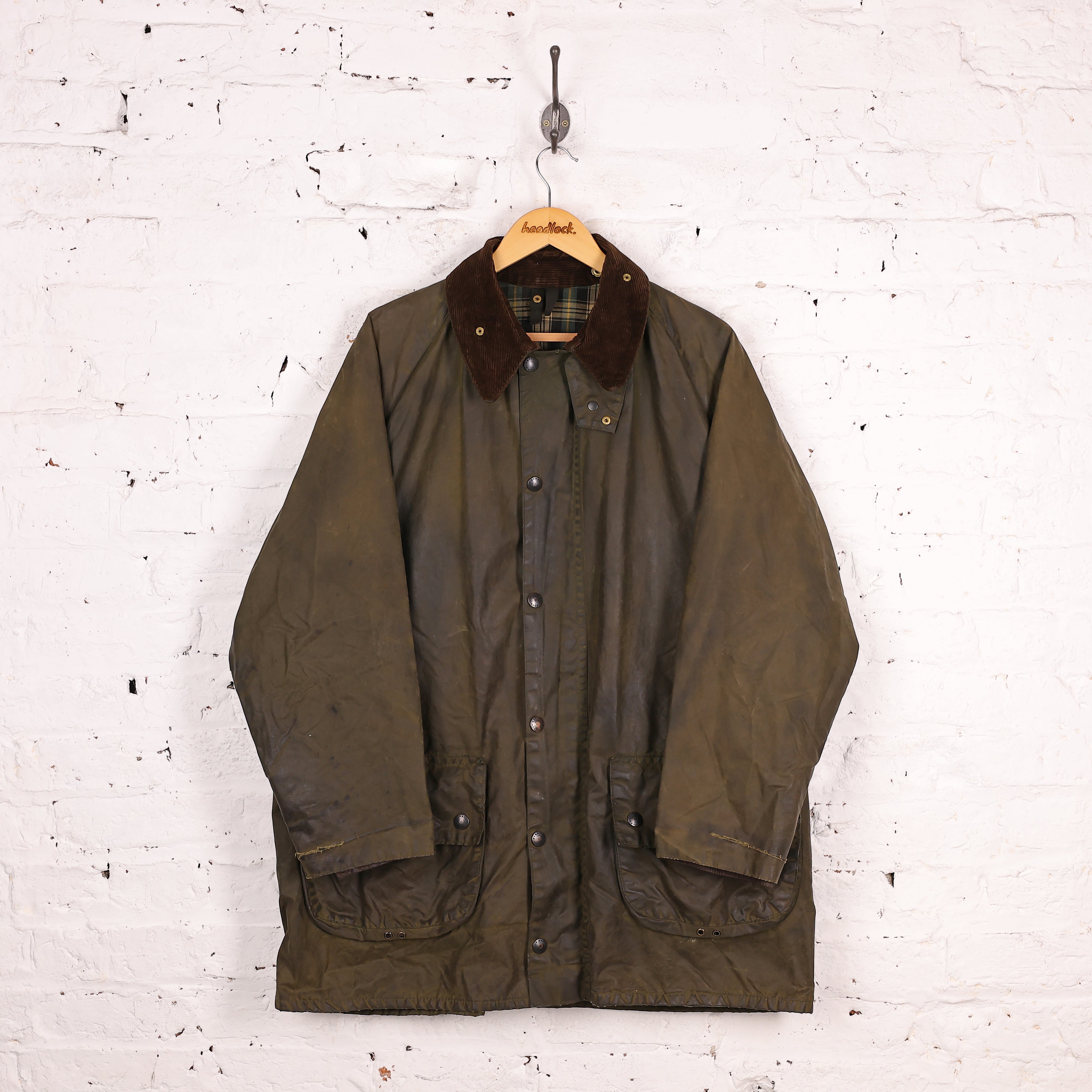 Good condition, recently rewaxed, some small wear and has rewax smell. Barbour Gamefair wax jacket with check inner lining, cord collar, check inner lining. Chest: 44"