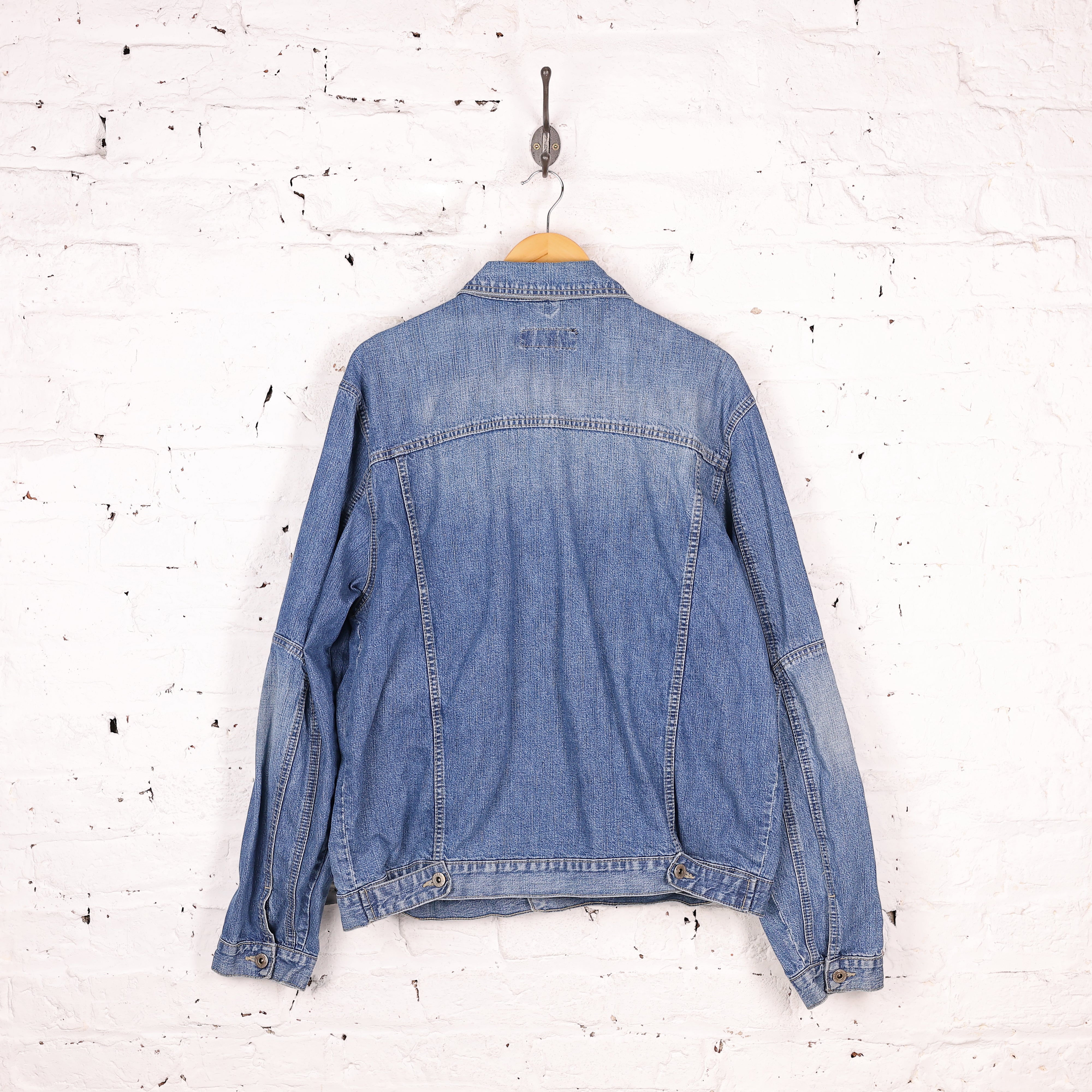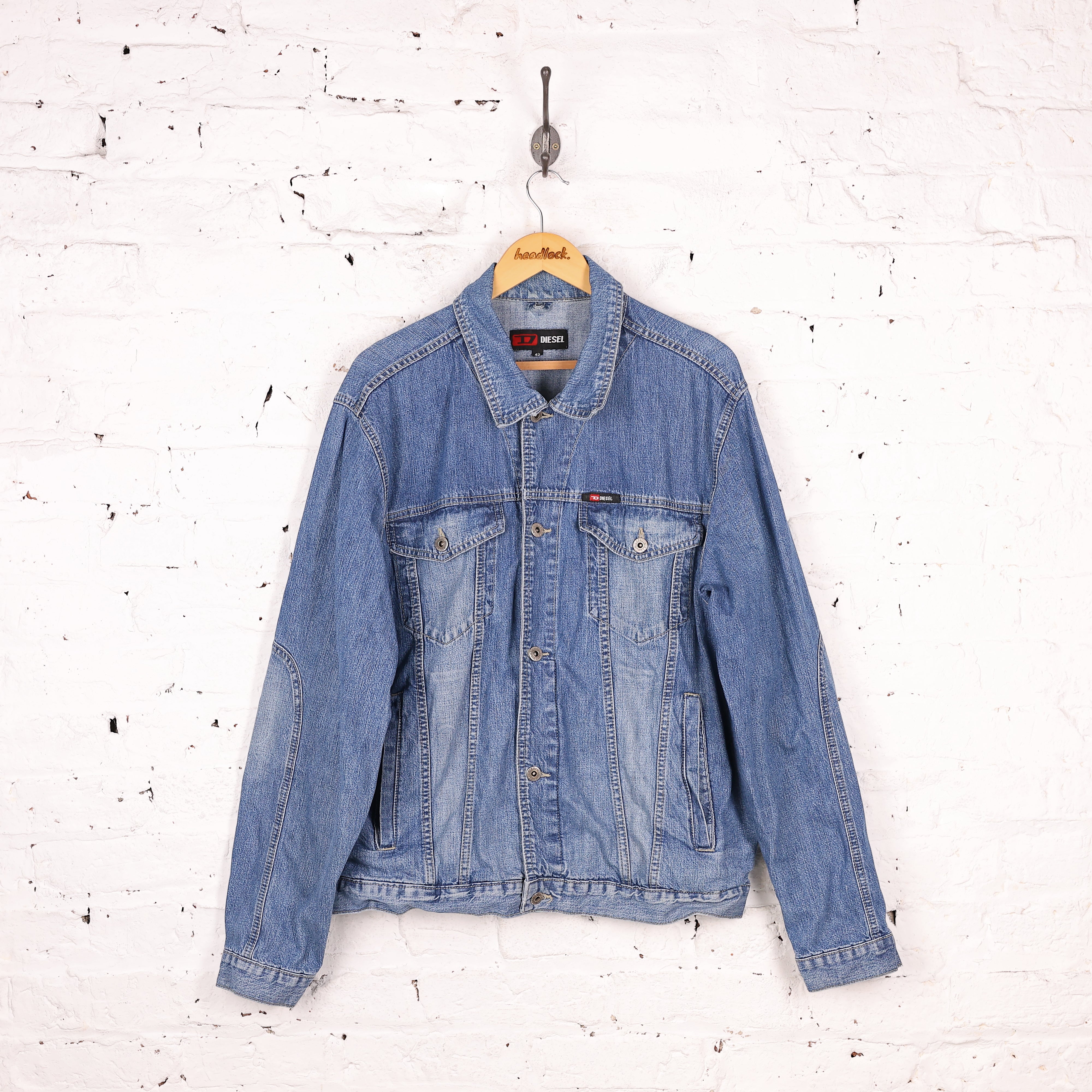 Good condition. Diesel denim jacket in mid blue with four pockets, silver buttoning and stitched Diesel tab. Loose fitting.