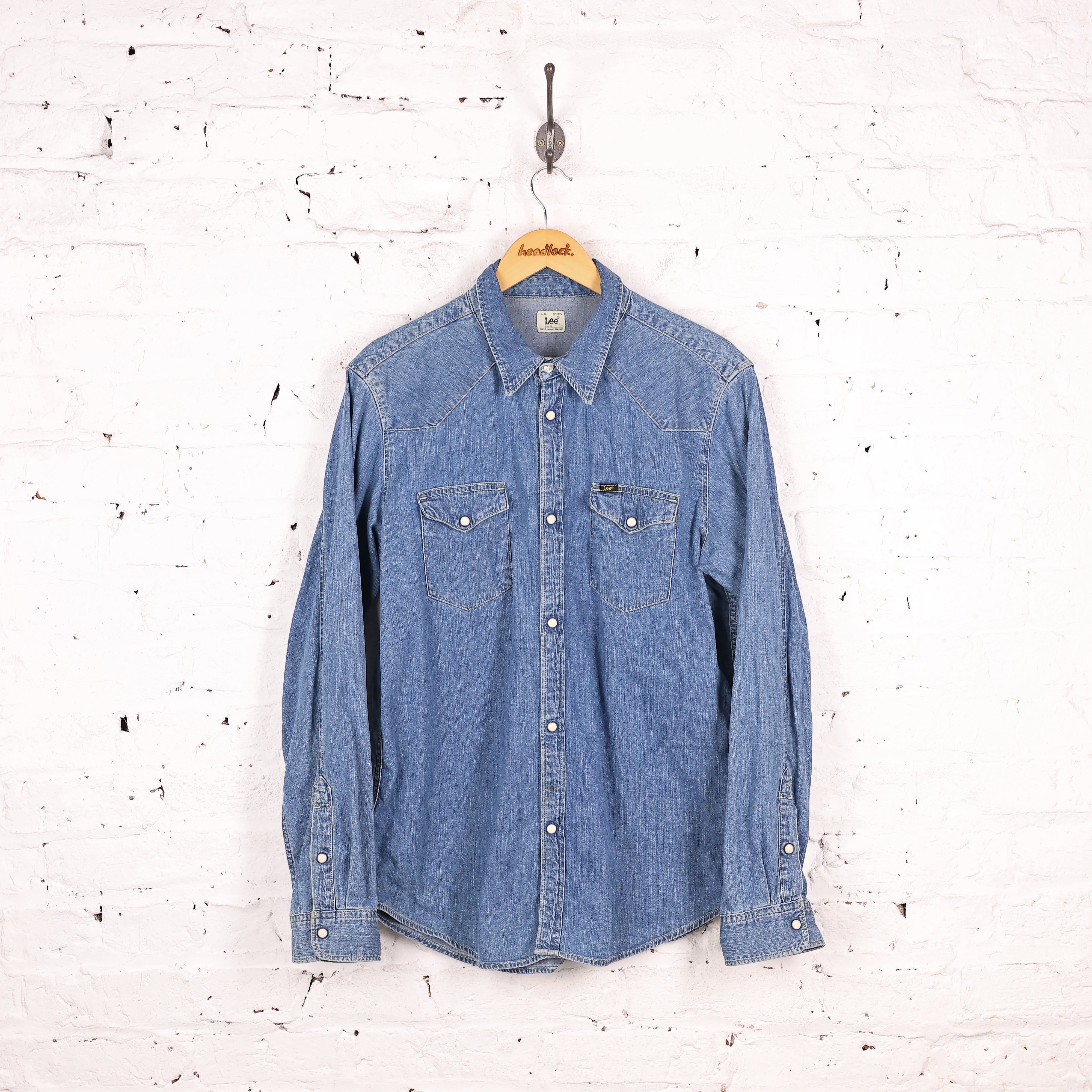 Good condition. Lee denim shirt in mid blue denim, slim fit, popper buttons and two chest pockets