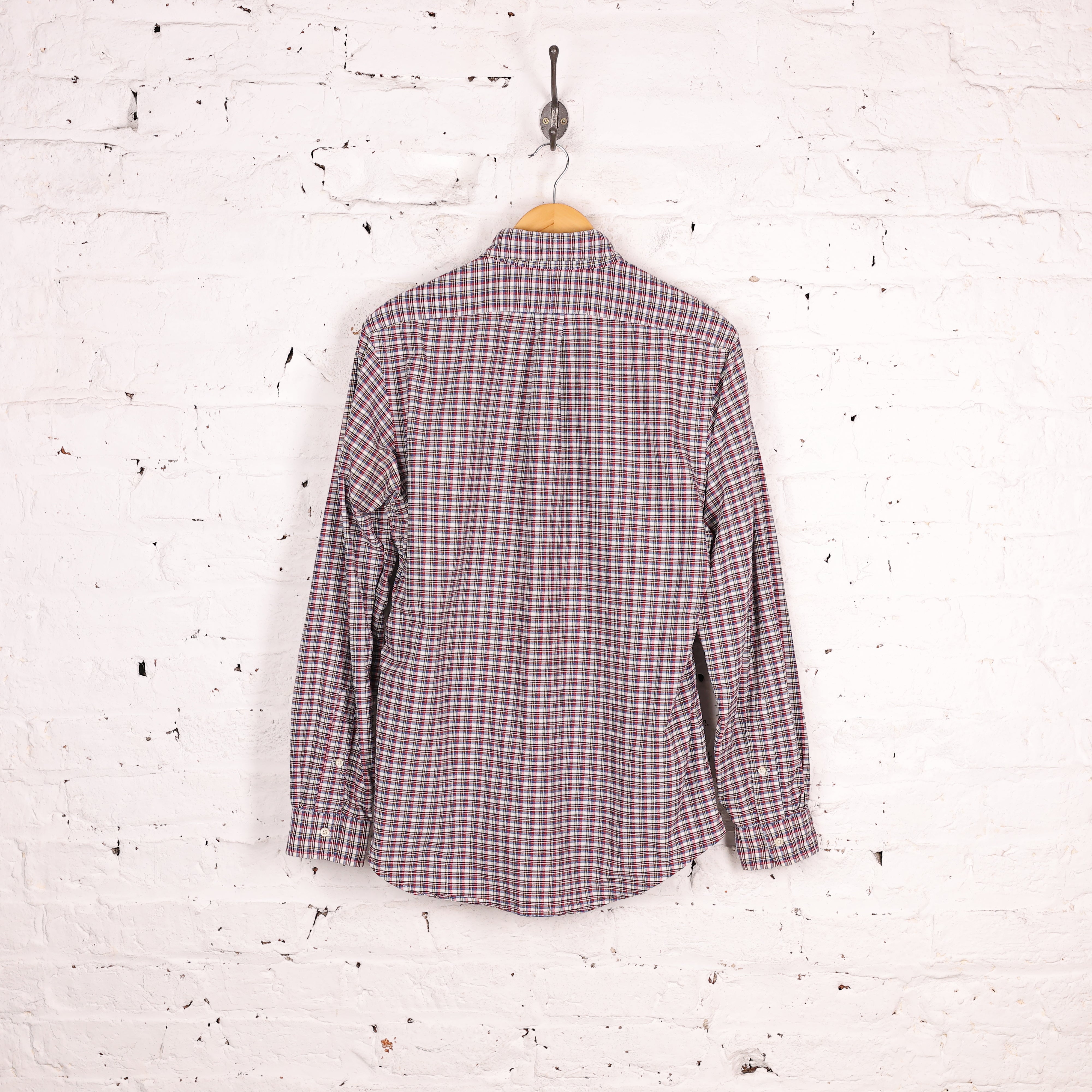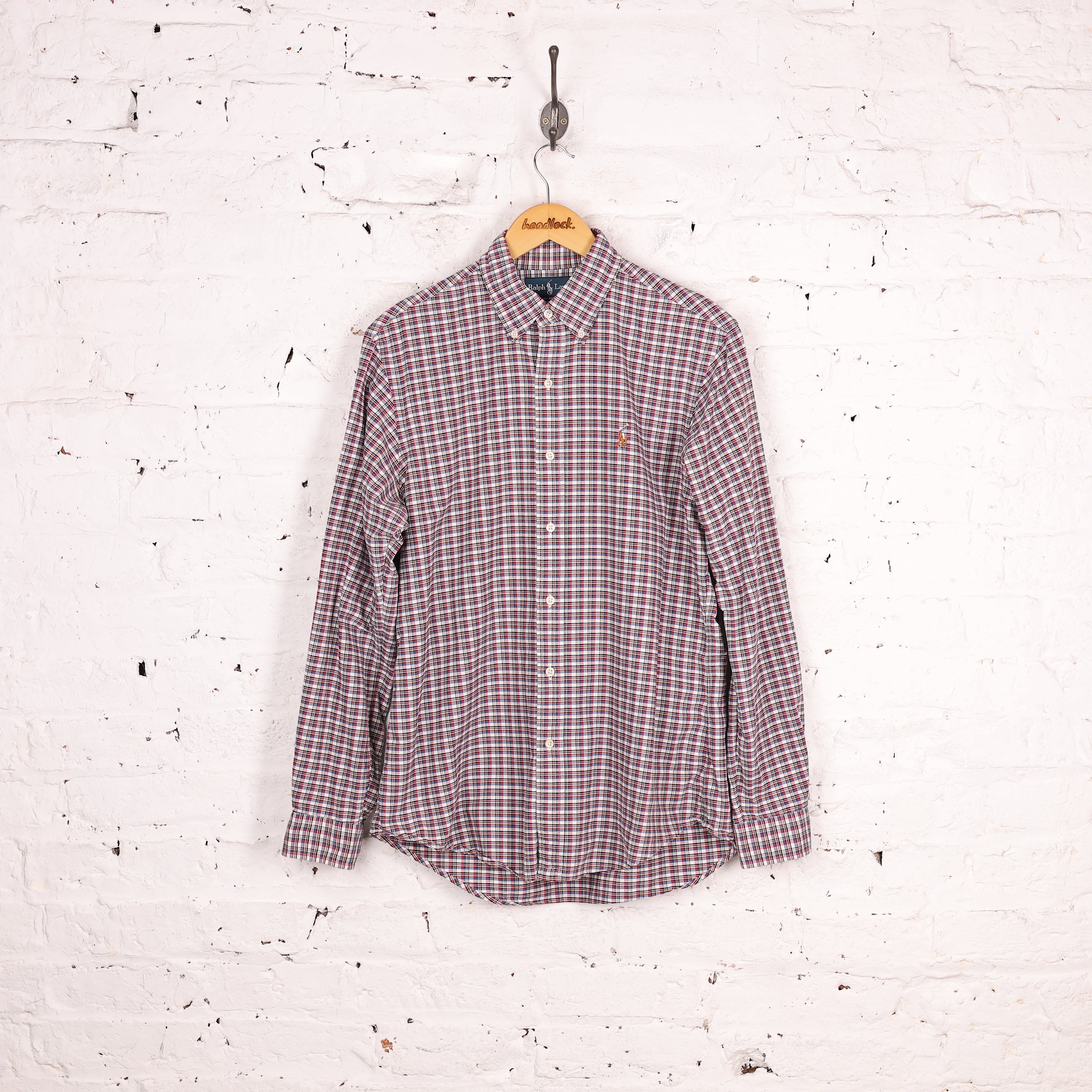 Good condition. Ralph Lauren Custom Fit check shirt in white, blue and red colours, stitched logo on the chest.