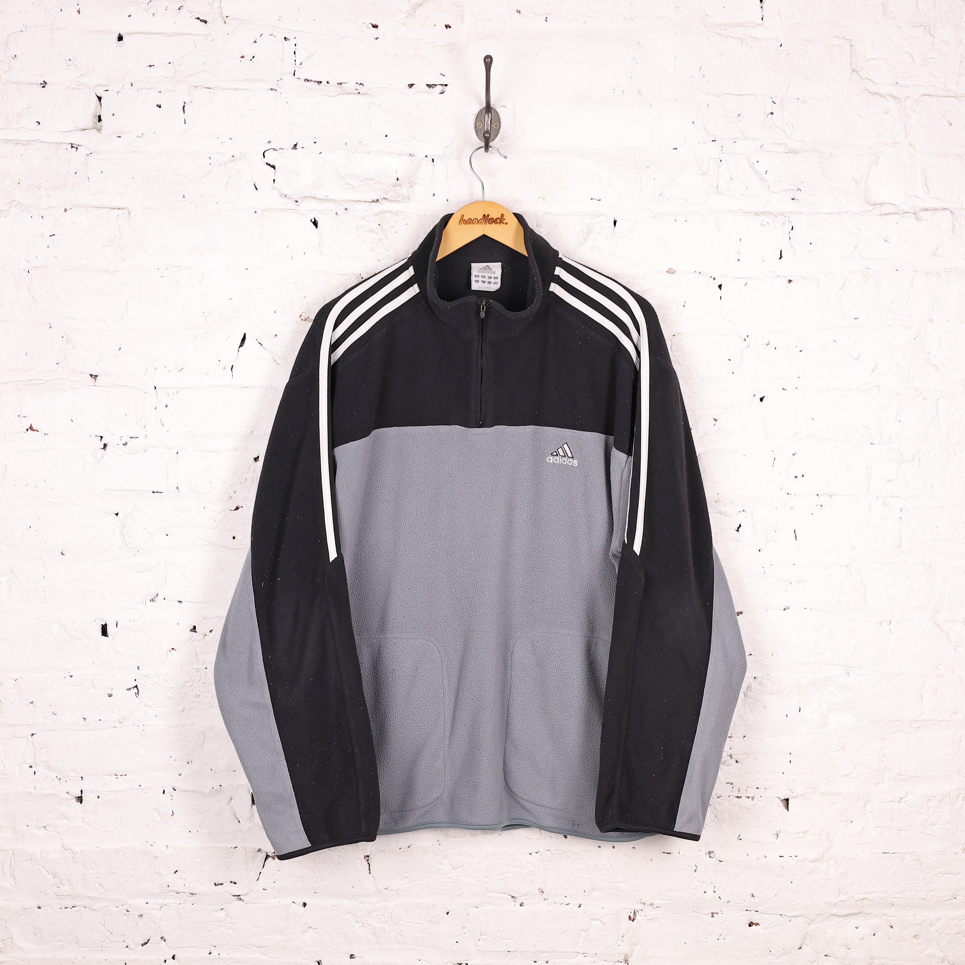 Good condition, slightly bobbled fabric. Adidas 90s fleece with stitched logo, three stripe down the sleeves and two pockets.