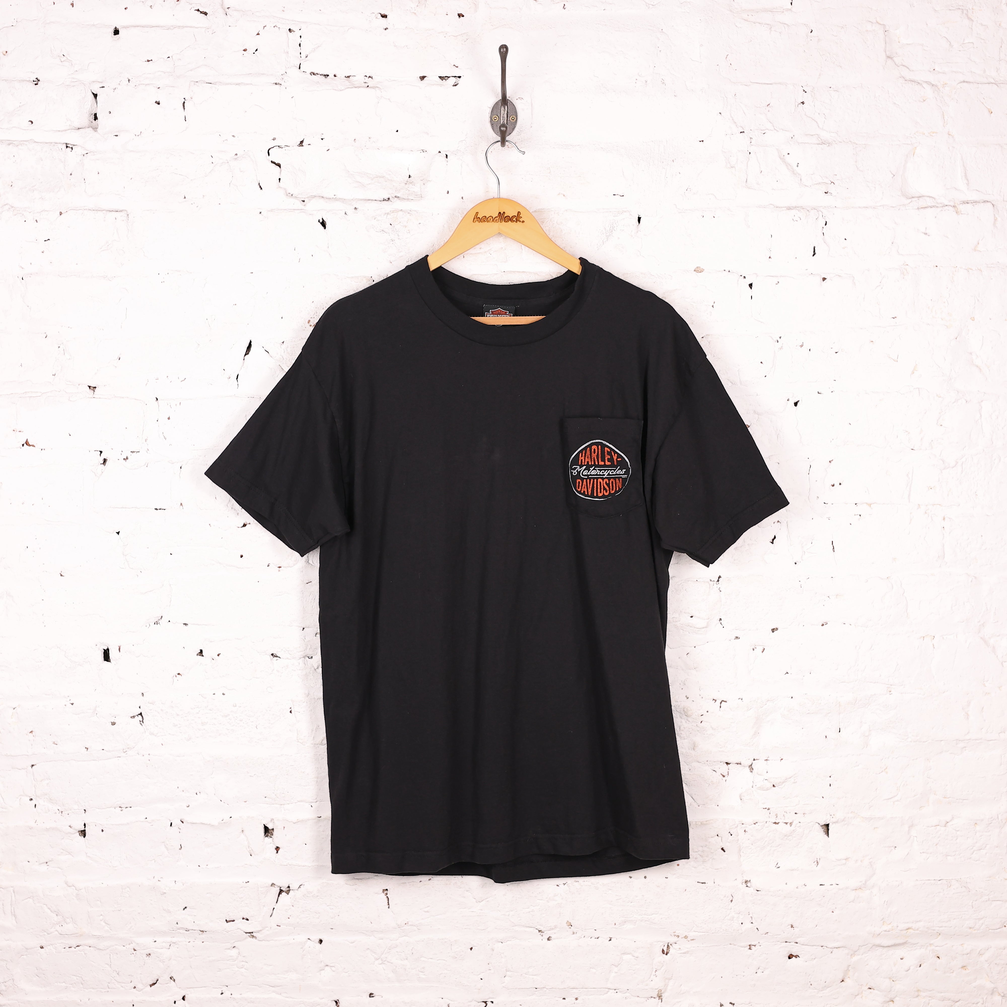 Good condition. Harley Davidson t shirt in black with pocket on the chest.