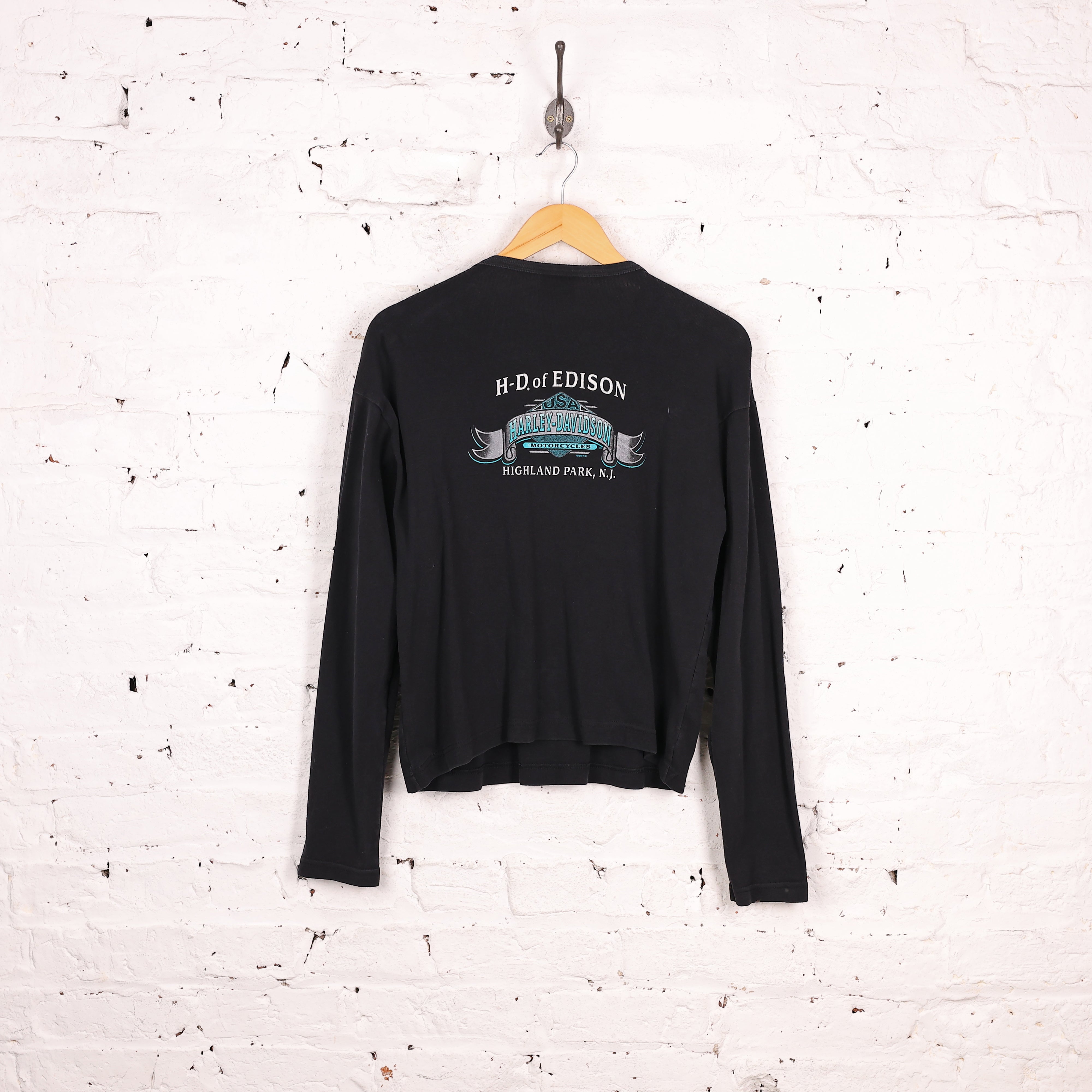 Good condition. Women's Harley Davidson, New Jersey long sleeve t shirt in black with Harley graphic on the chest.