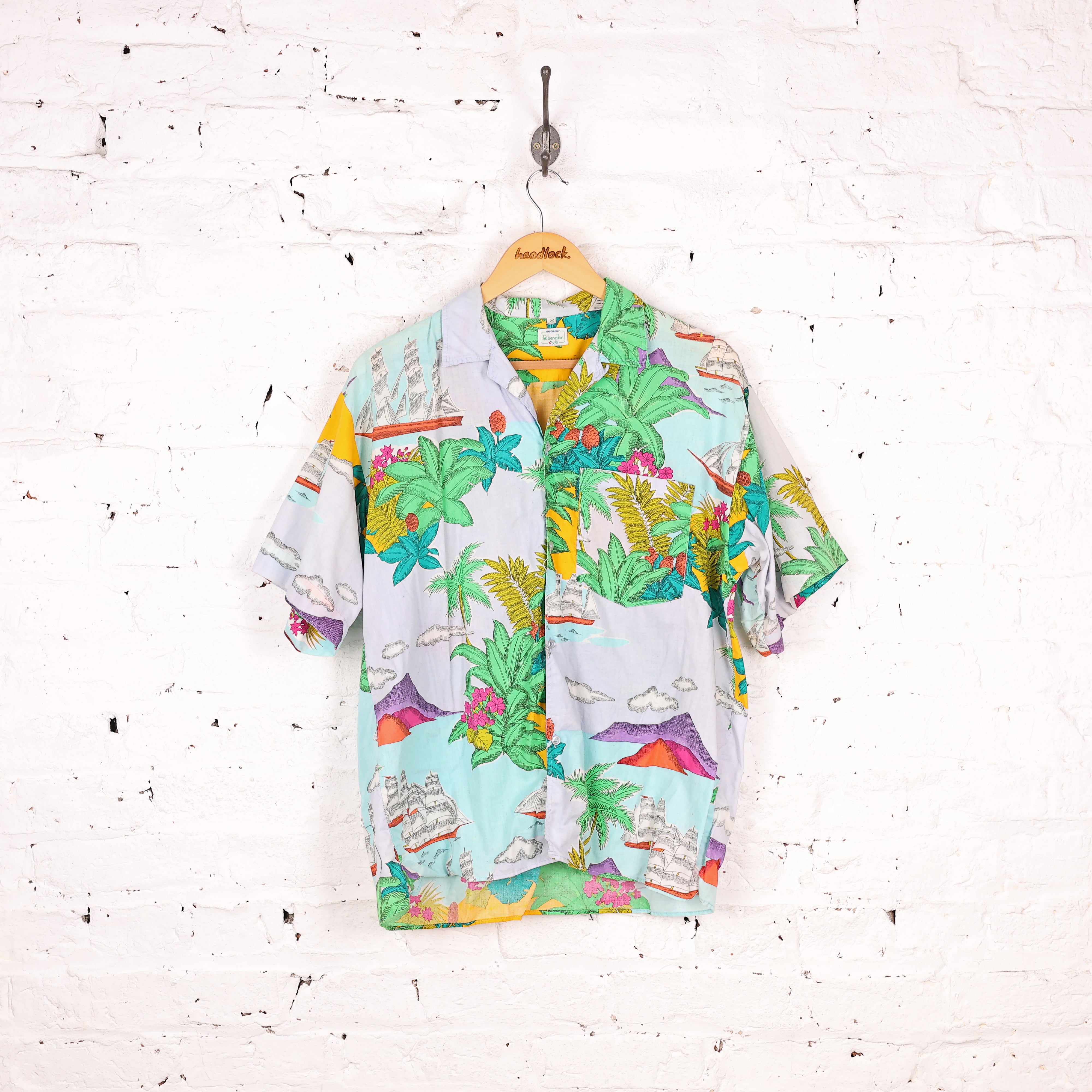 90s Benetton Hawaiian Pattern Shirt - Green - S