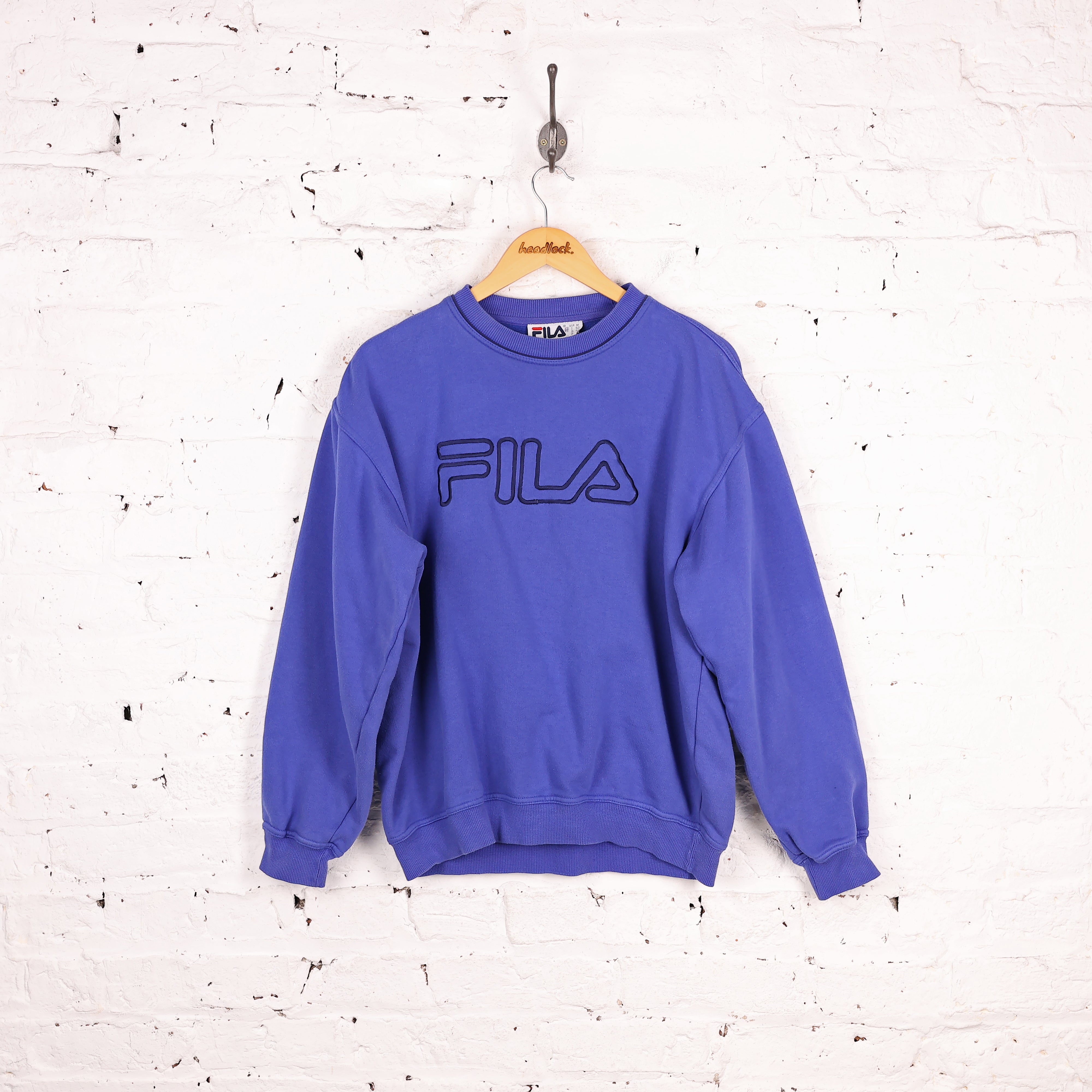 90s Fila Spell Out Sweatshirt - Blue - M