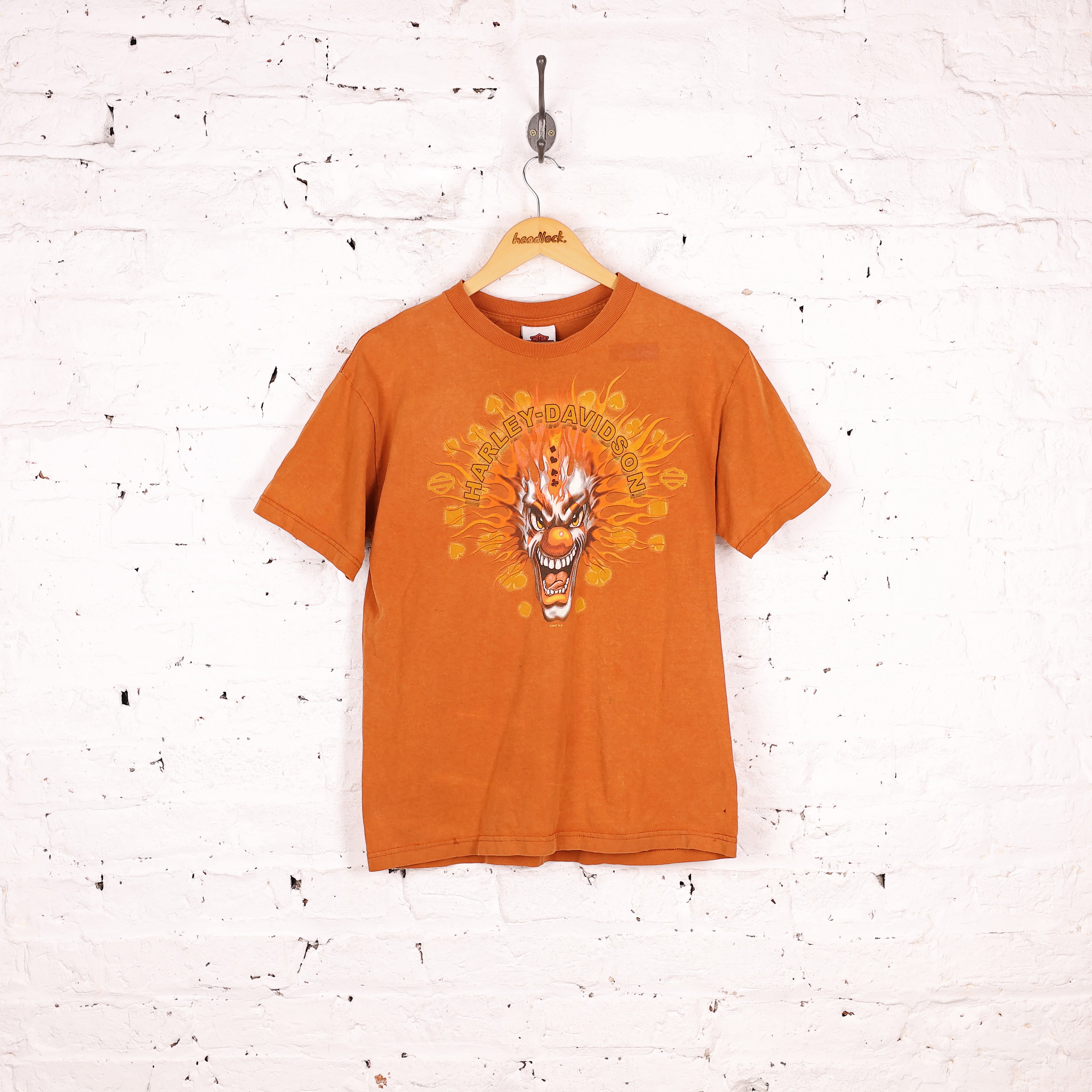 90s Harley Davidson Clown Short Sleeve T Shirt - Orange - M