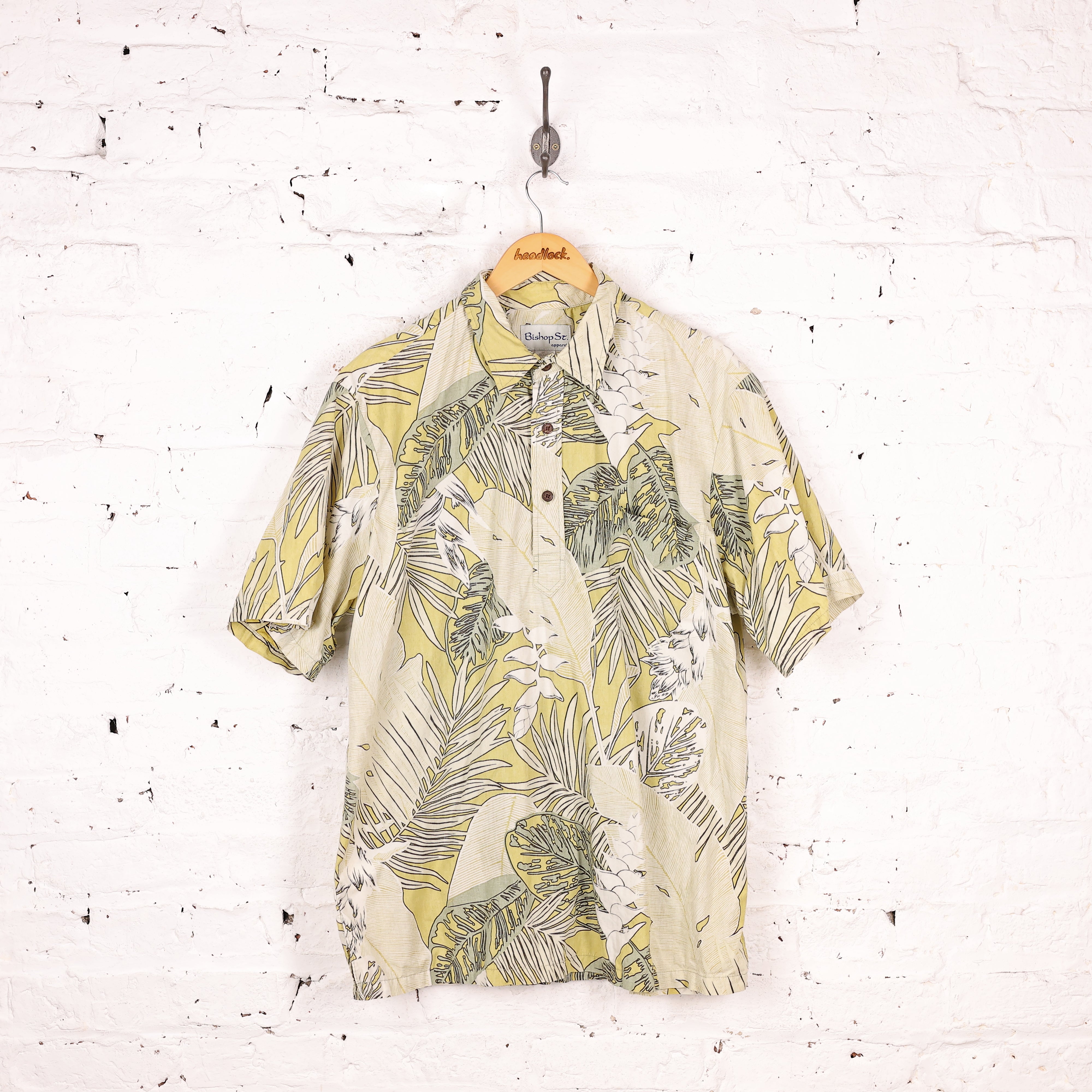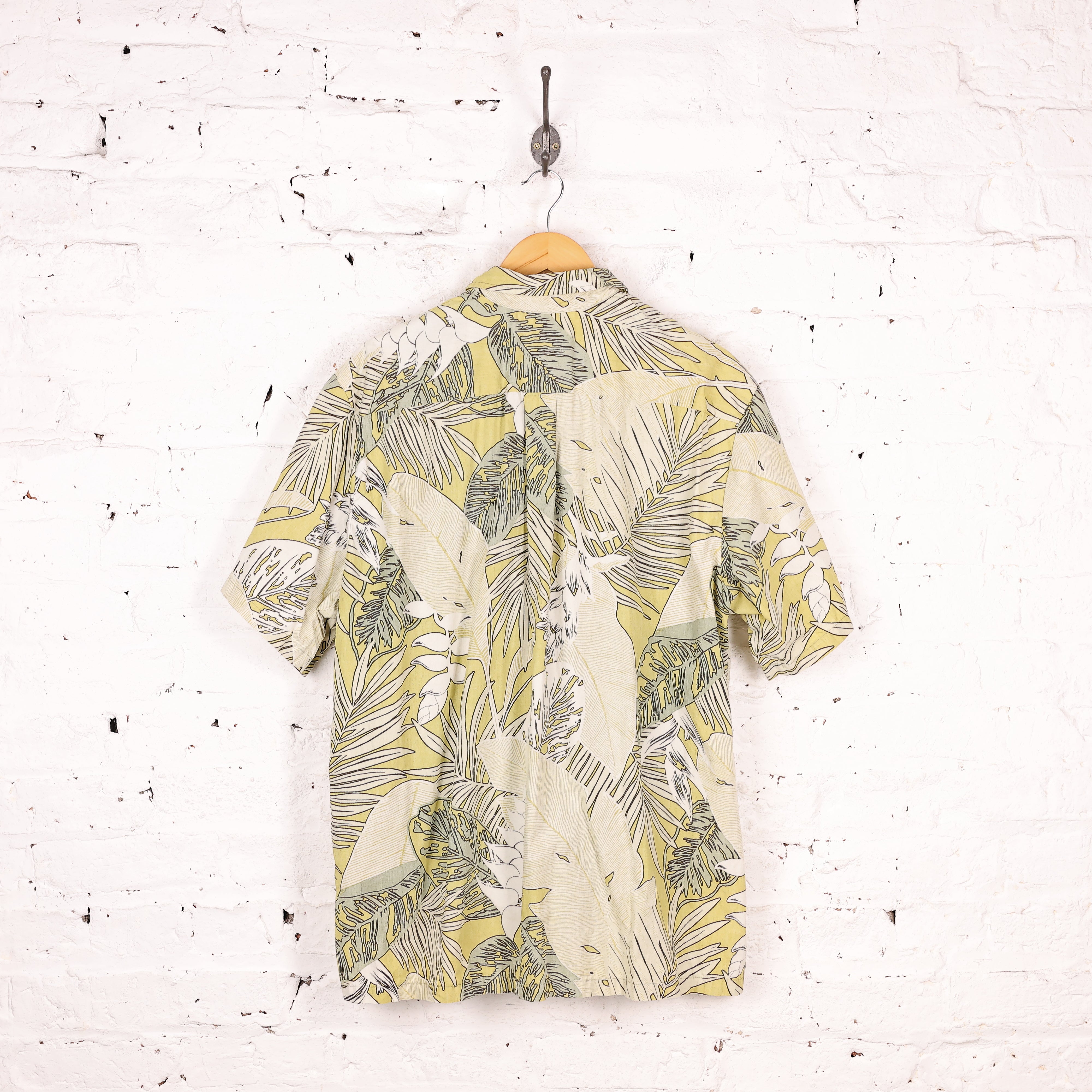 90s Hawaiian Pattern Polo Style Shirt - Yellow - XL