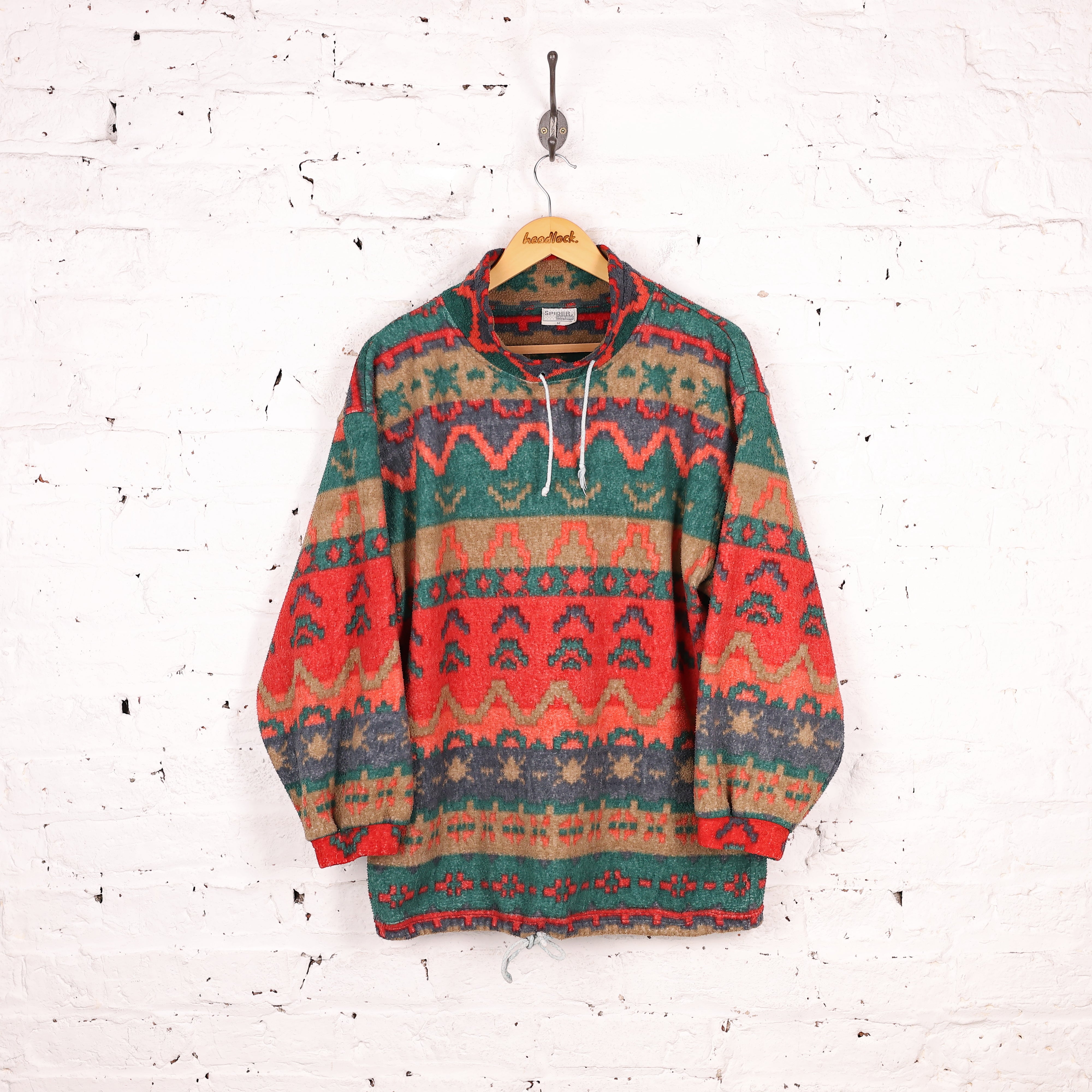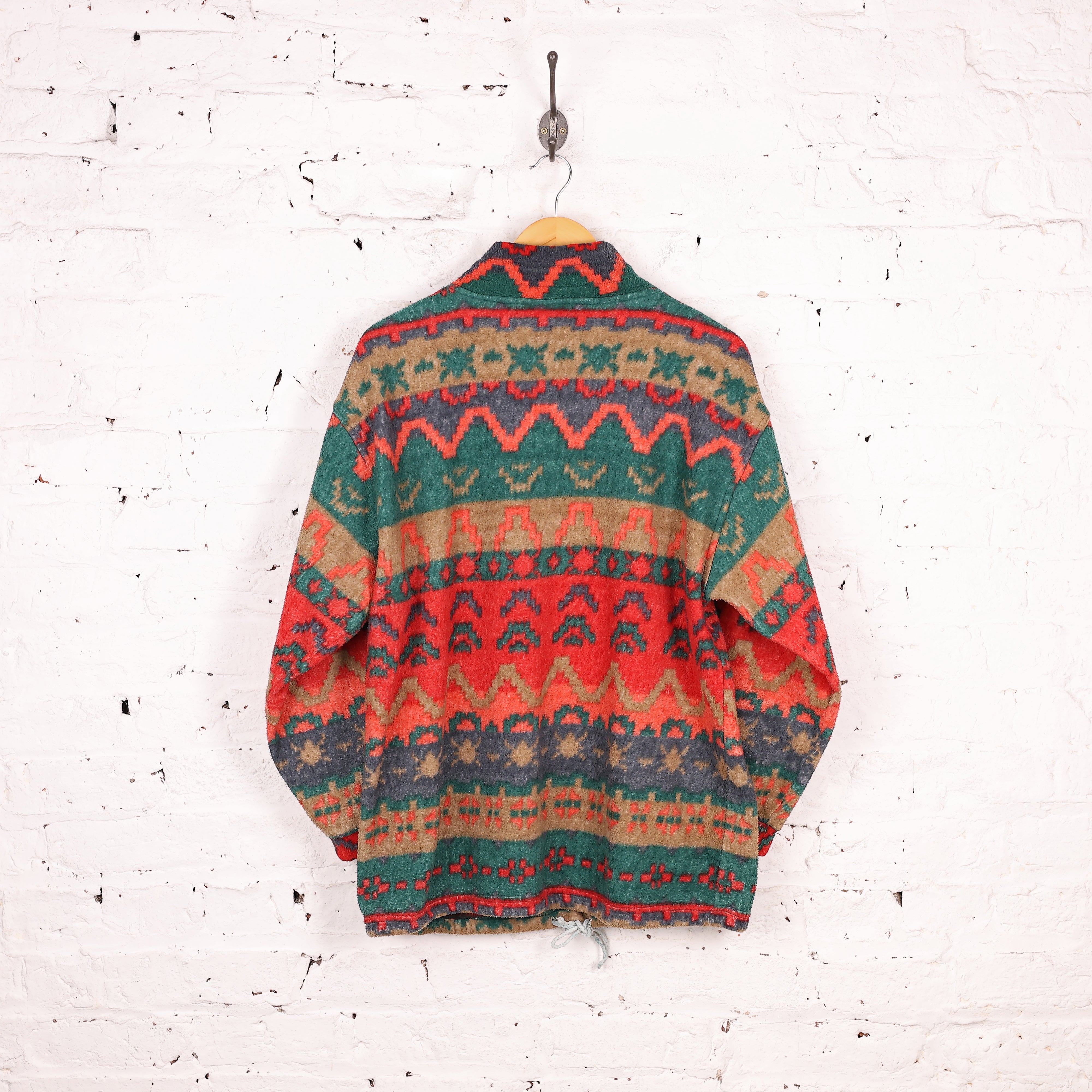 90s High Neck Patterned Fleece - Orange - M