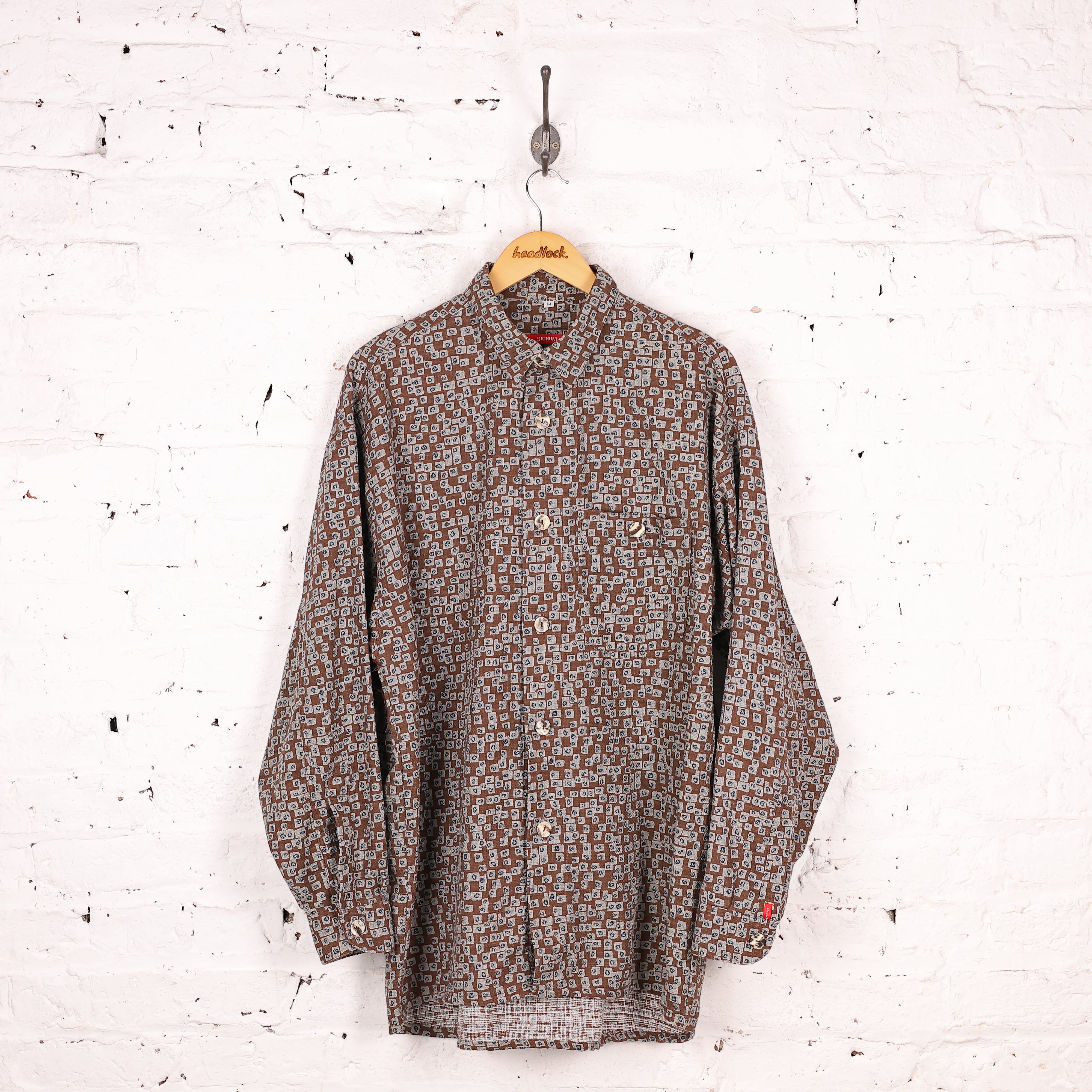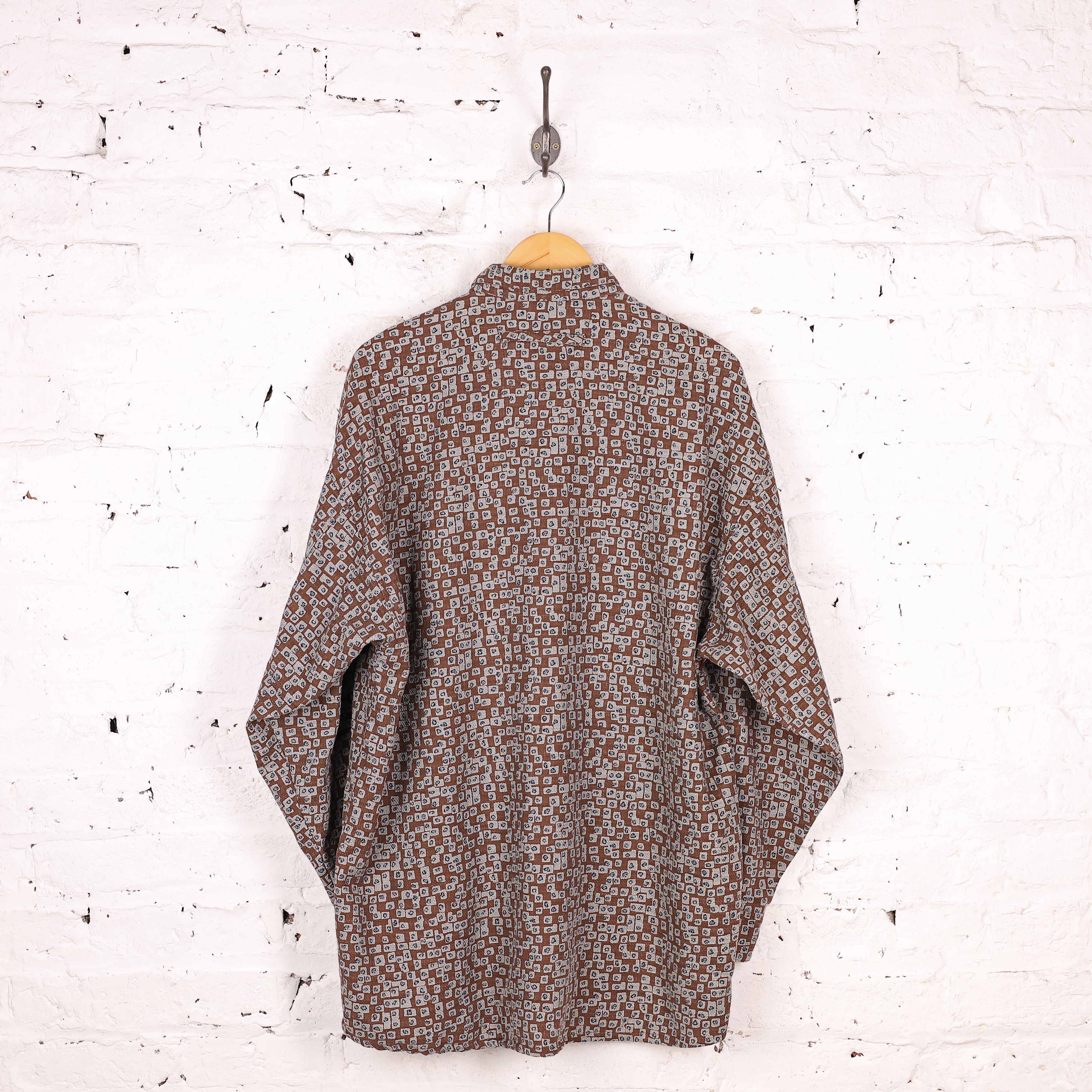 90s Long Sleeve Pattern Shirt - Brown - M