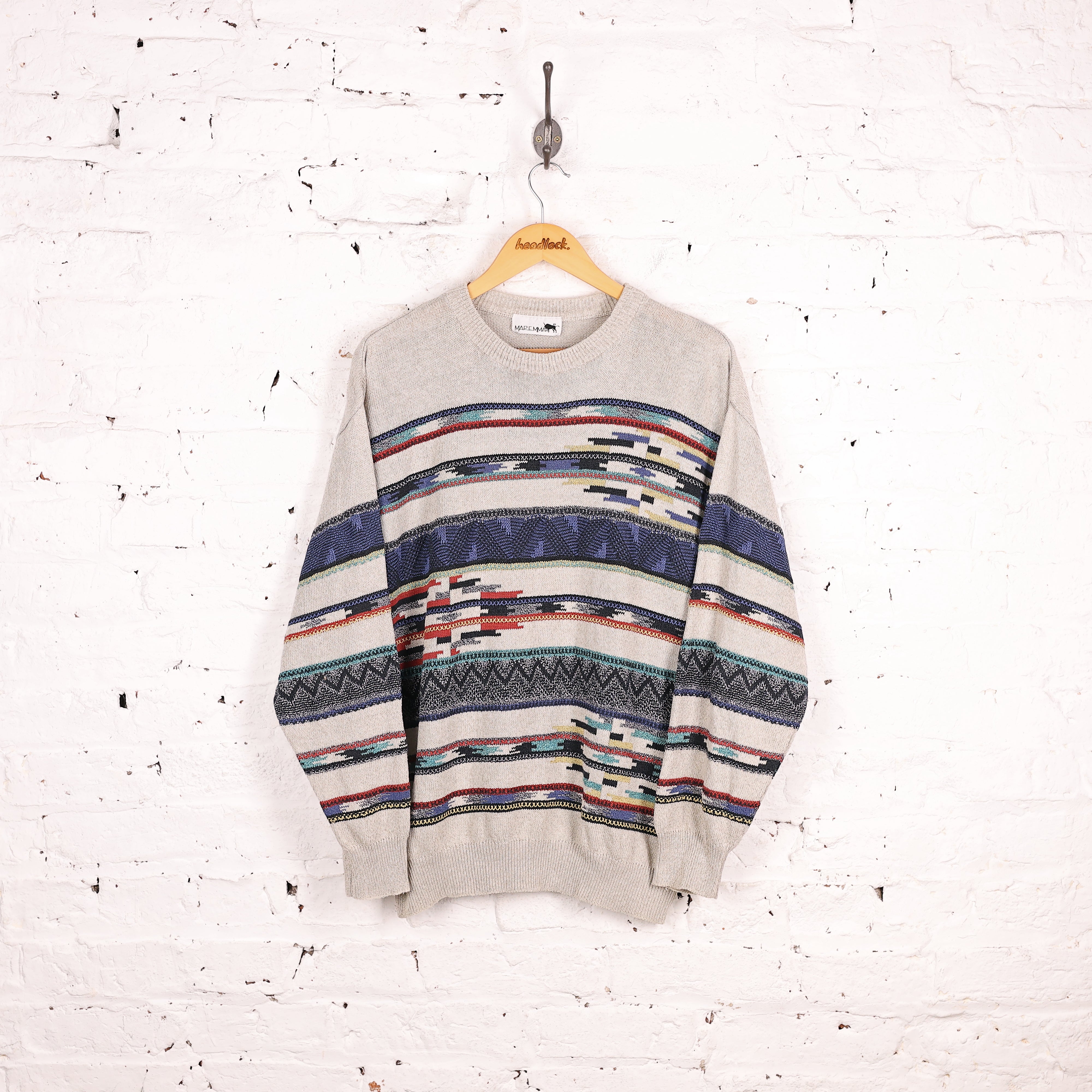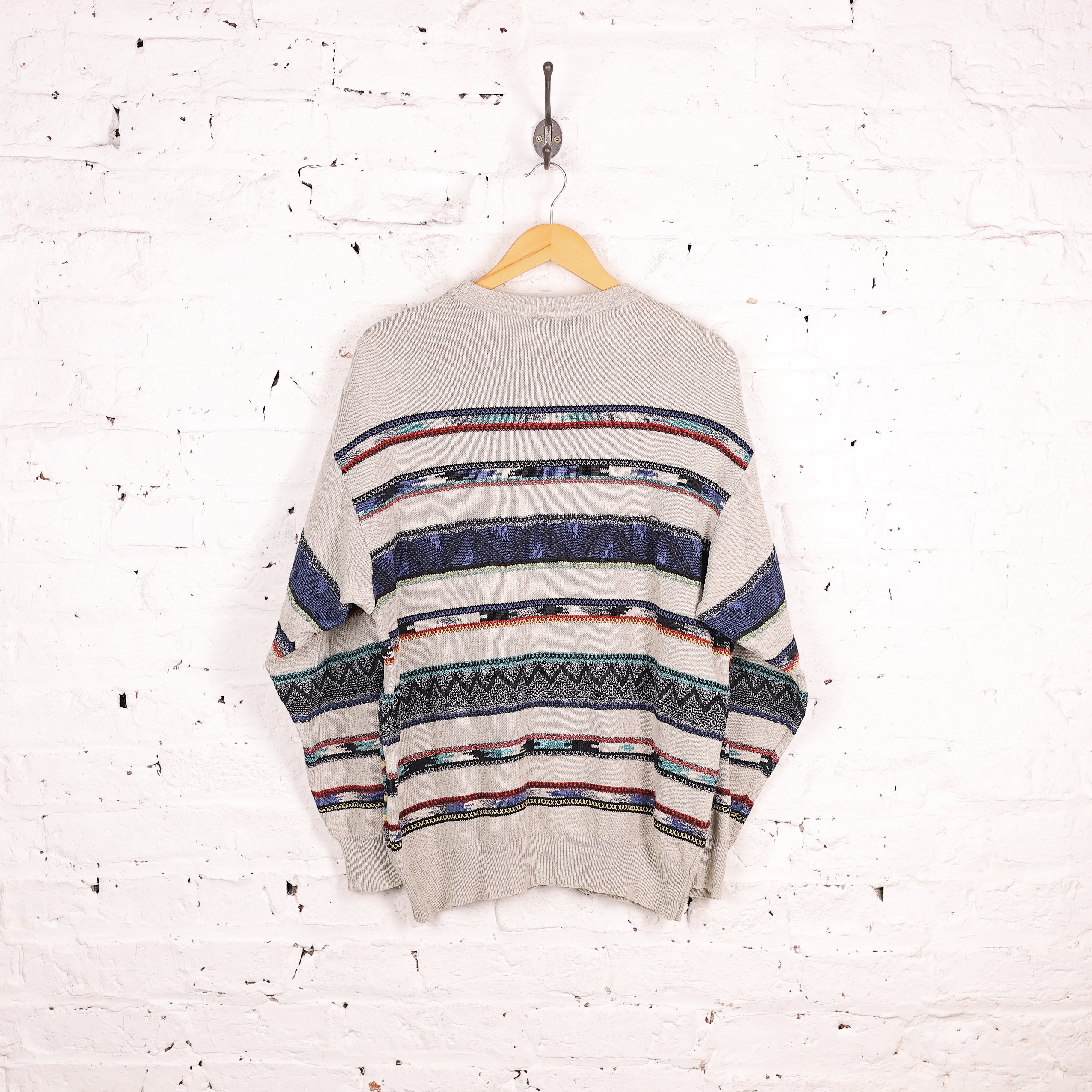 90s Pattern Knit Jumper - Beige - XL