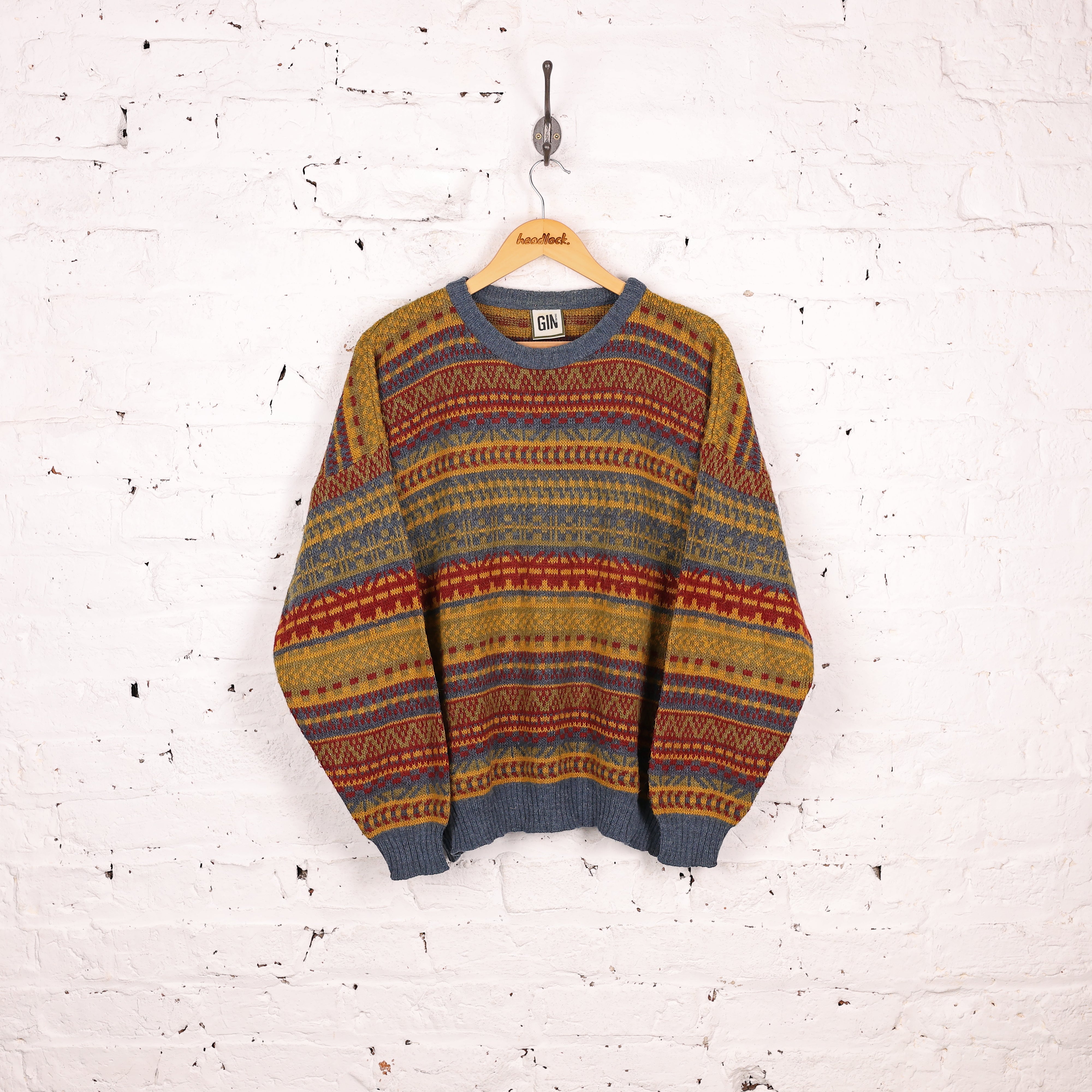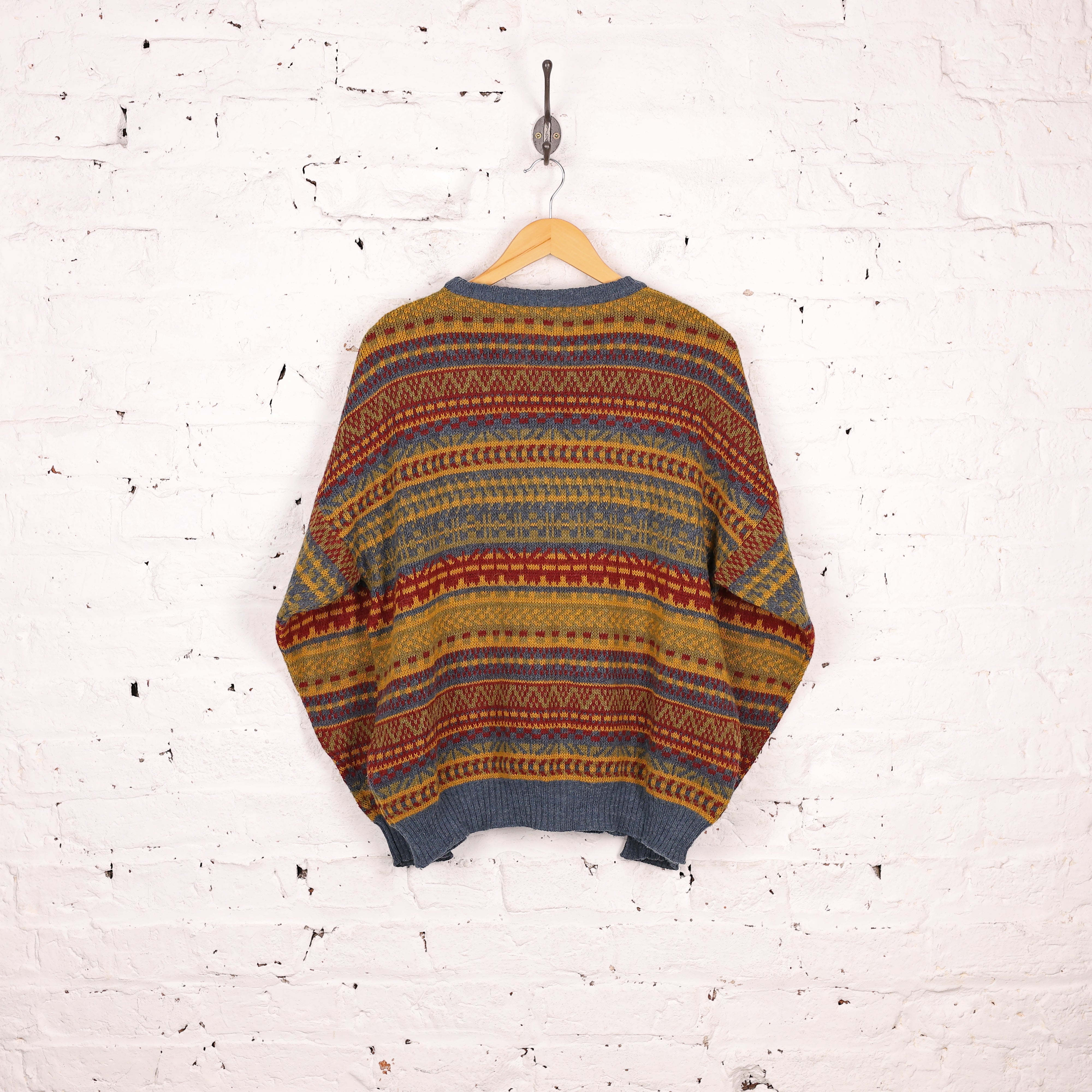 Good condition. 90s pattern knit jumper in blue, red and green.