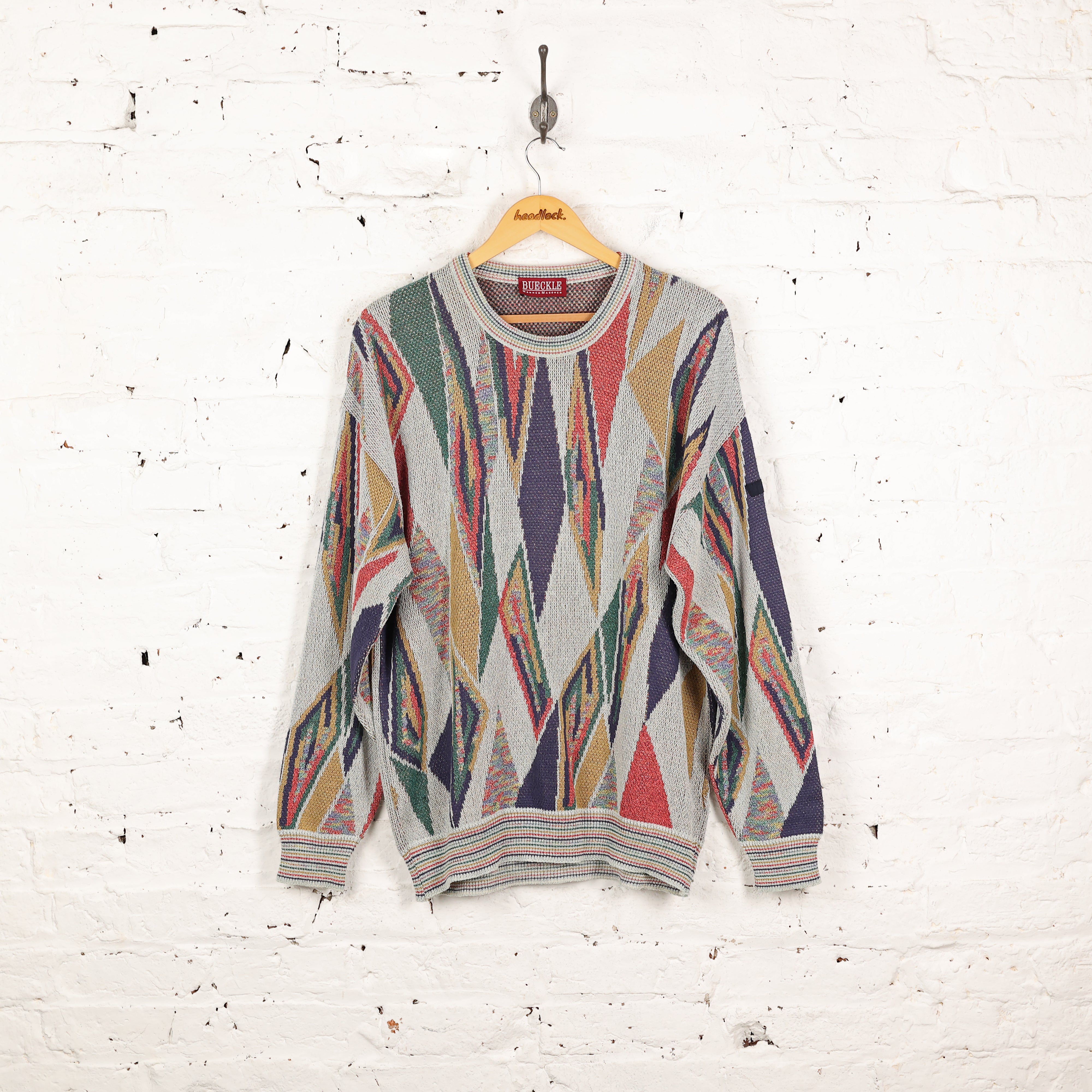 90s Pattern Knit Jumper - Grey - L - L / Grey is sold. Got to be fast 🔥