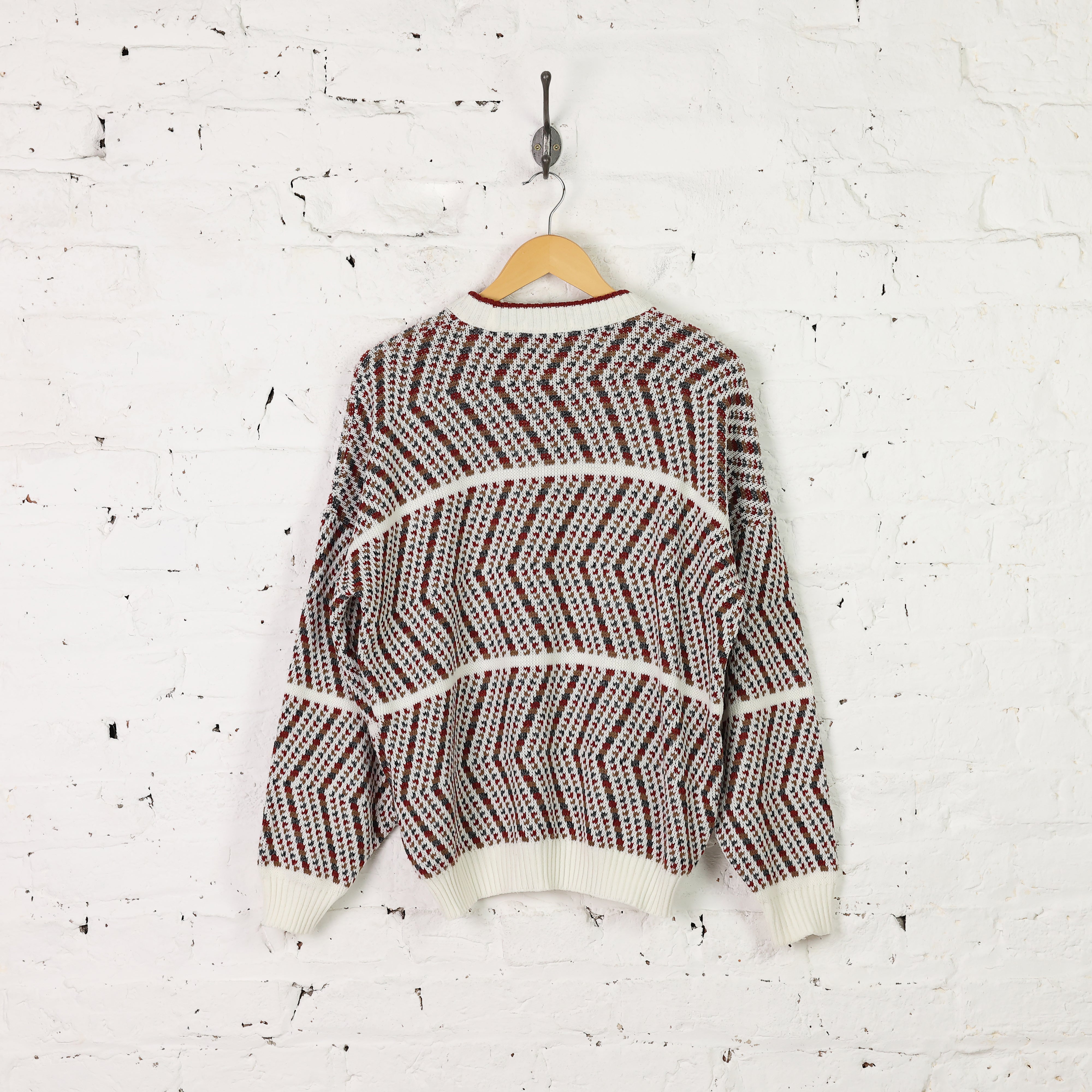 90s Pattern Knit Jumper - White - M