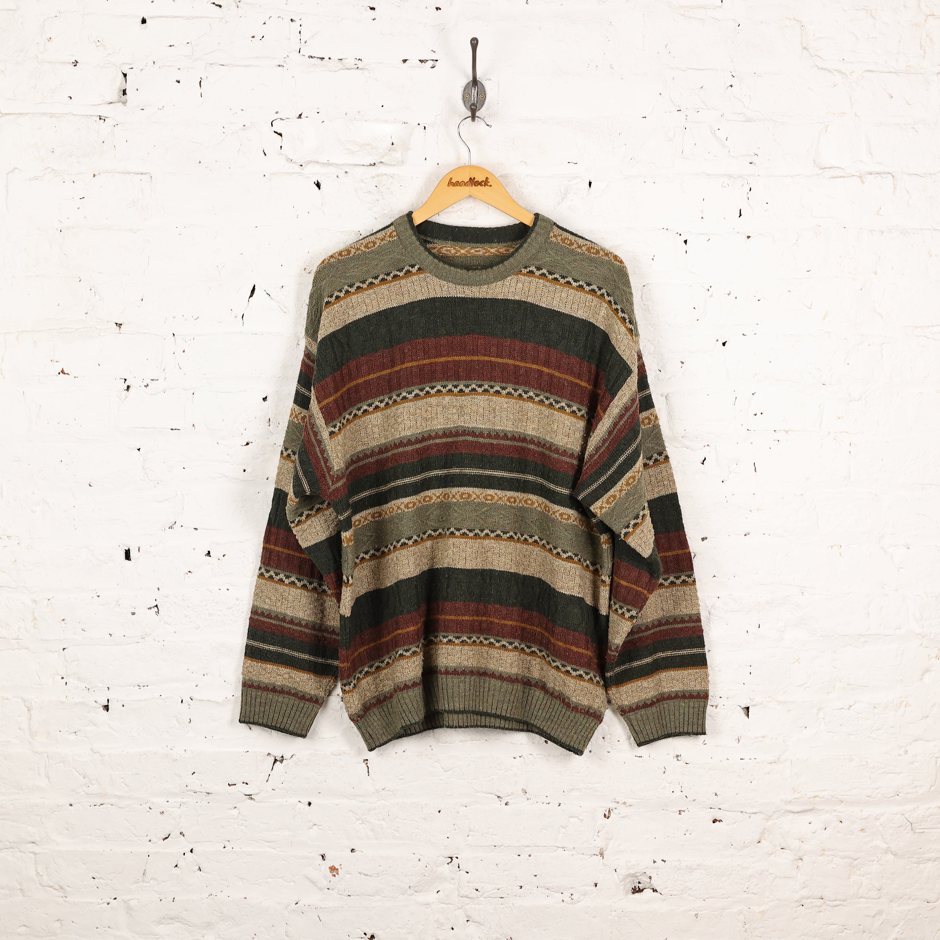 90s Pattern Striped Knit Jumper - Green - XL - XL / Green is sold. Got to be fast 🔥