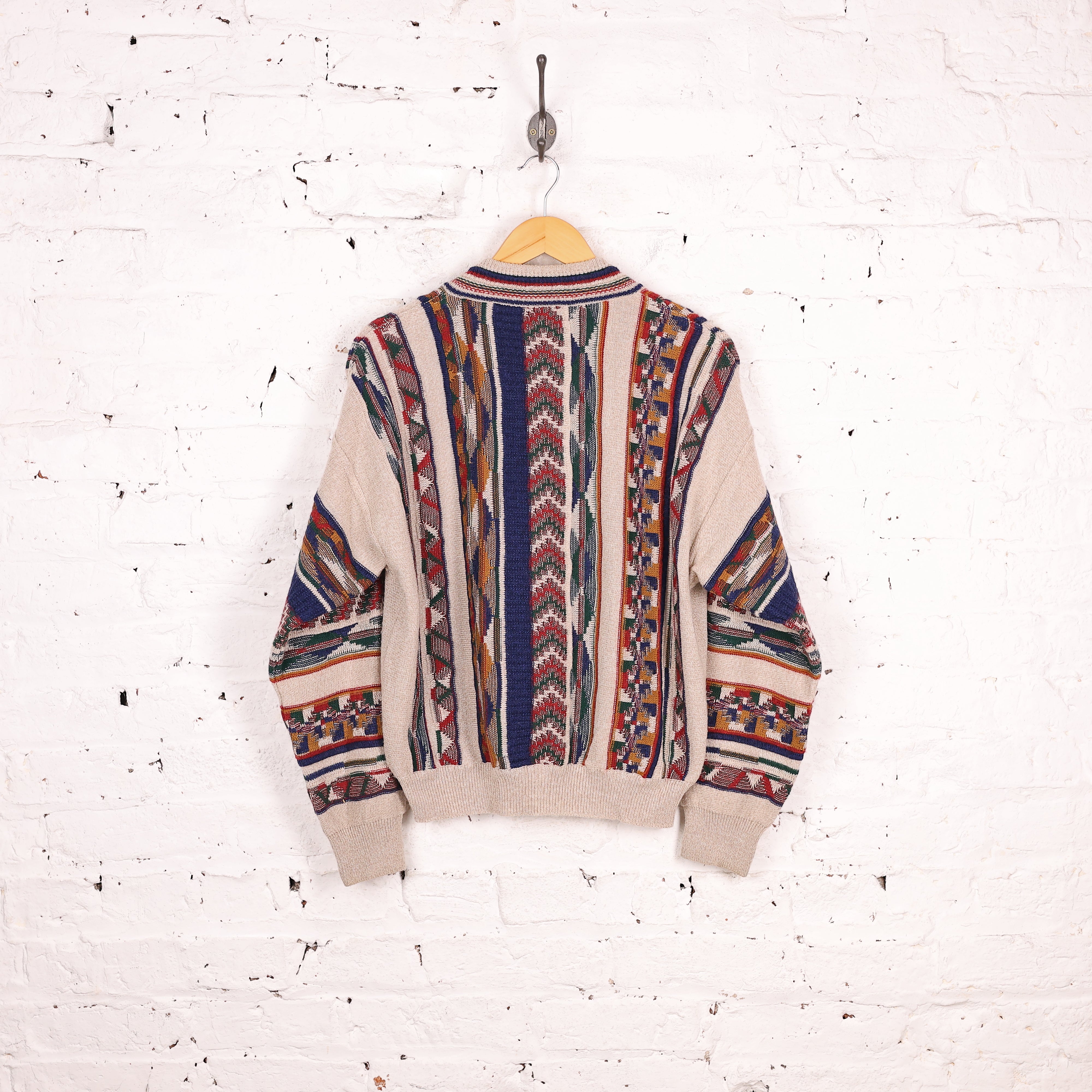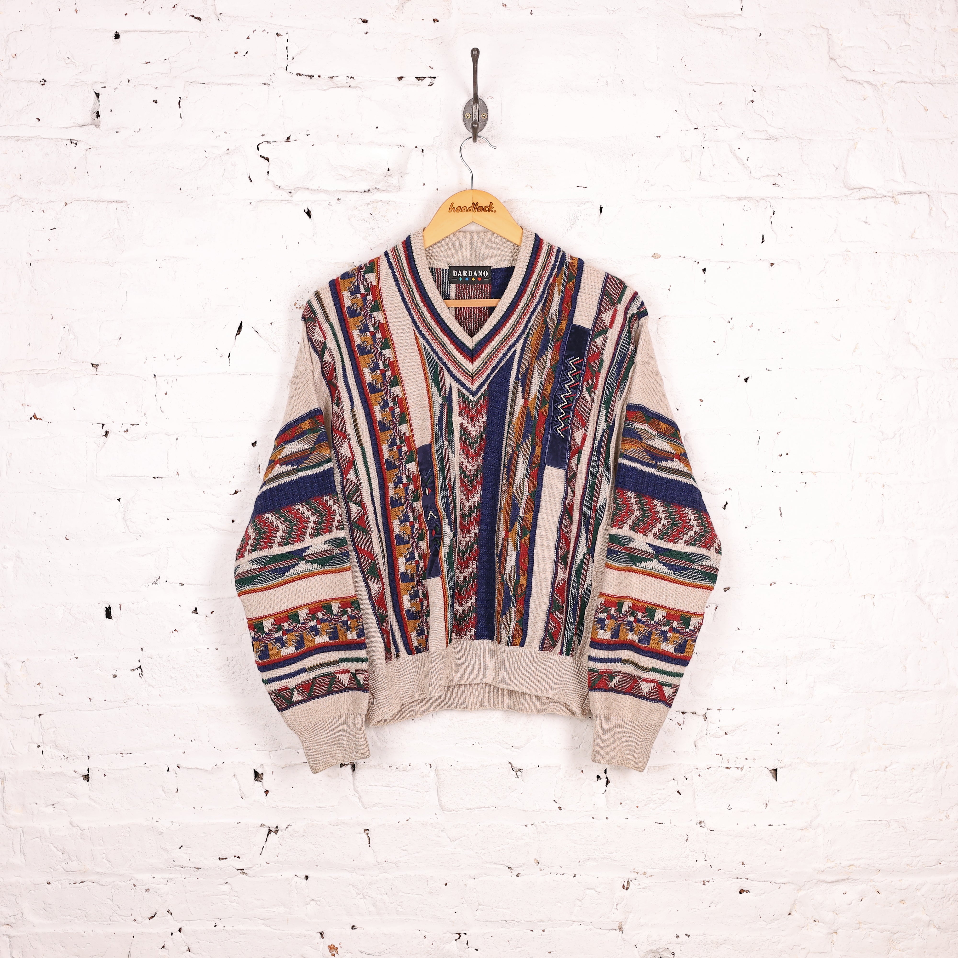 Good condition. Beige patterned texture knit jumper in V neck and boxy fitting.