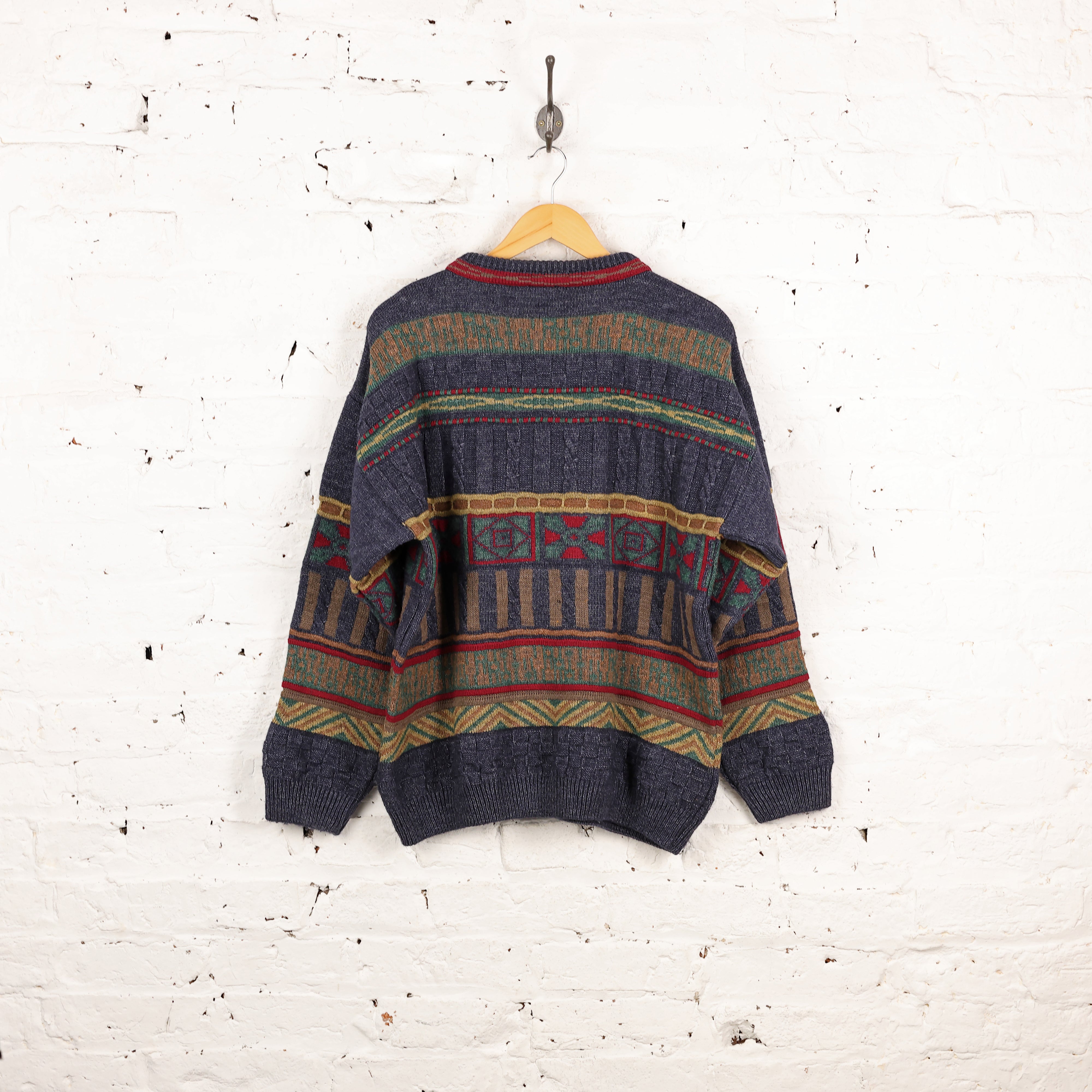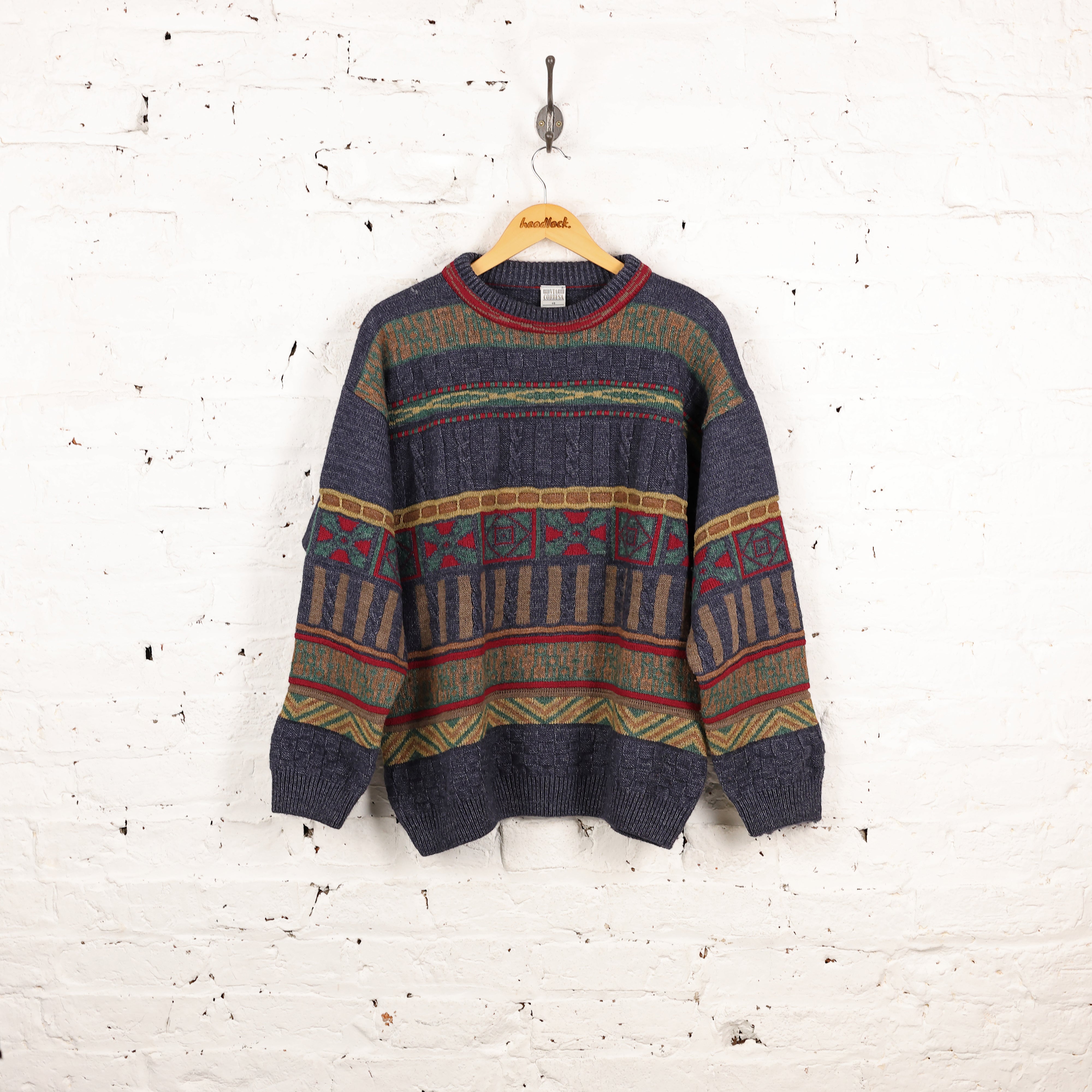 90s Pattern Texture Knit Jumper - Blue - L - L / Blue is sold. Got to be fast 🔥