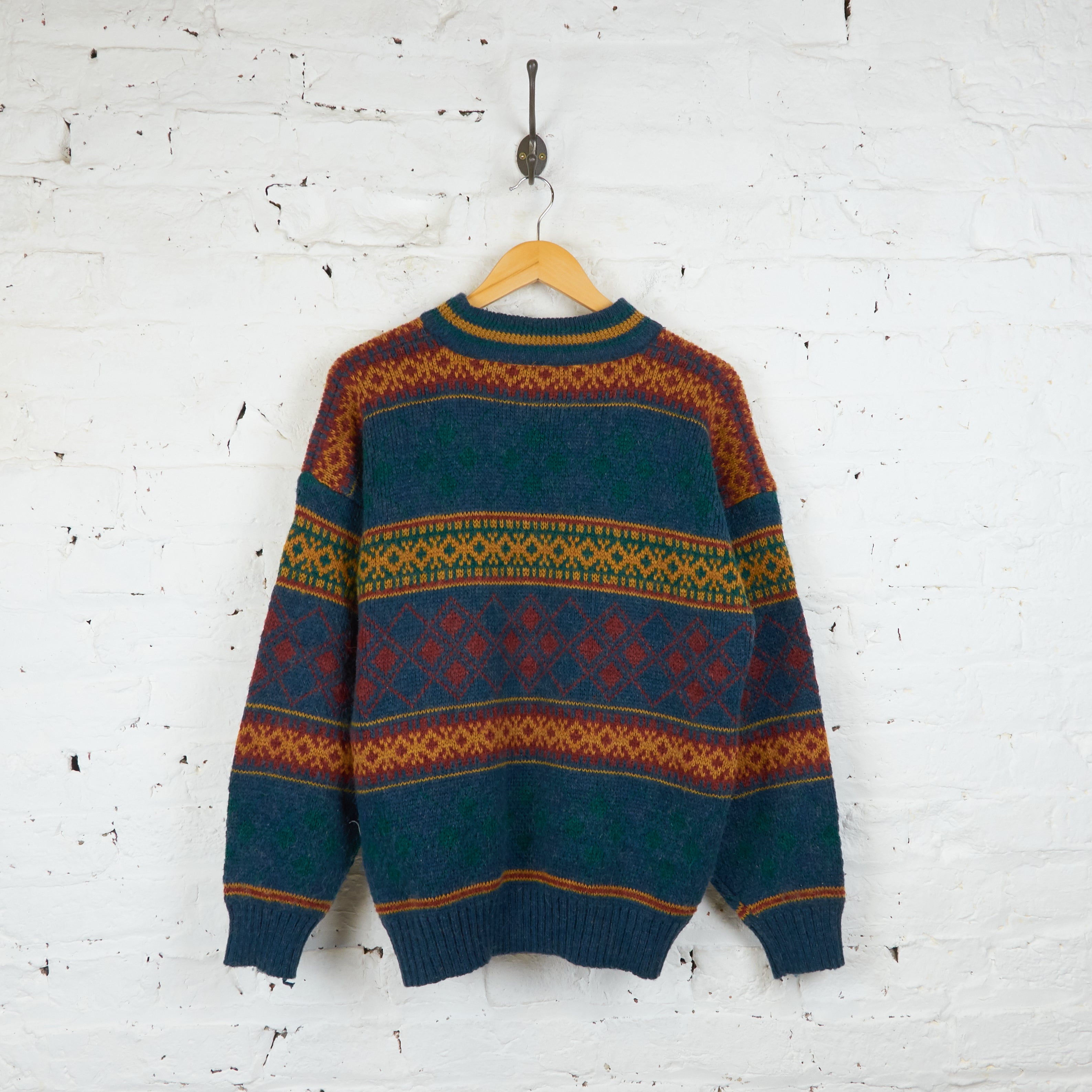 90s Striped Pattern Knit Jumper - Blue - L - L / Blue is sold. Got to be fast 🔥