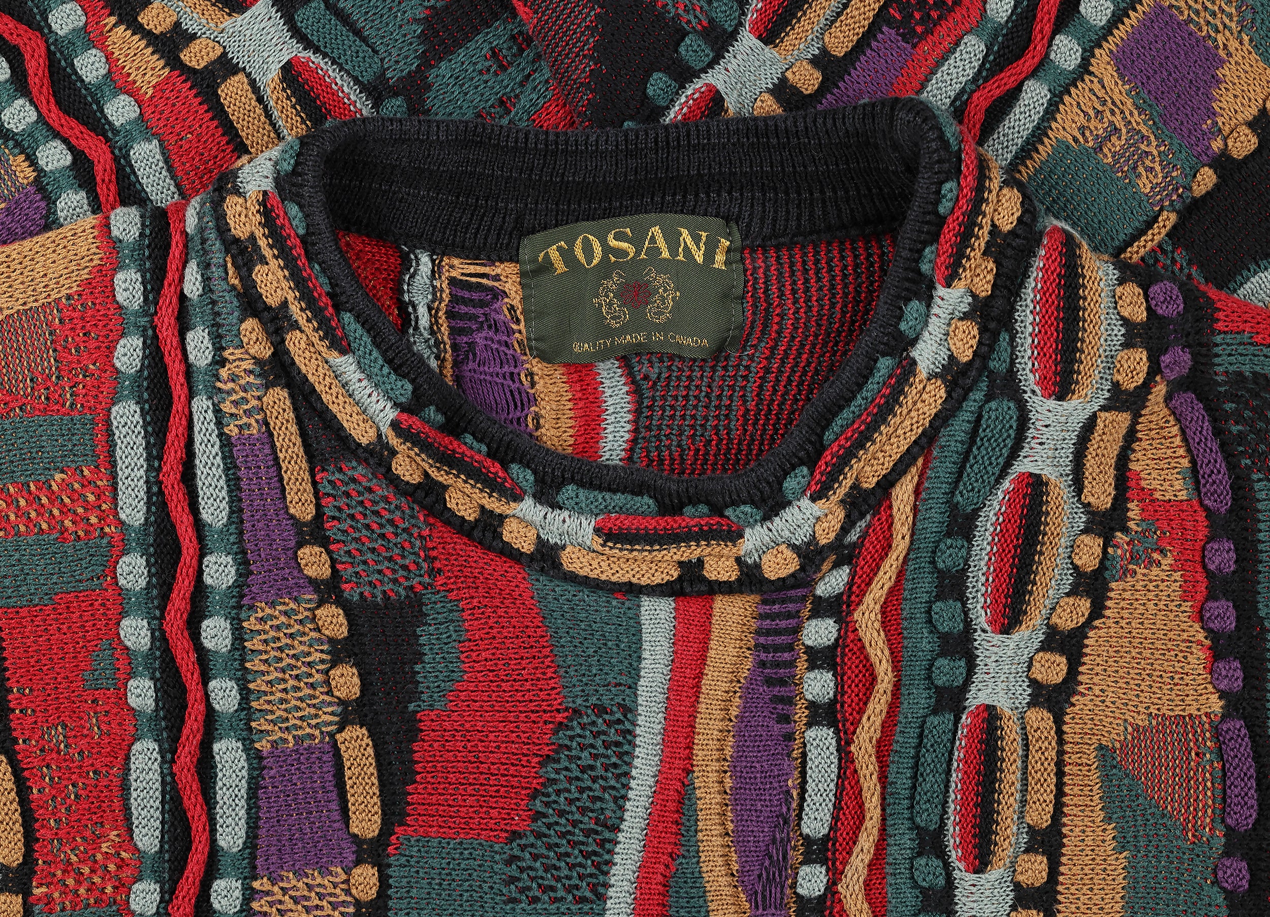 Good condition, small wear. 90s texture knit jumper in crew neck coogi style in green, red and beige colours.