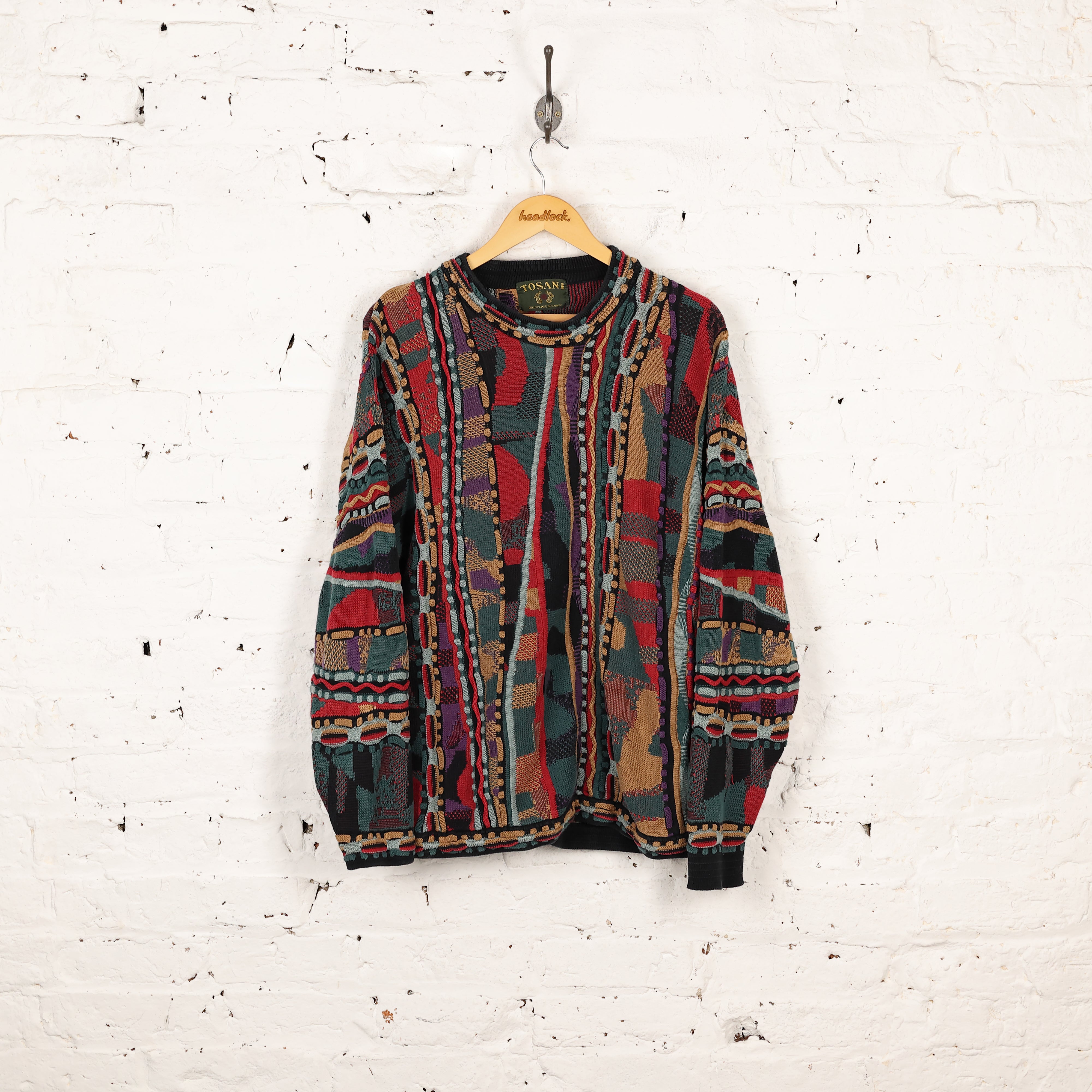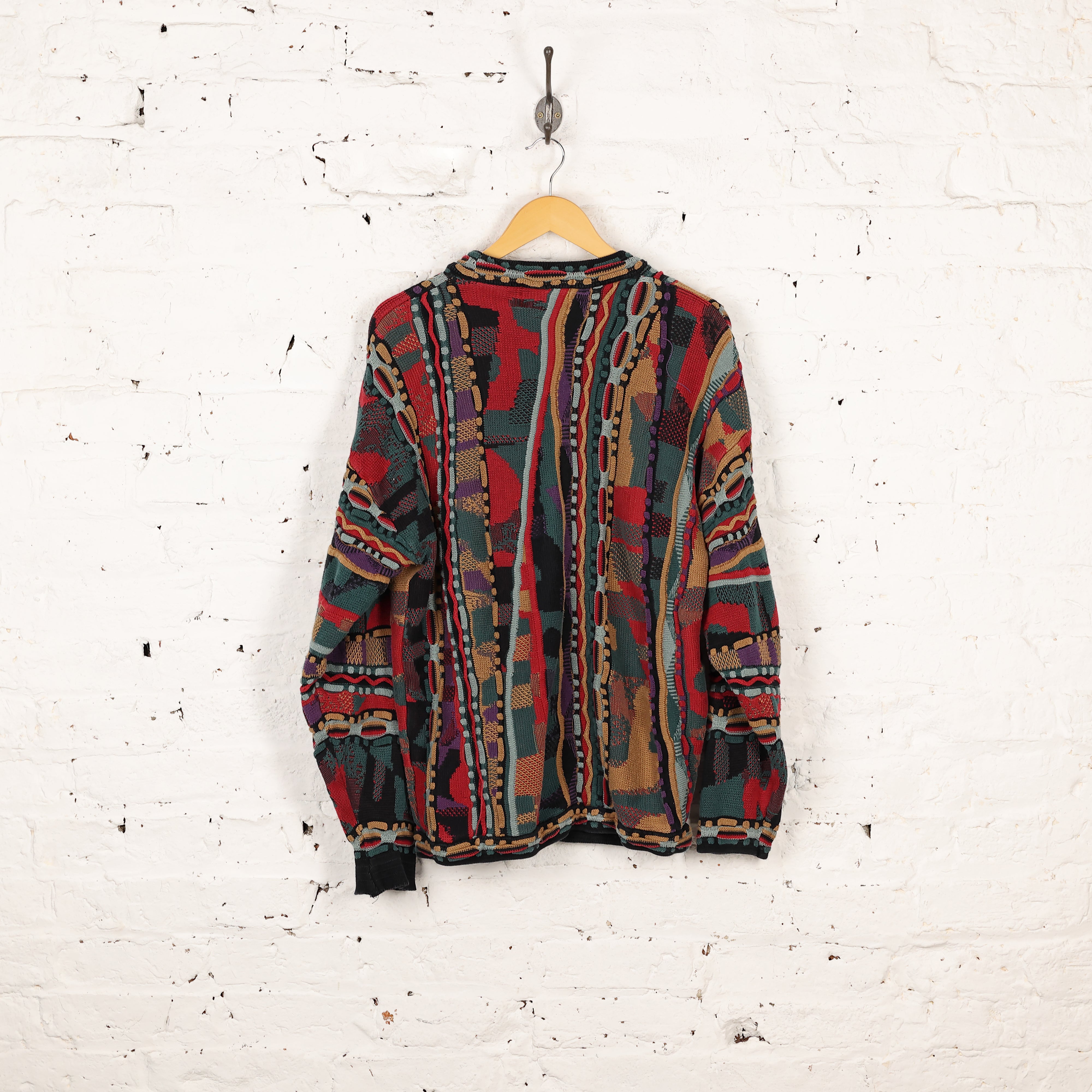 90s Texture Knit Pattern Knit Jumper - Red/Green - L