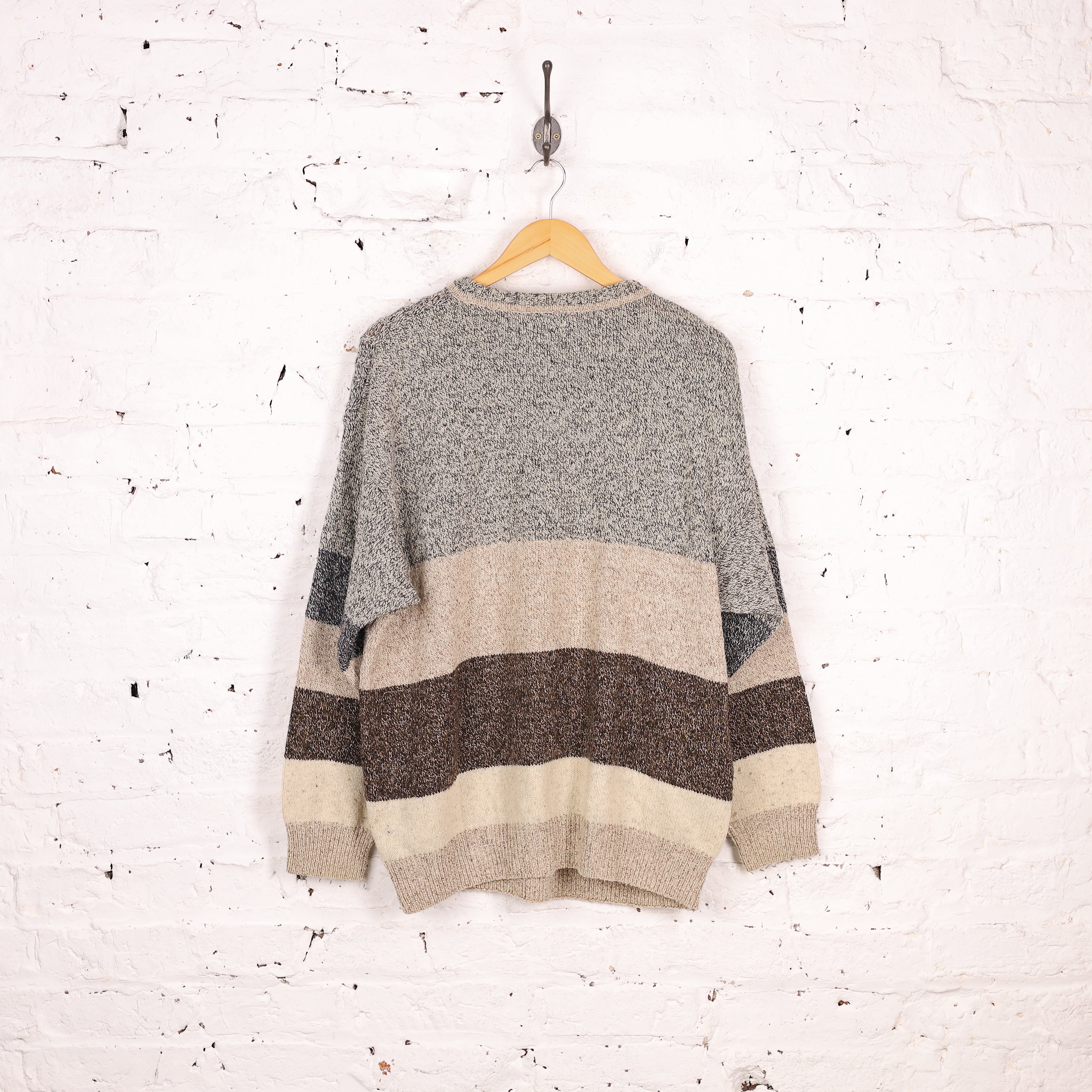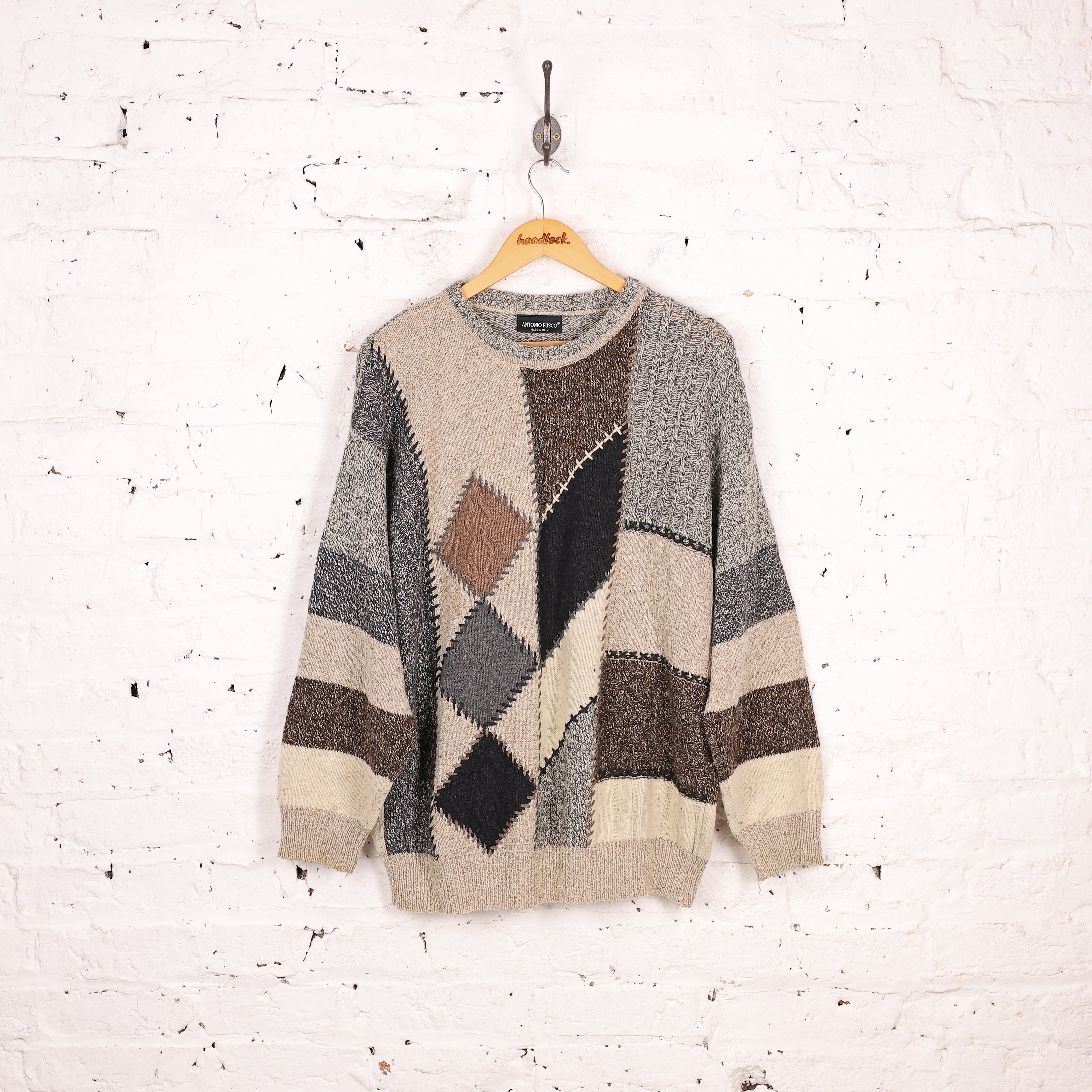 Good condition. Beige and grey pattern knit jumper with texture fabric and in loose fit.