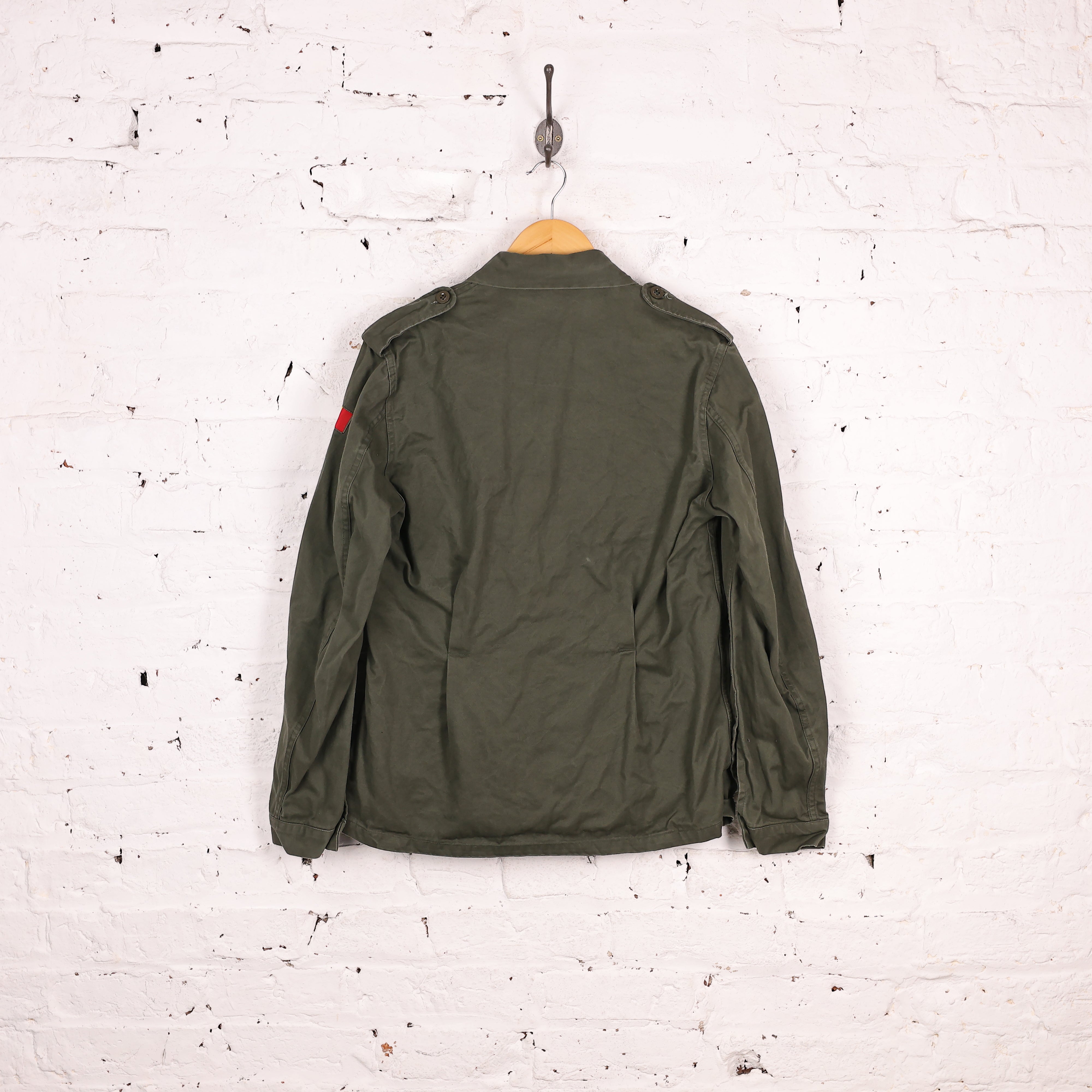 Excellent condition. Belgian army over shirt in green with two chest pockets and hidden buttoning.
