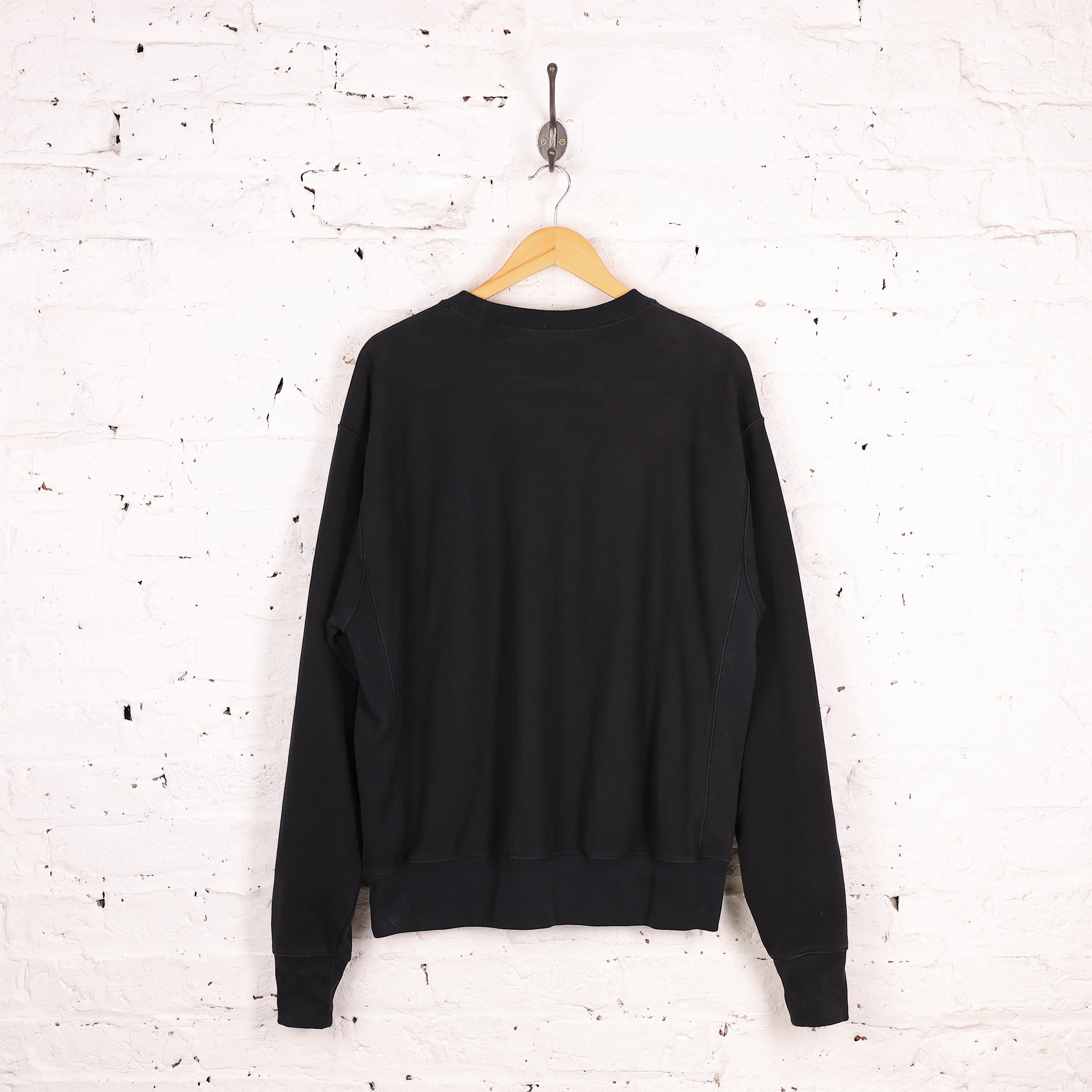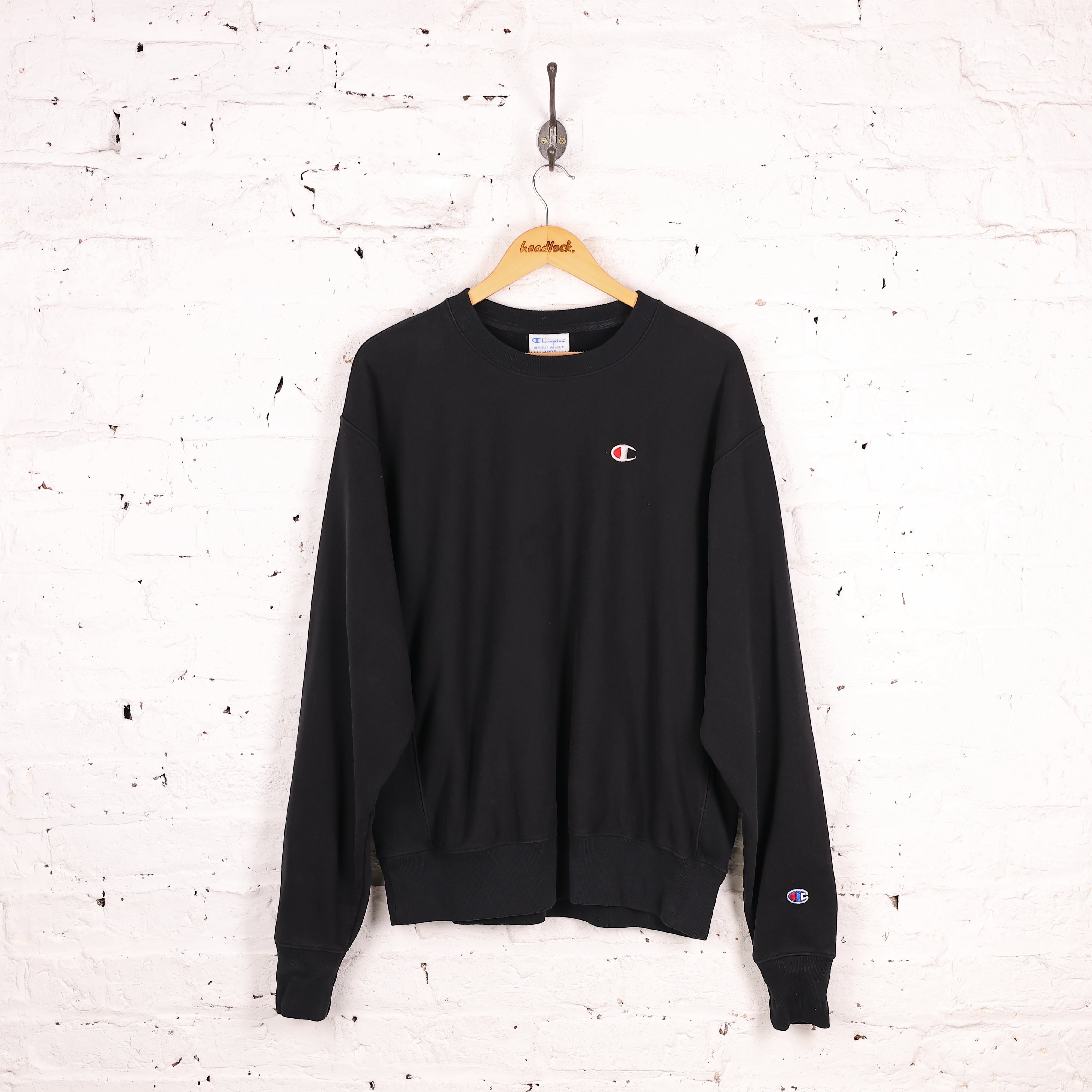 Good condition. Champion Reverse Weave sweatshirt in black with stitched logo on the chest and cuff.