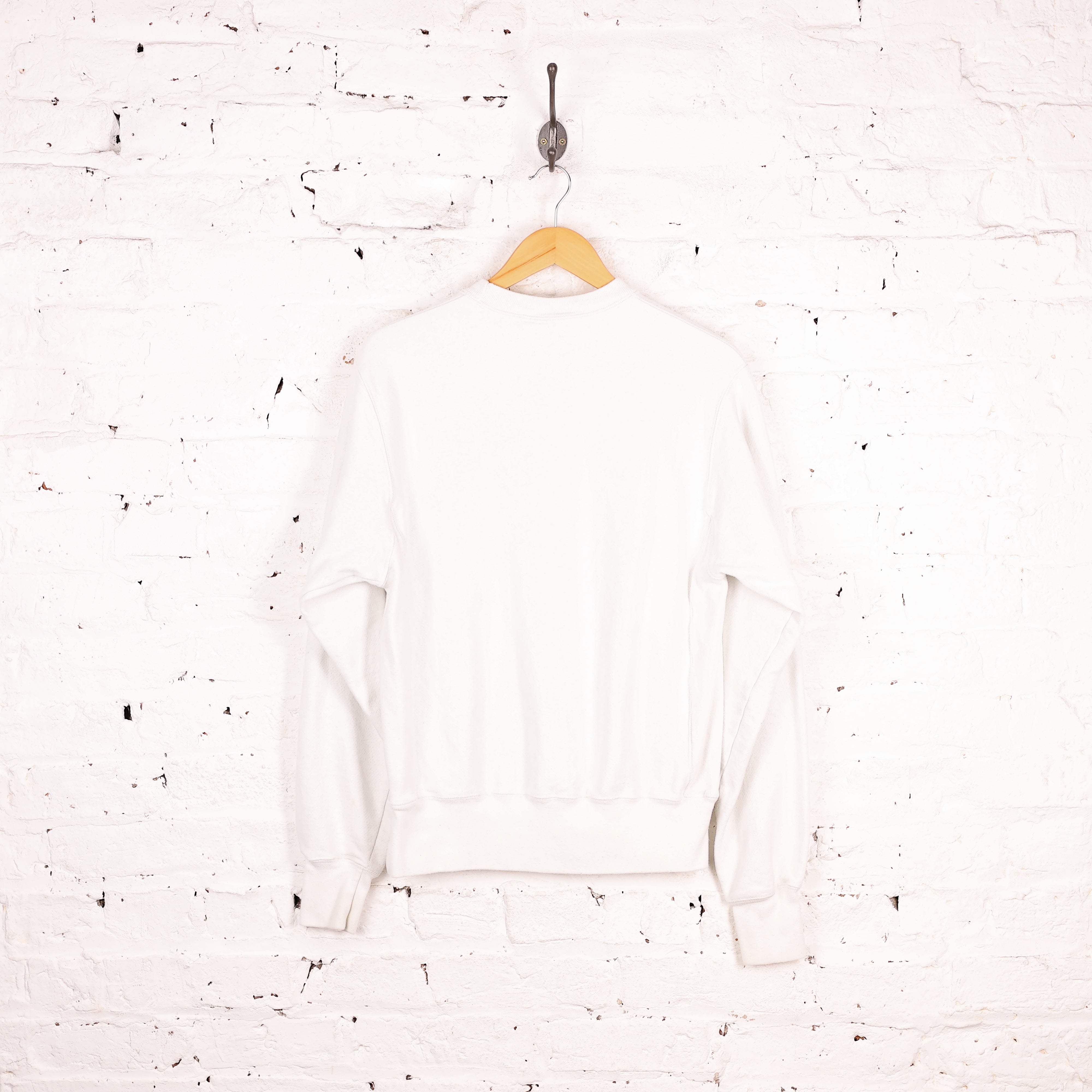 Good condition. Champion reverse weave sweatshirt in white with stitched logo on the chest.