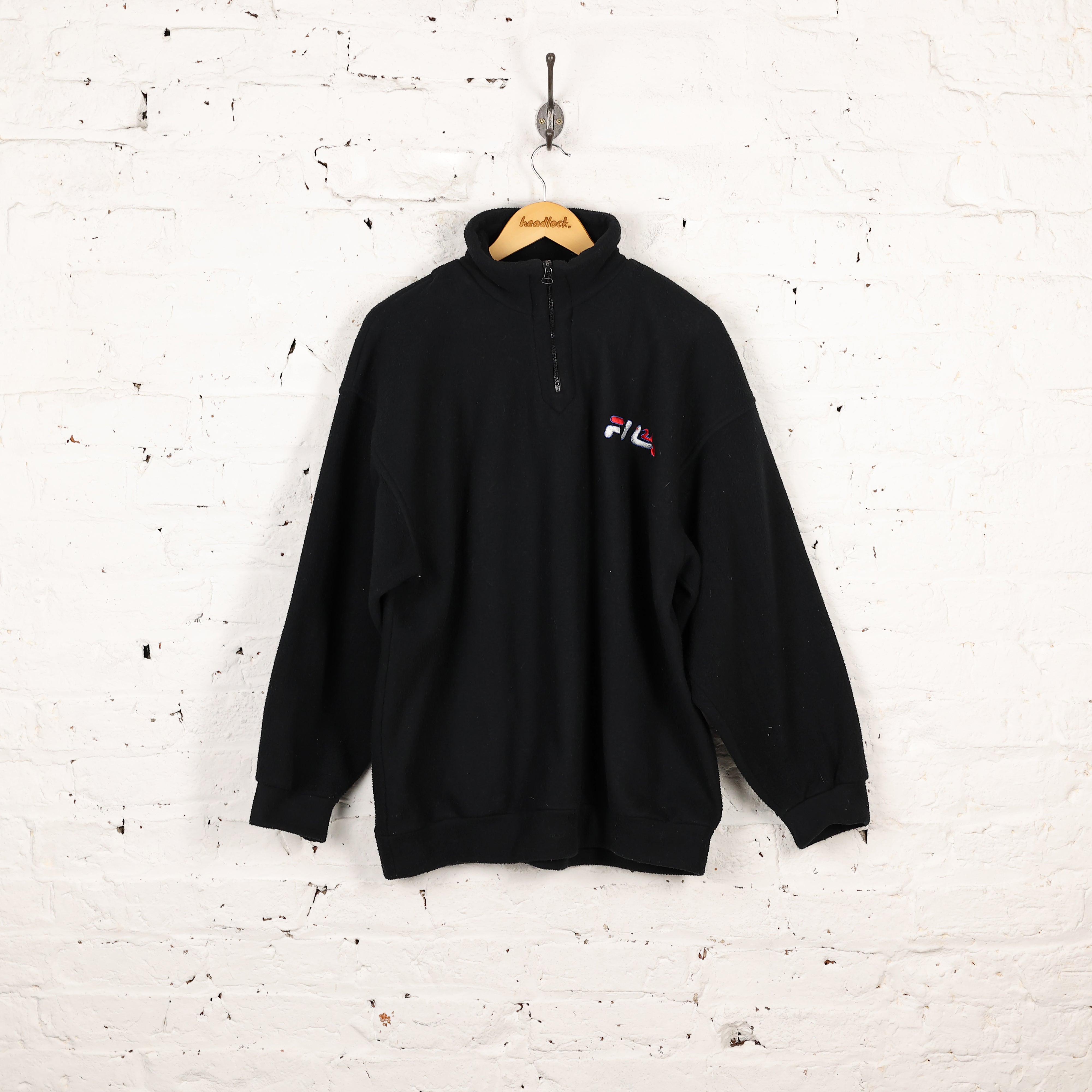 Good condition. Black Fila 1/4 zip fleece with stitched logo on the chest.