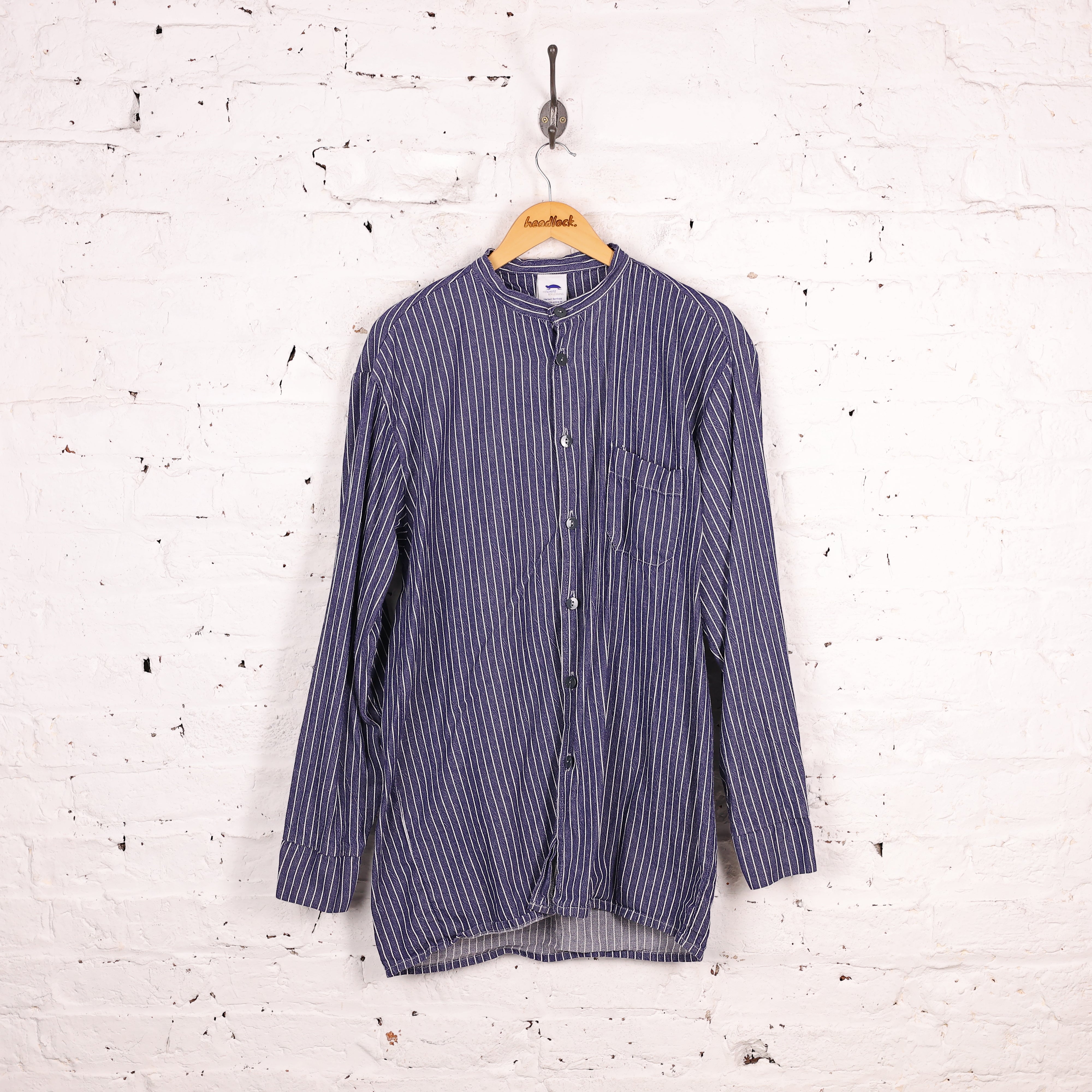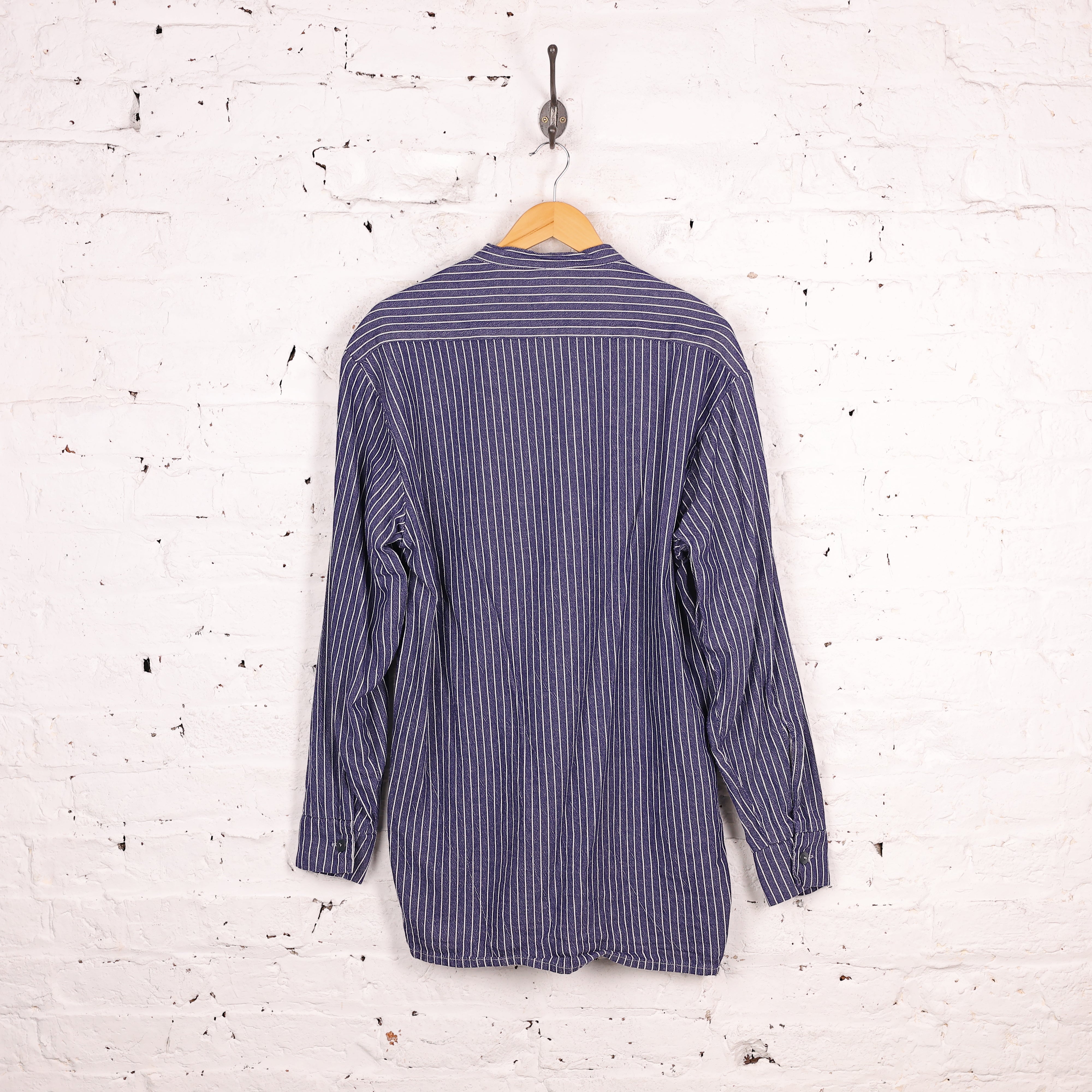 Fisherman Grandad Collar Striped Shirt - Blue - L