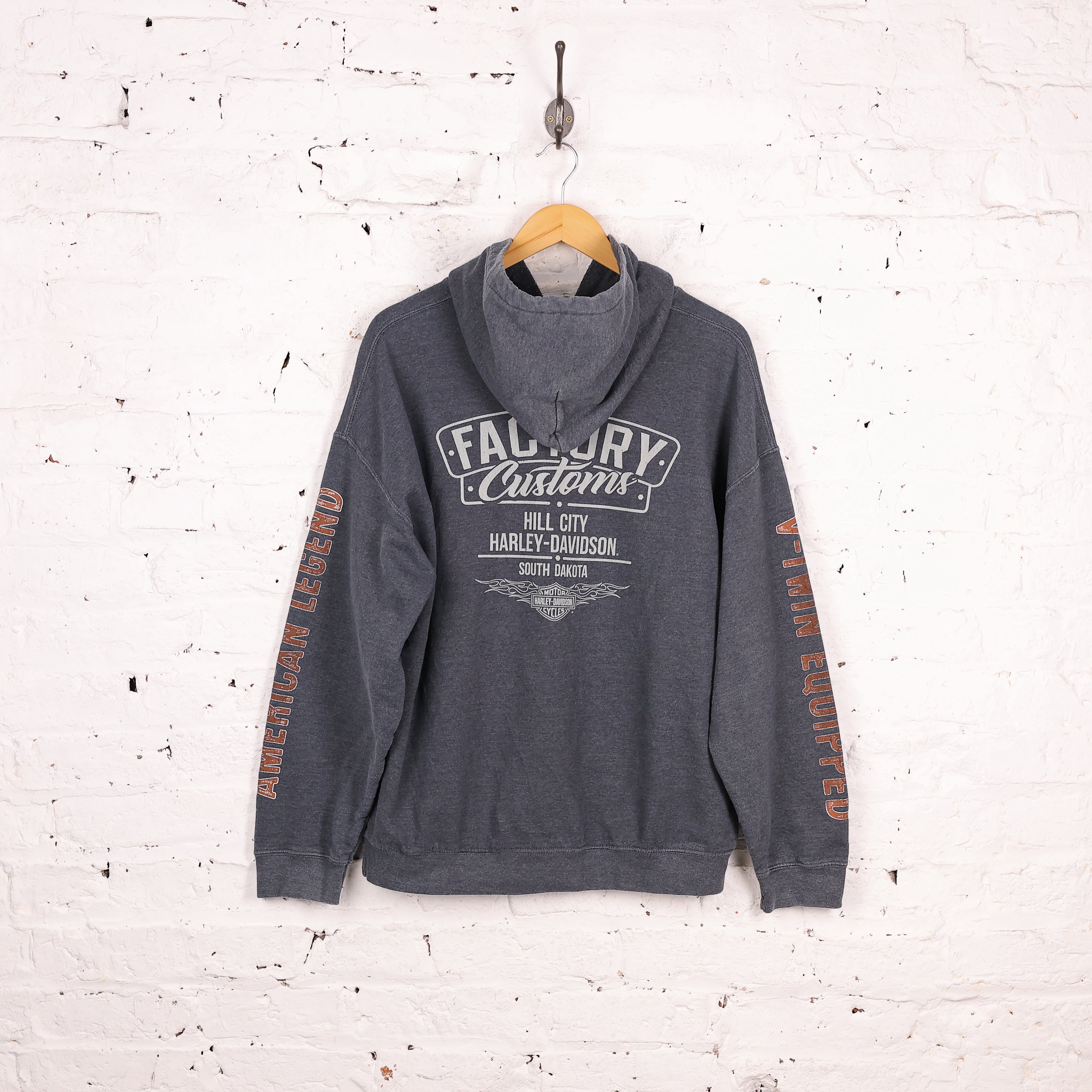 Good condition, no drawstring. Harley Davidson hoodie in grey with South Dakota graphic on the back and front pocket.