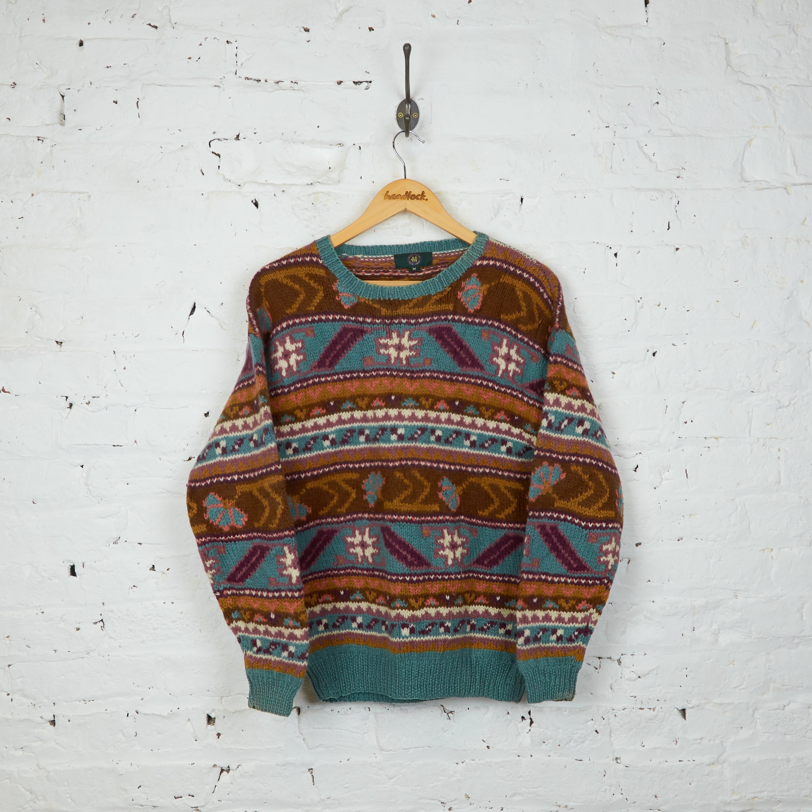 Headlock Vintage 90s Pattern Knit Jumper - Brown/Blue - M