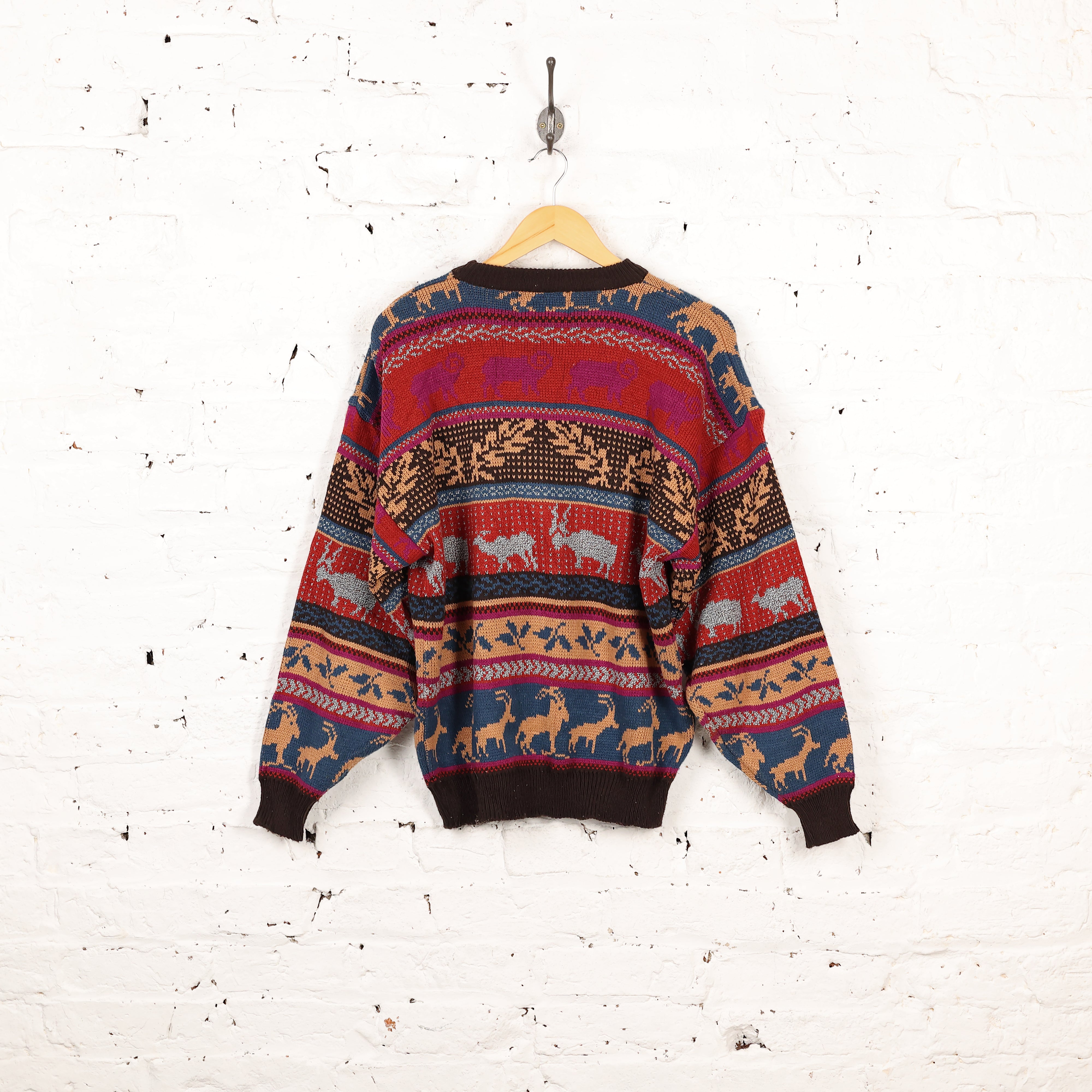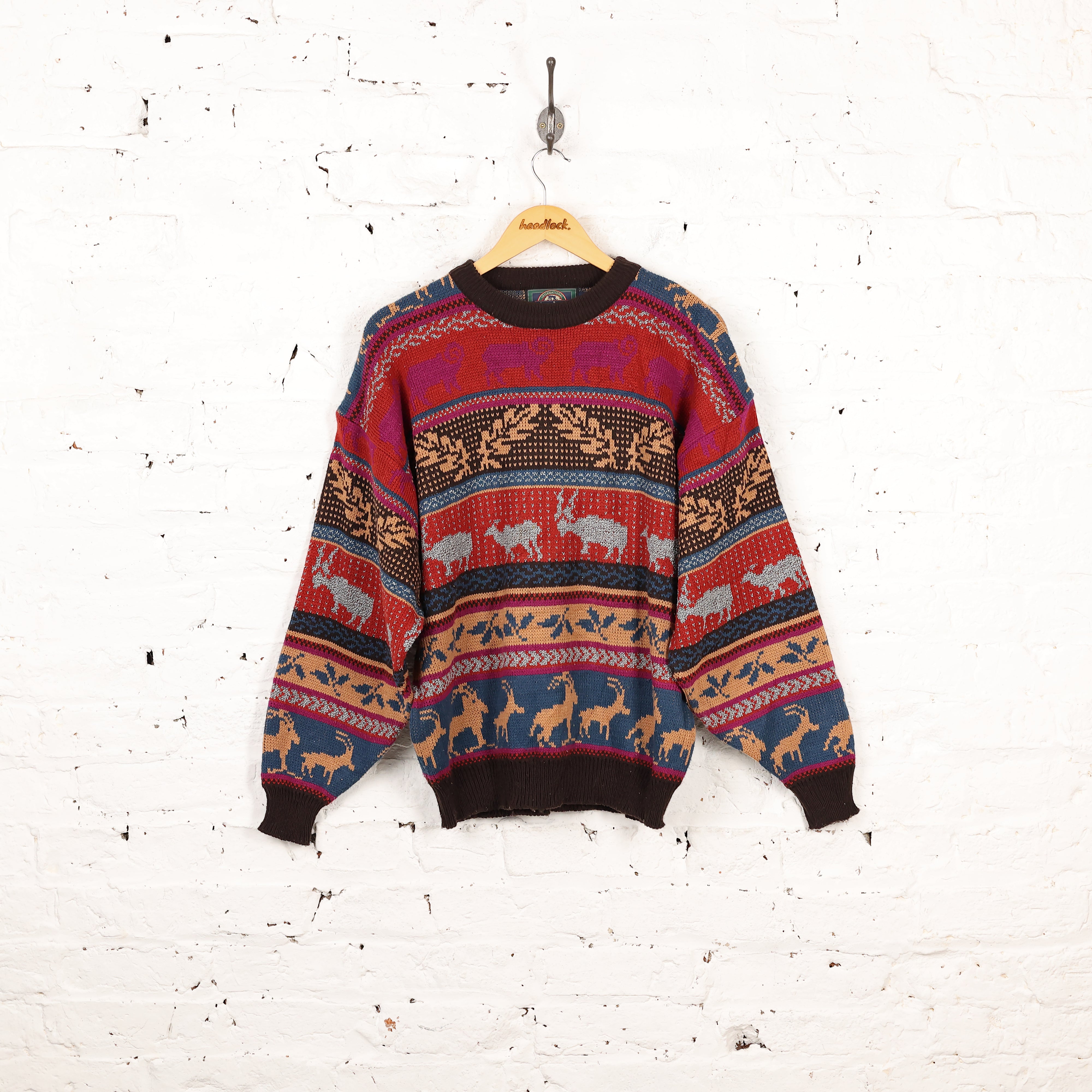 Headlock Vintage Animal Pattern Knit Jumper - Red - M - M / Red is sold. Got to be fast 🔥