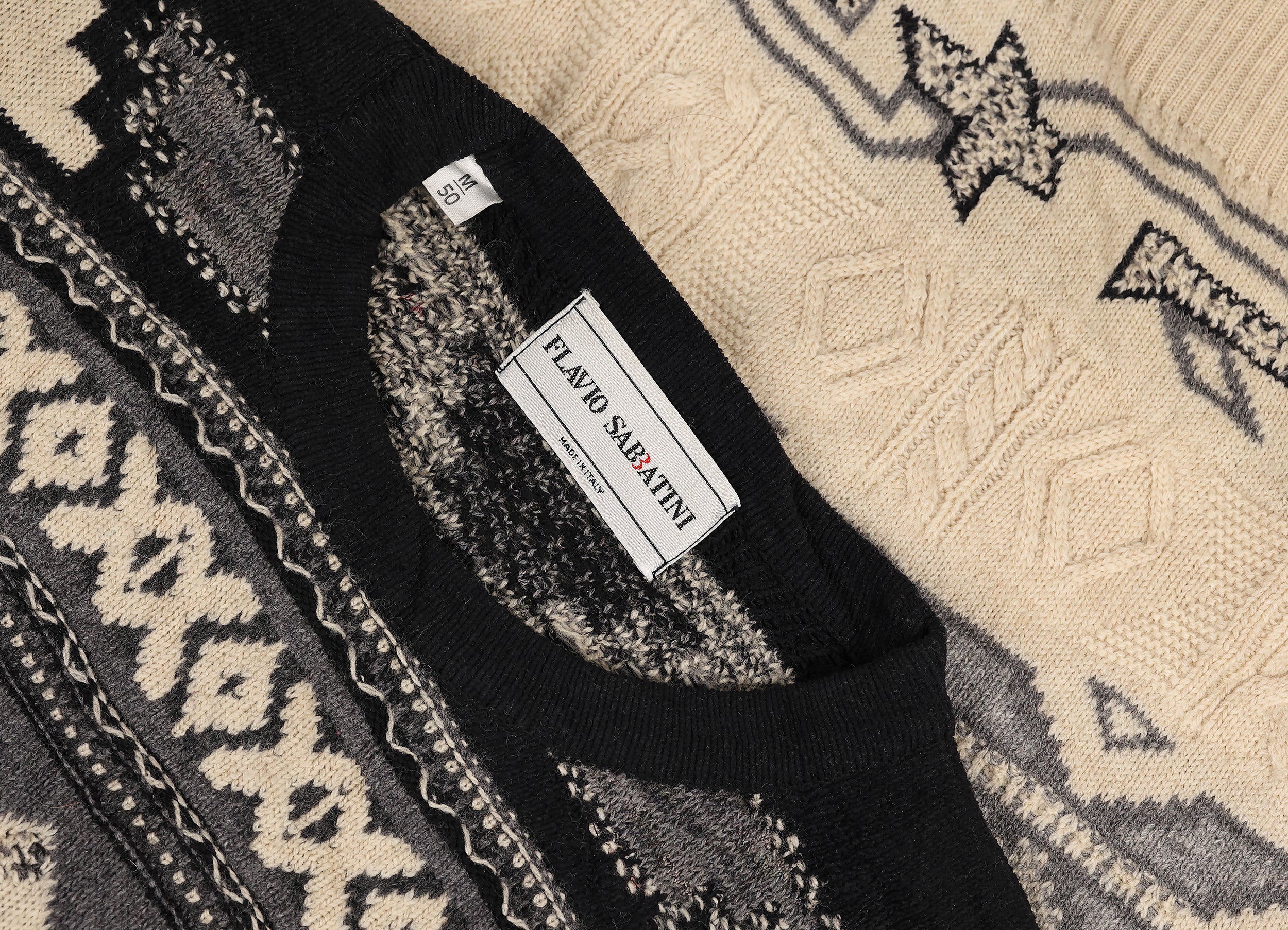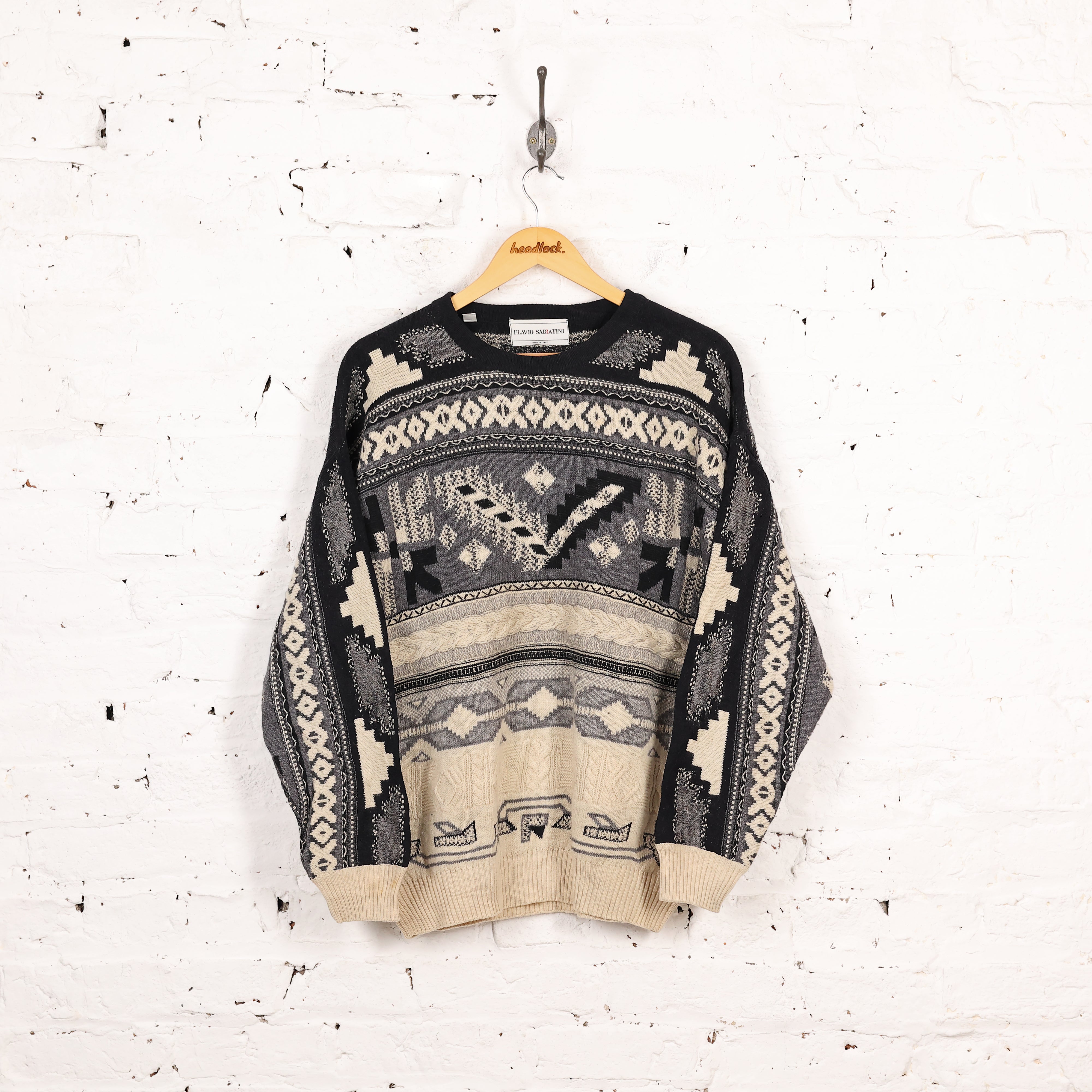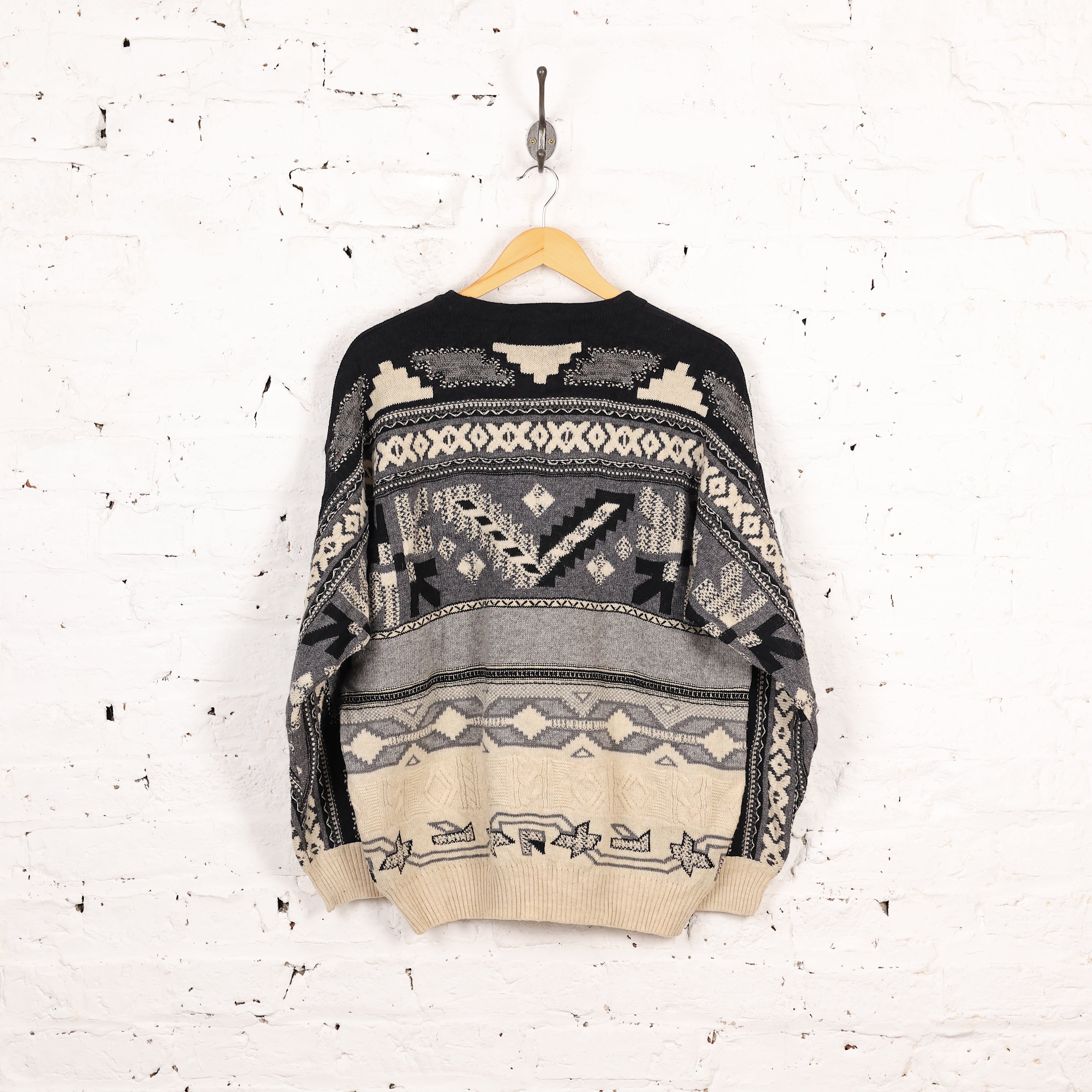 Headlock Vintage Texture Knit Pattern Jumper - Grey/White - M
