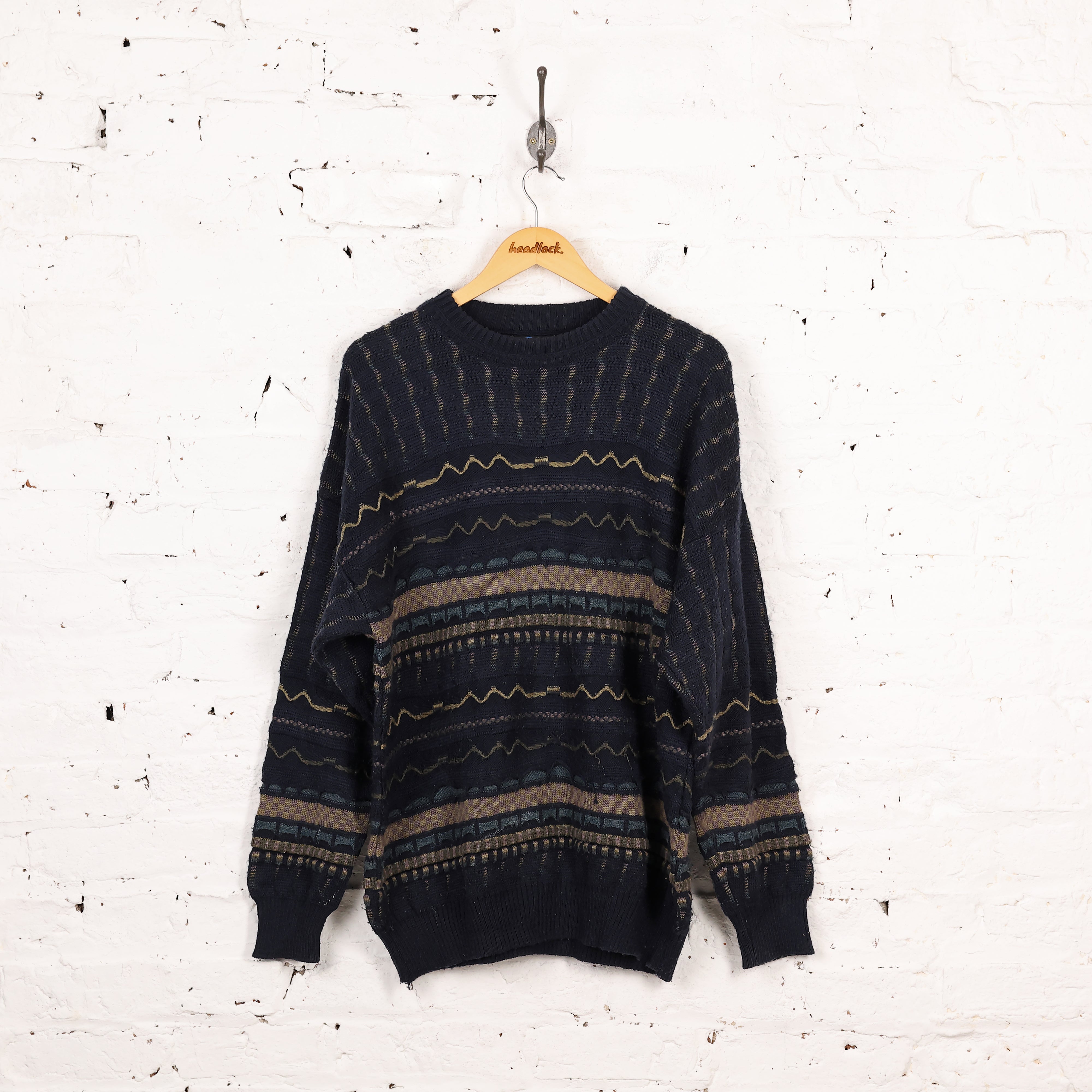 Headlock Vintage Texture Knit Pattern Jumper - Navy - XXL