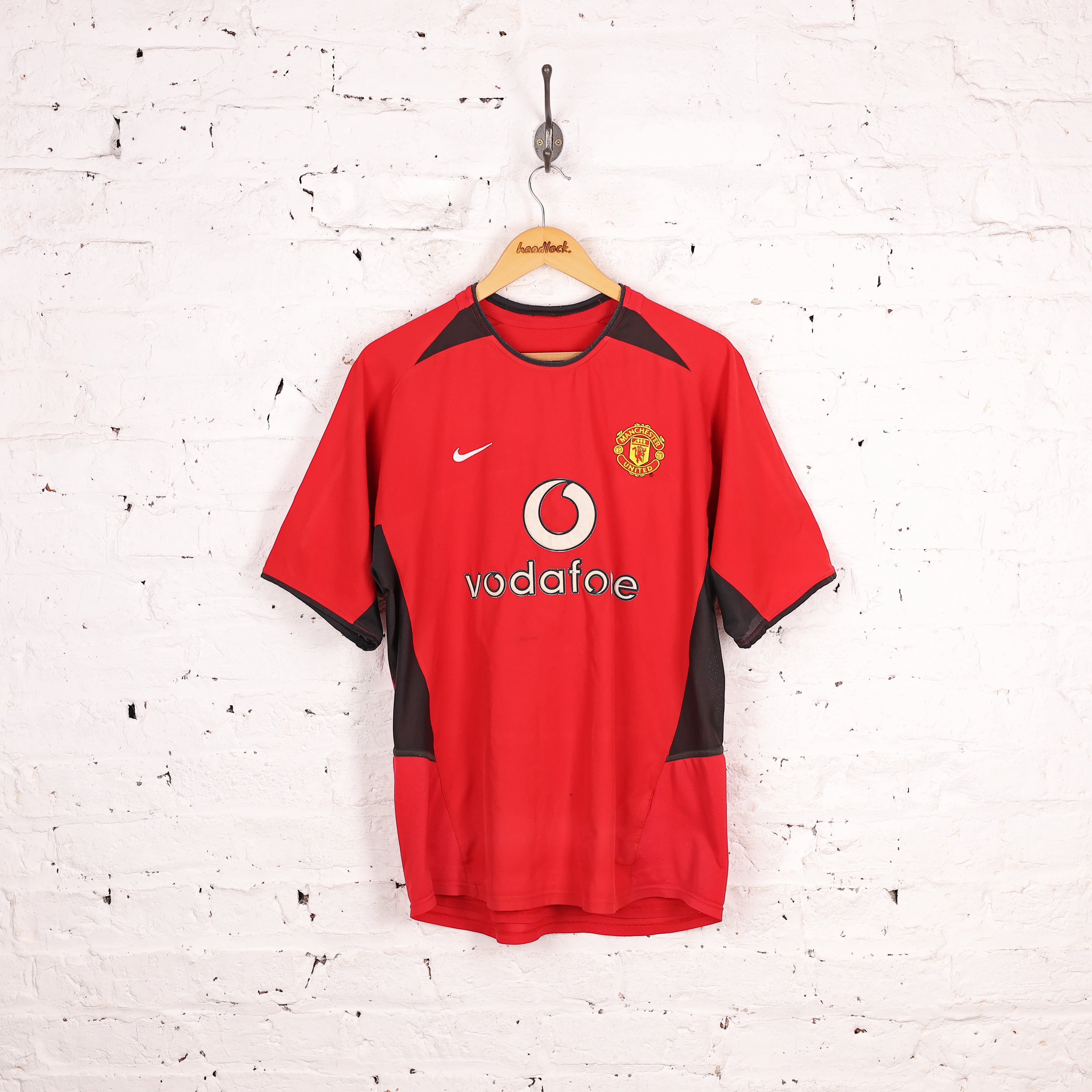 Good condition, some slight spot mark to the front (bottom). Manchester United home shirt from 2002 season with classic Vodafone sponsor.